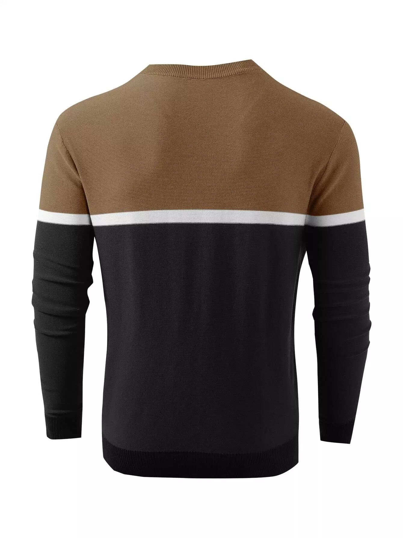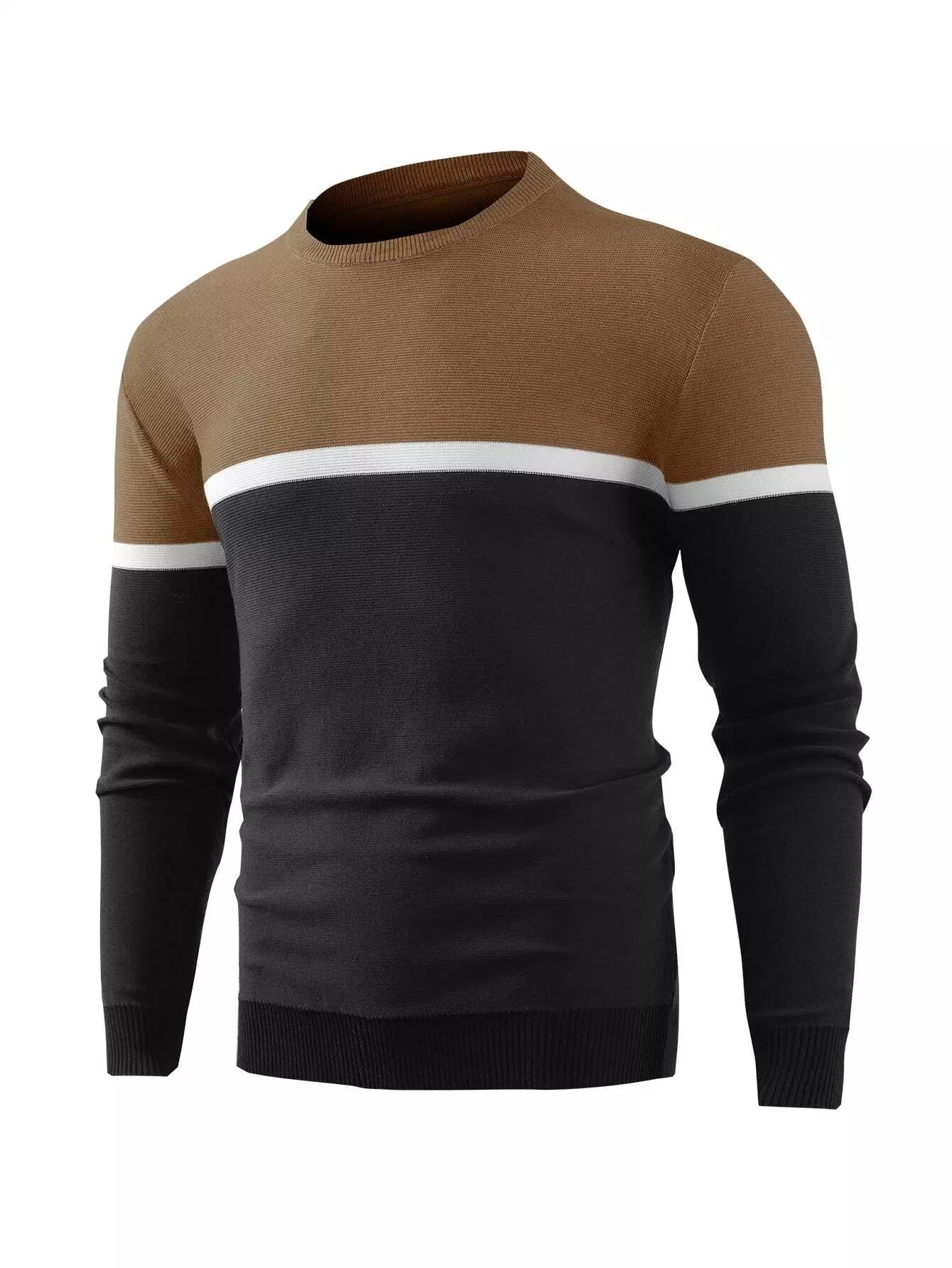 سترة رجالية ملونة برقبة دائرية بقطعة قماش ملونة للرجال