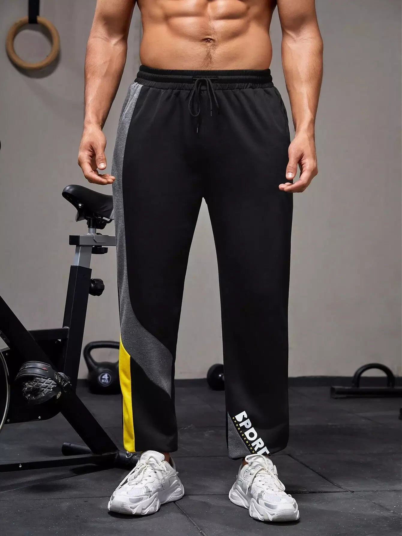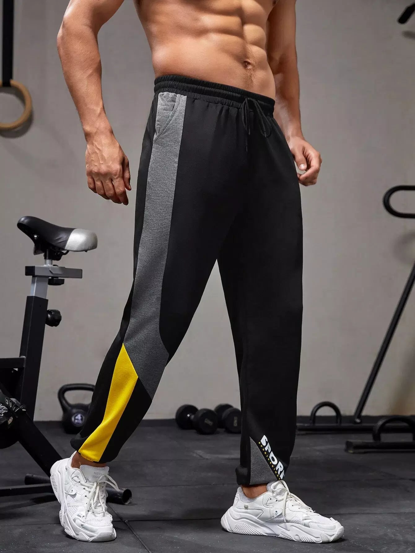 بنطلون رياضي بخياطة جانبية ملونة للرجال برباط خصر رياضي