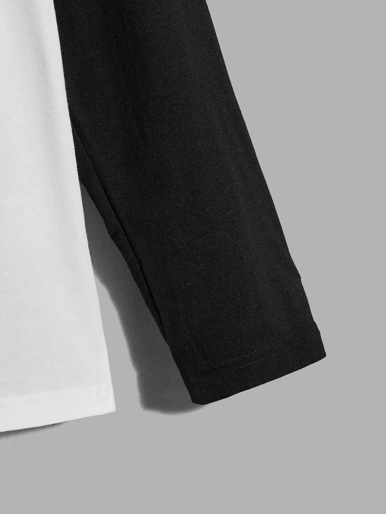 تي شيرت بأكمام متباينة مطبوع عليه رسومات للرجال