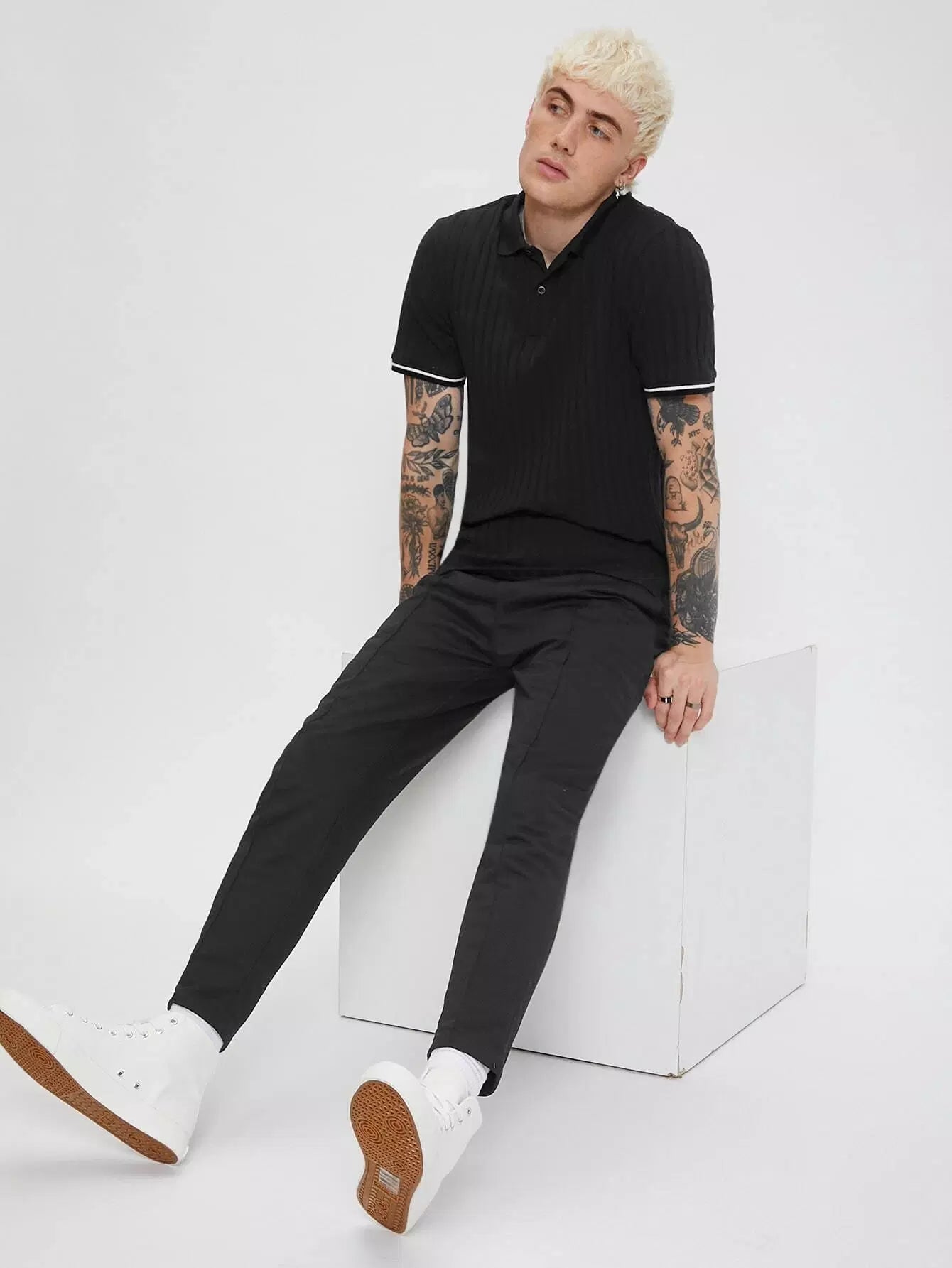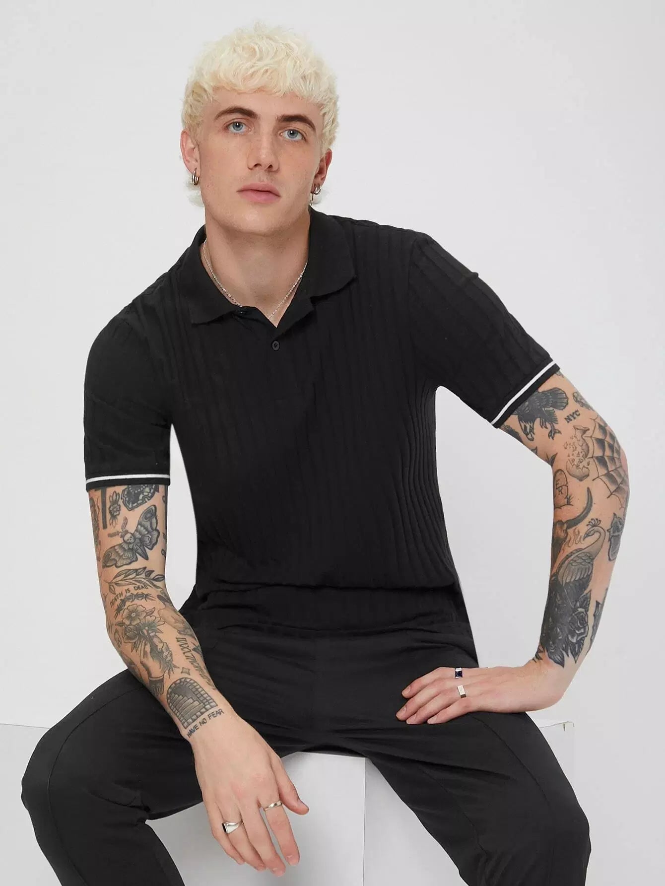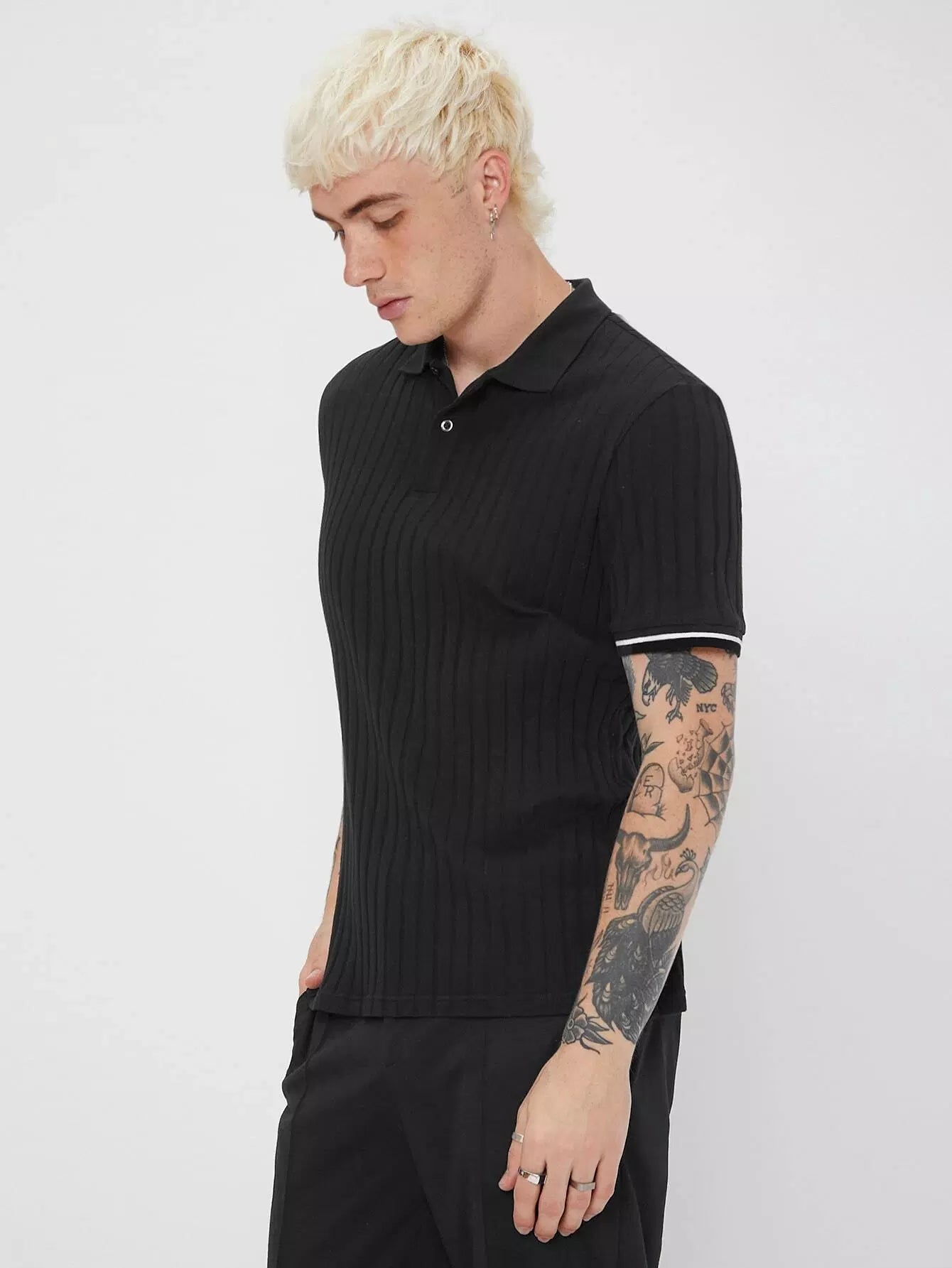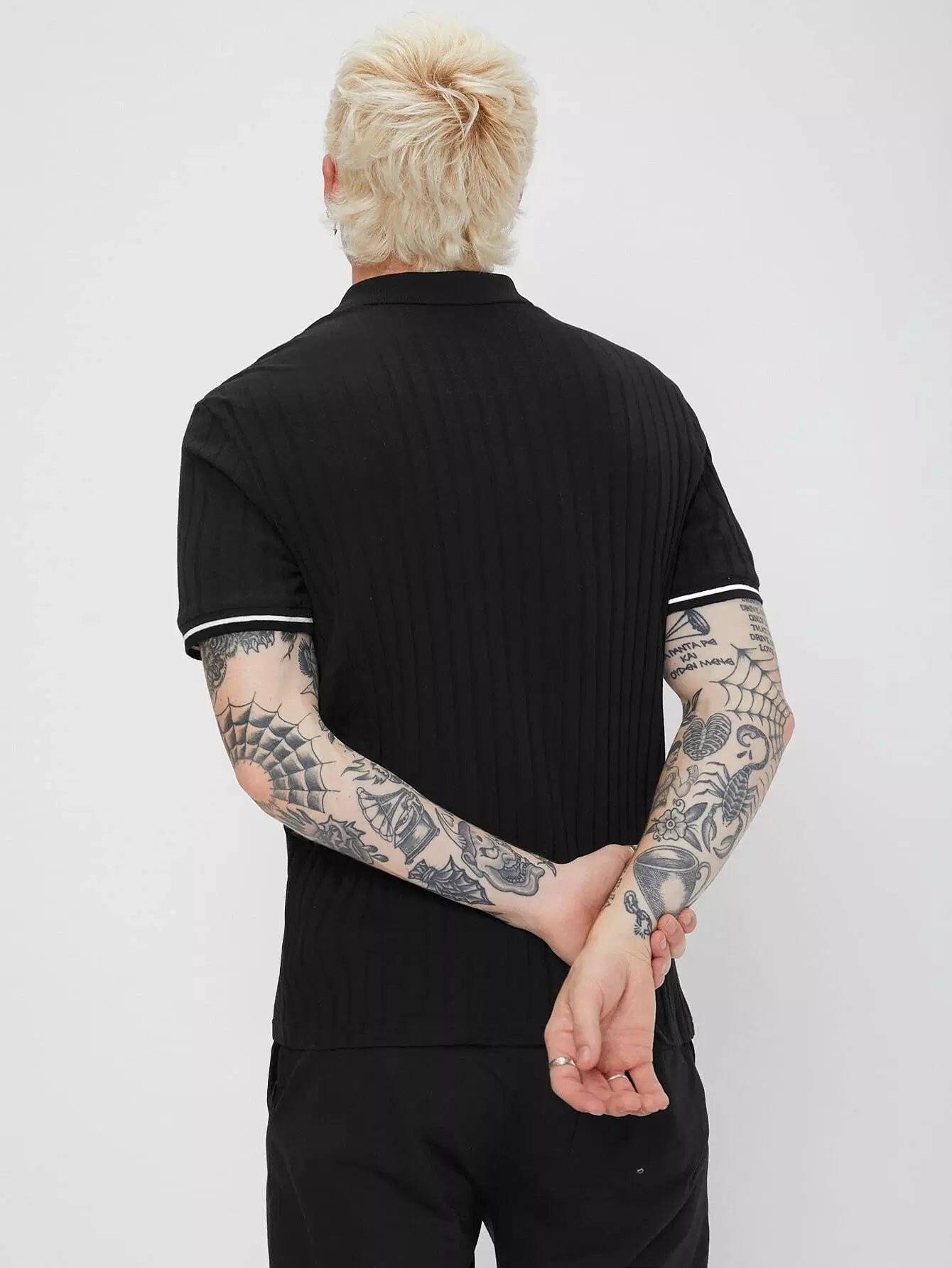 قميص بولو رجالي من القطن بنصف زر ومضلع