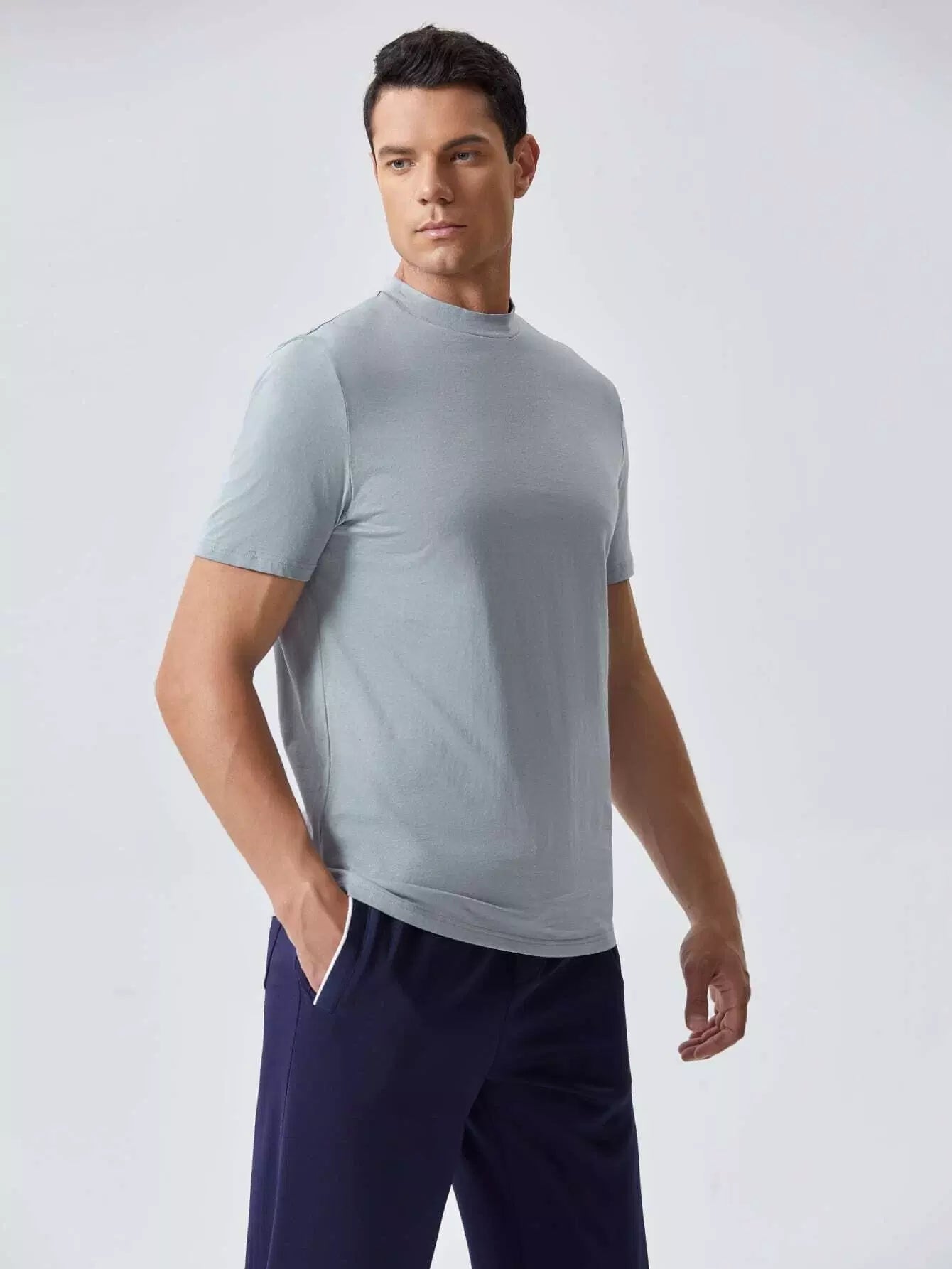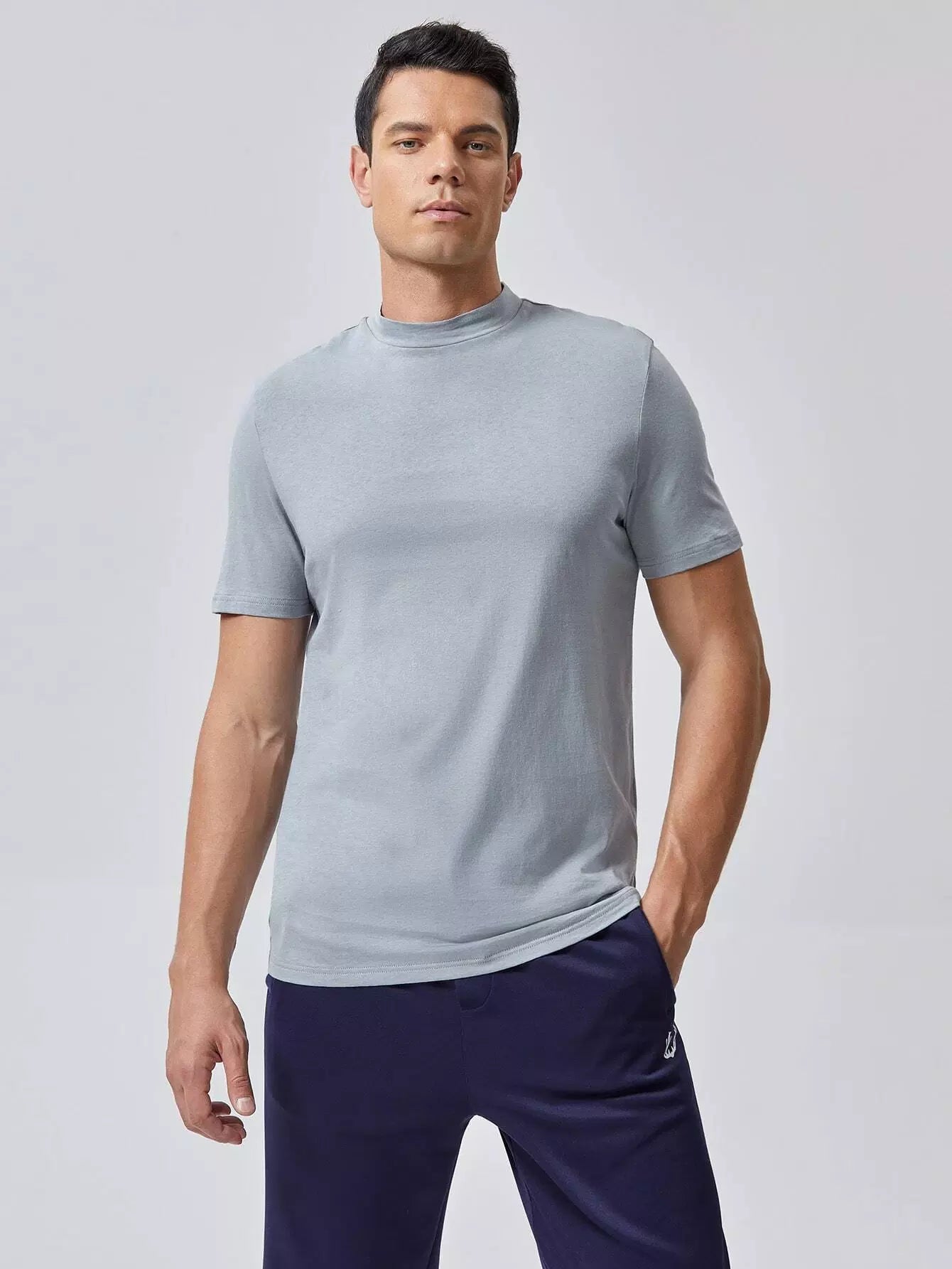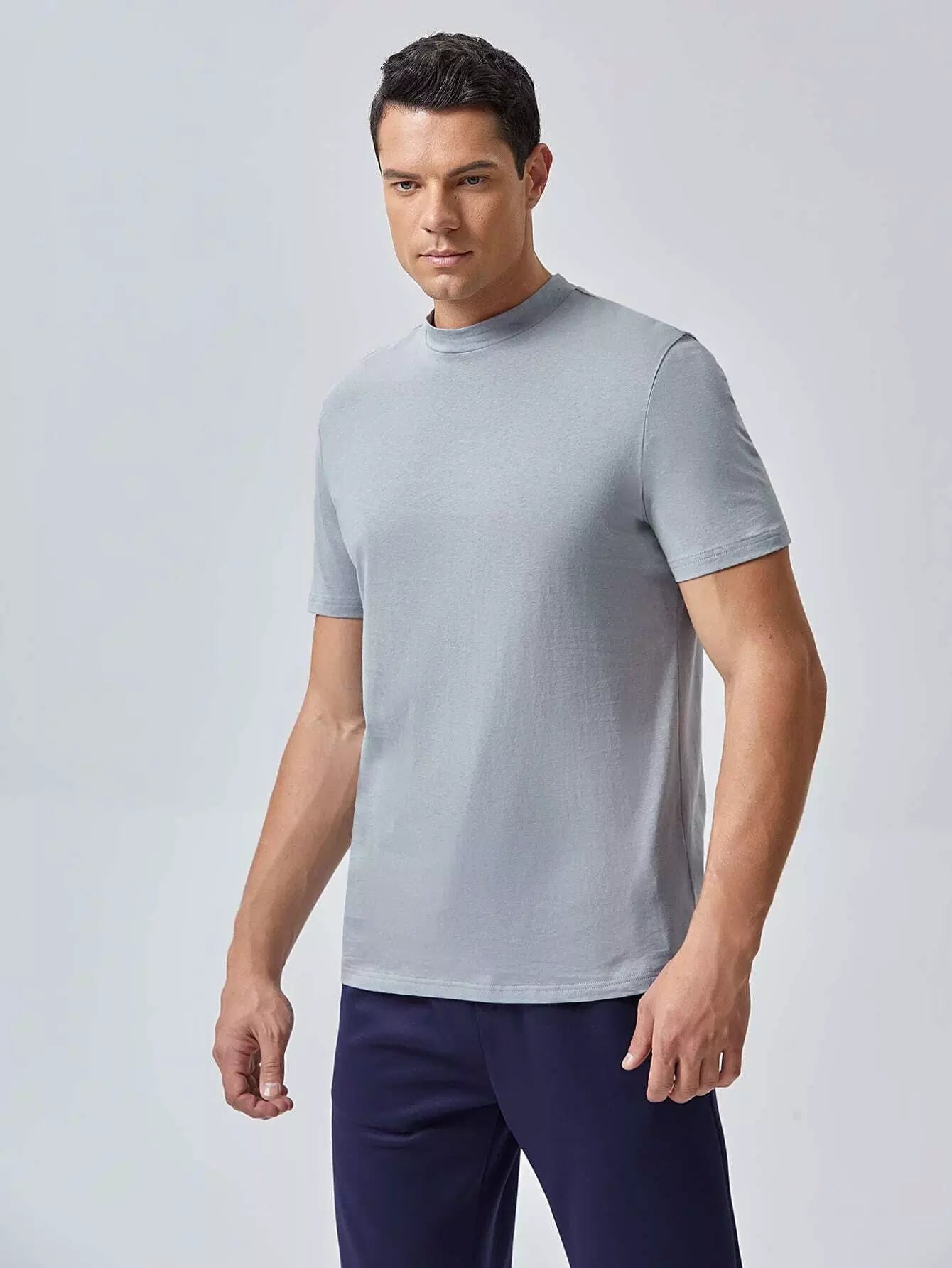تي شيرت برقبة قطنية سادة برقبة سادة للرجال