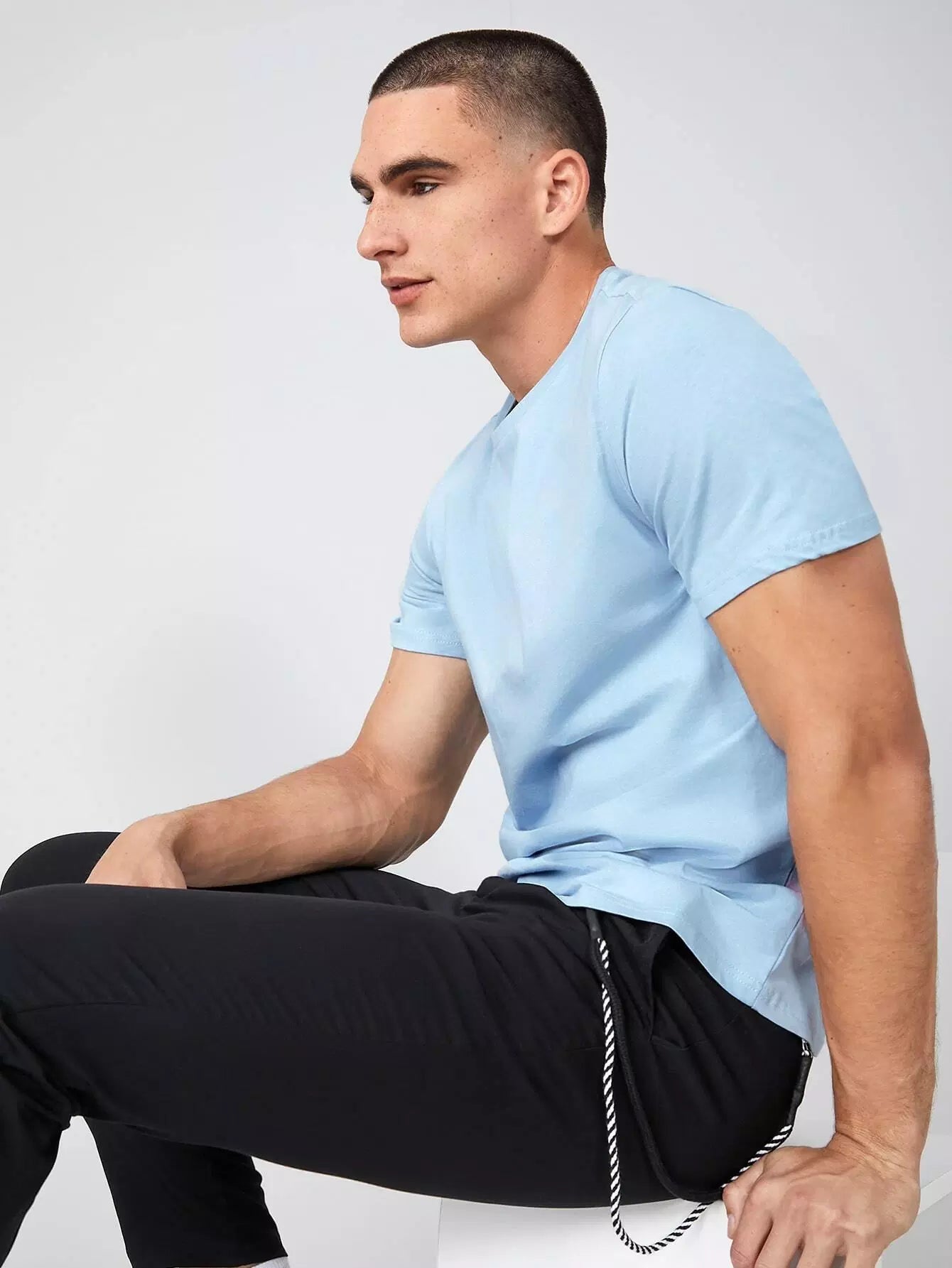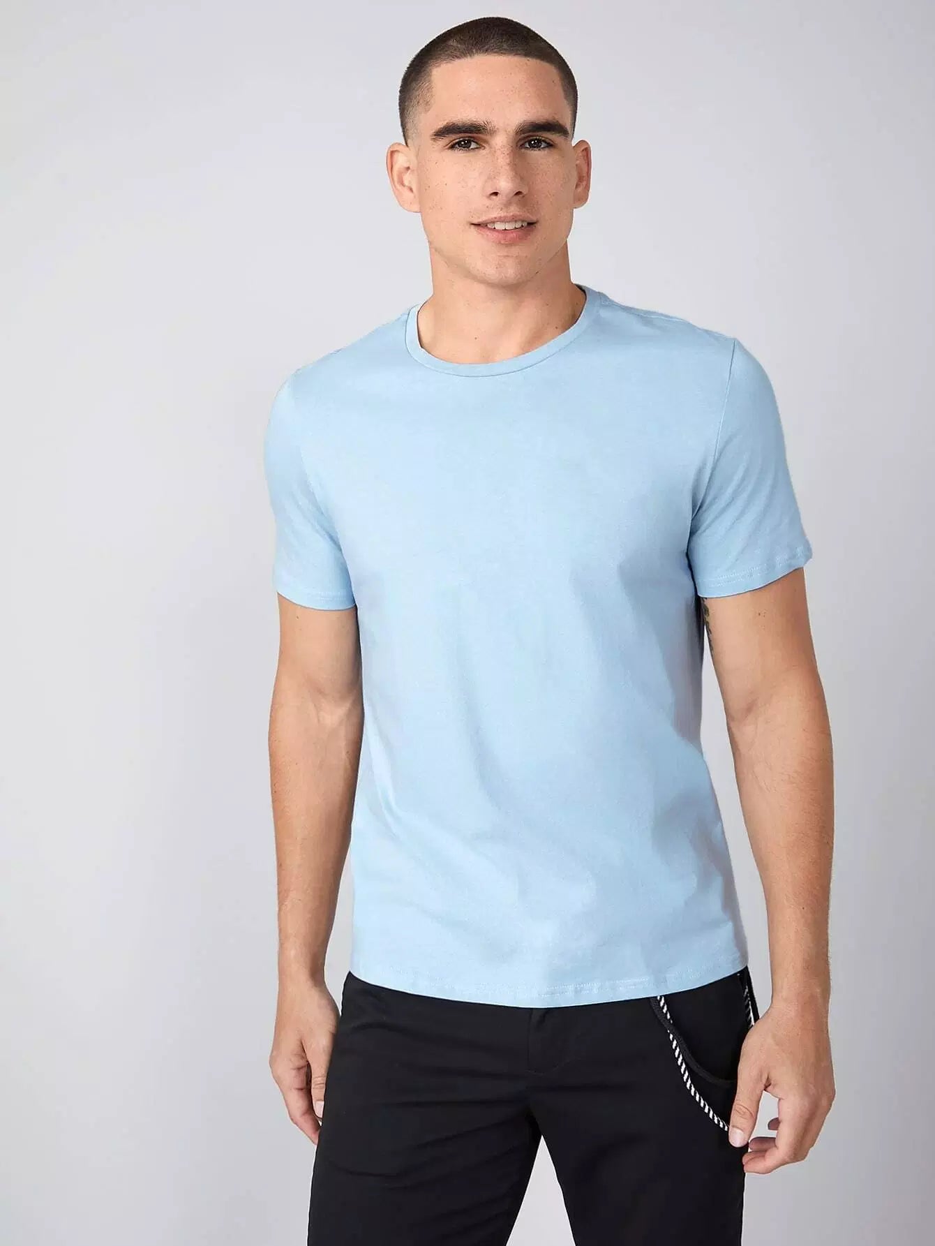 الرجال - تي شيرت قطني سادة برقبة دائرية للرجال