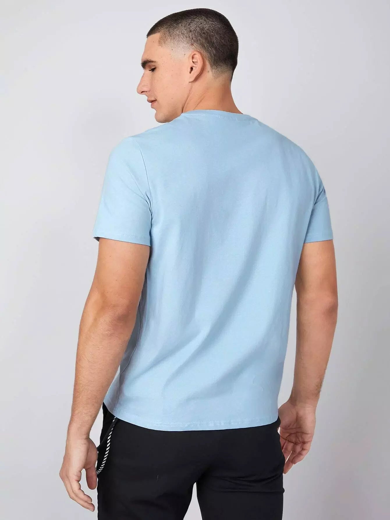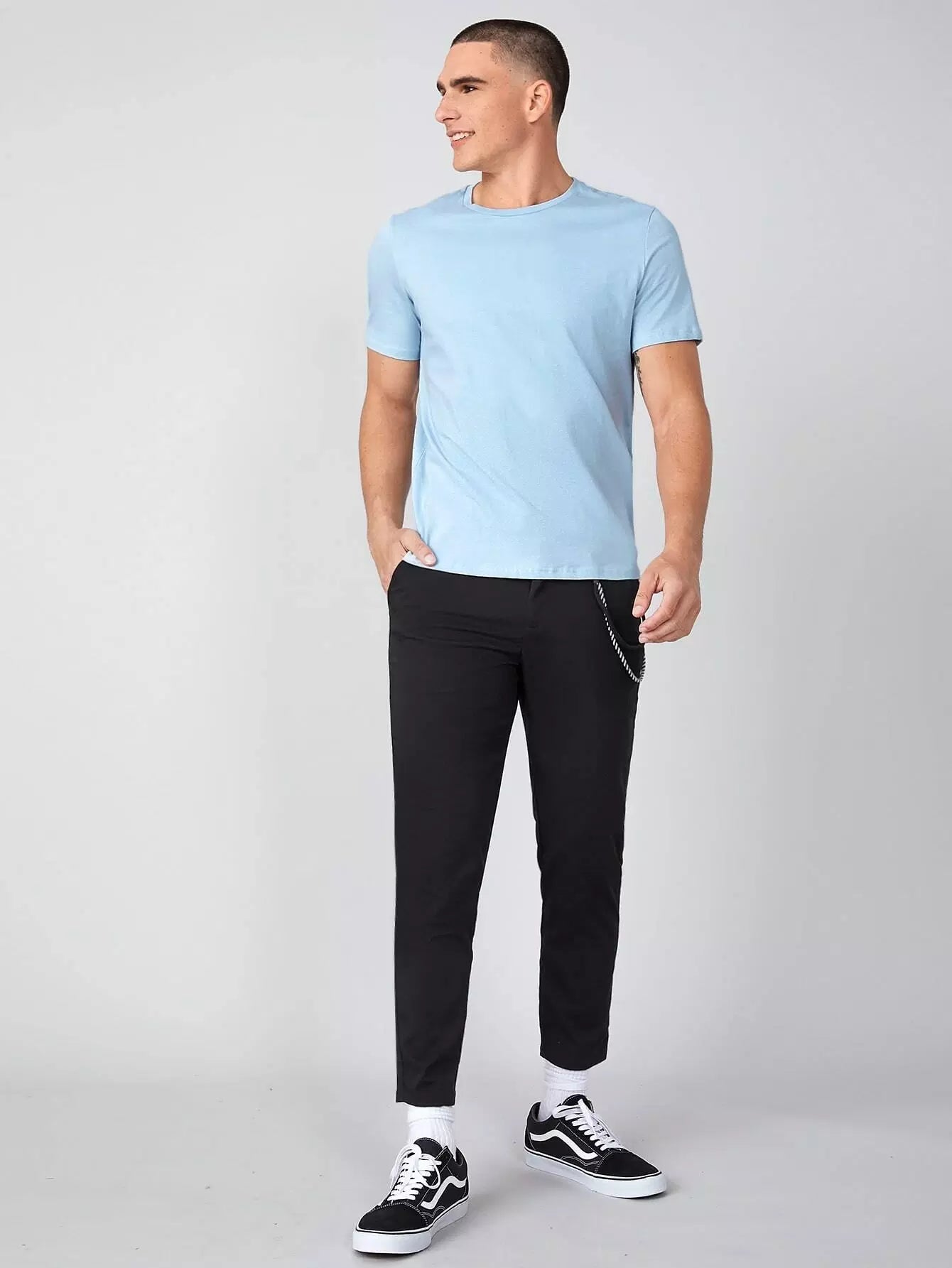 قميص رجالي قطن سادة برقبة دائرية مستديرة