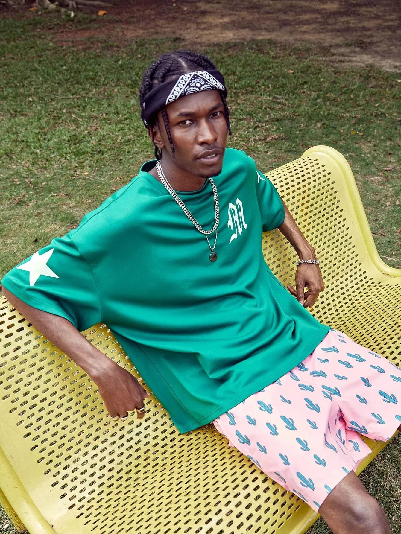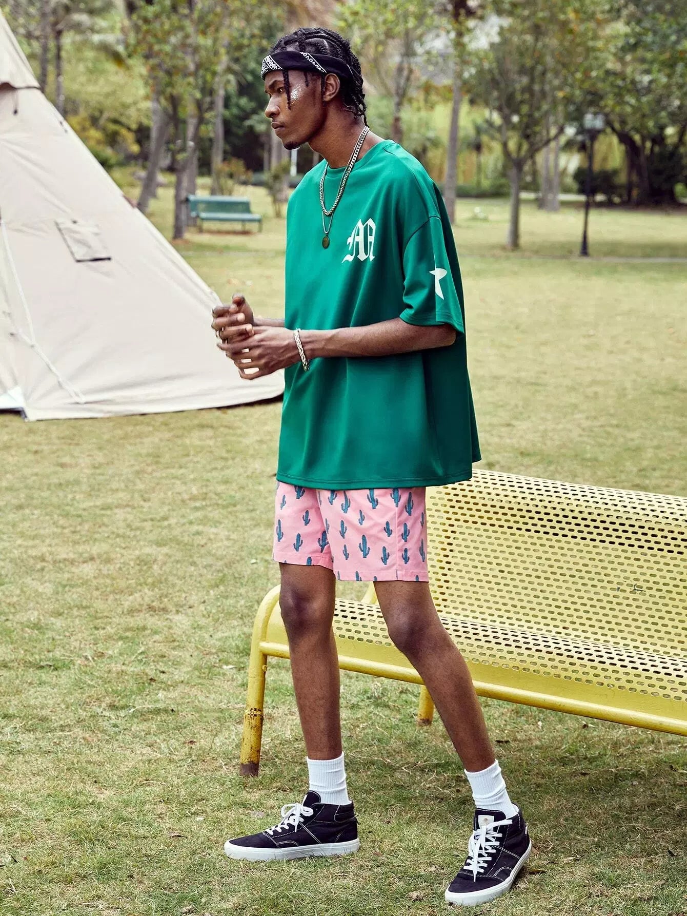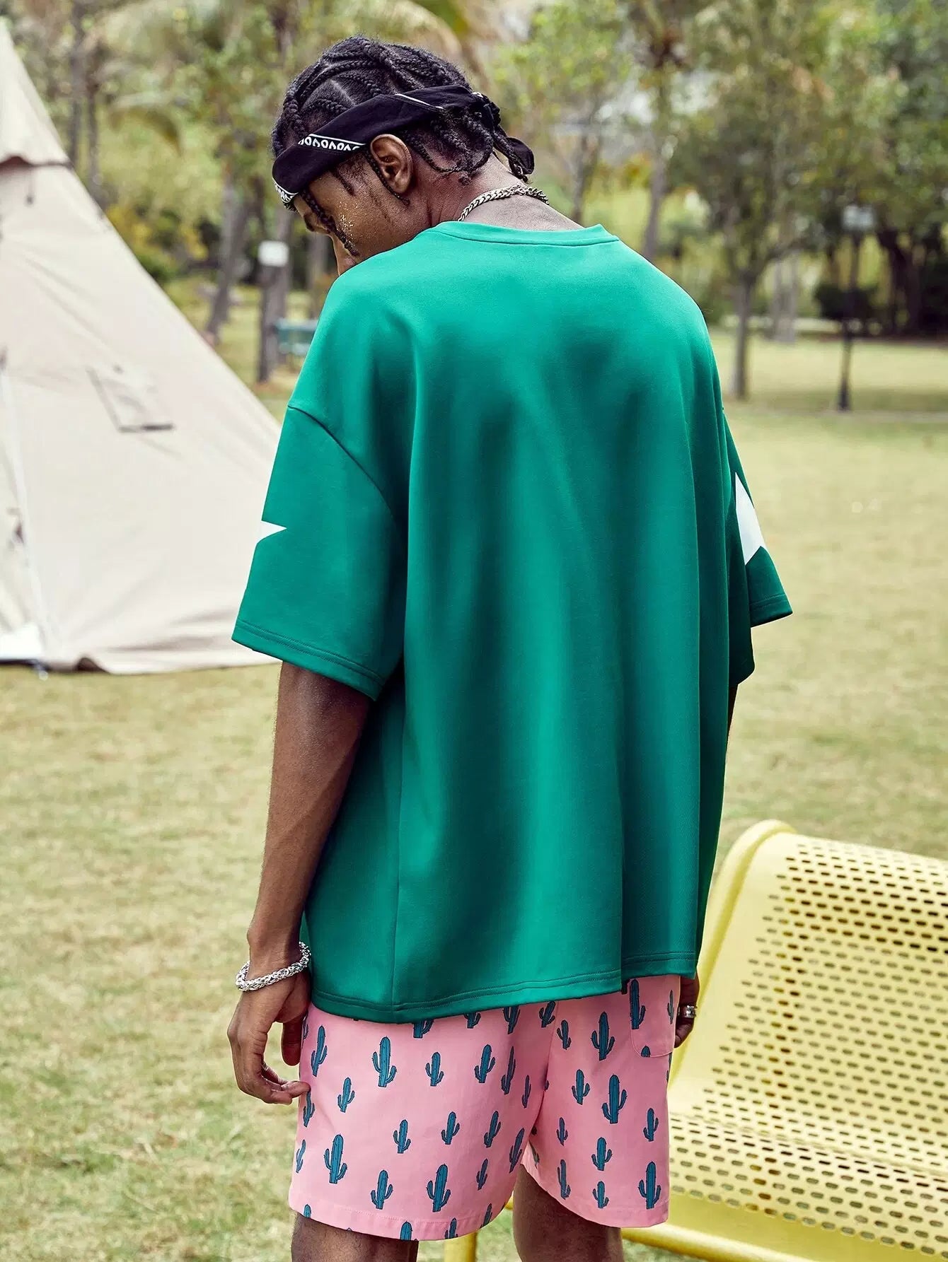 تي شيرت رجالي منسدل الكتف برسومات على شكل حرف