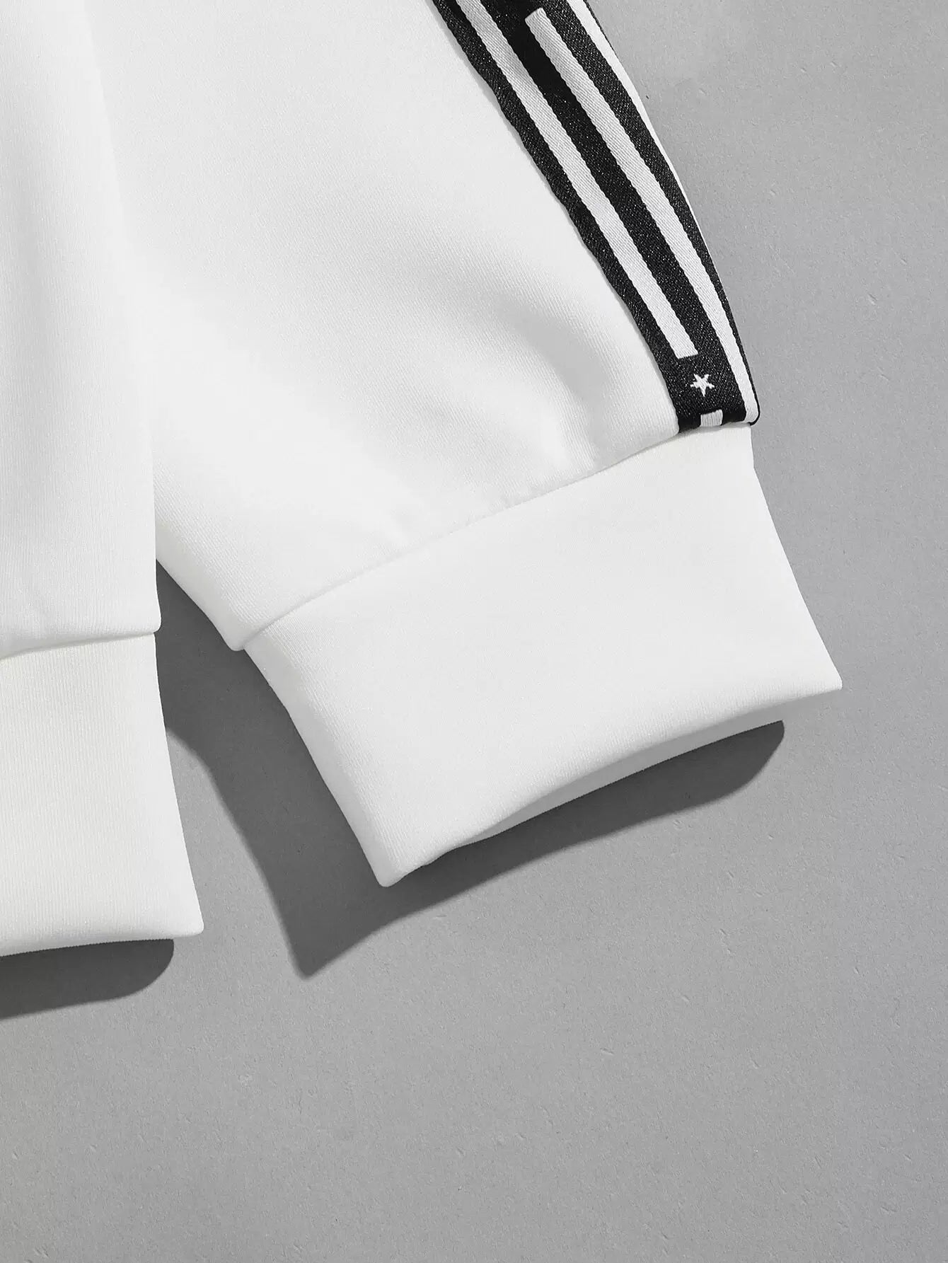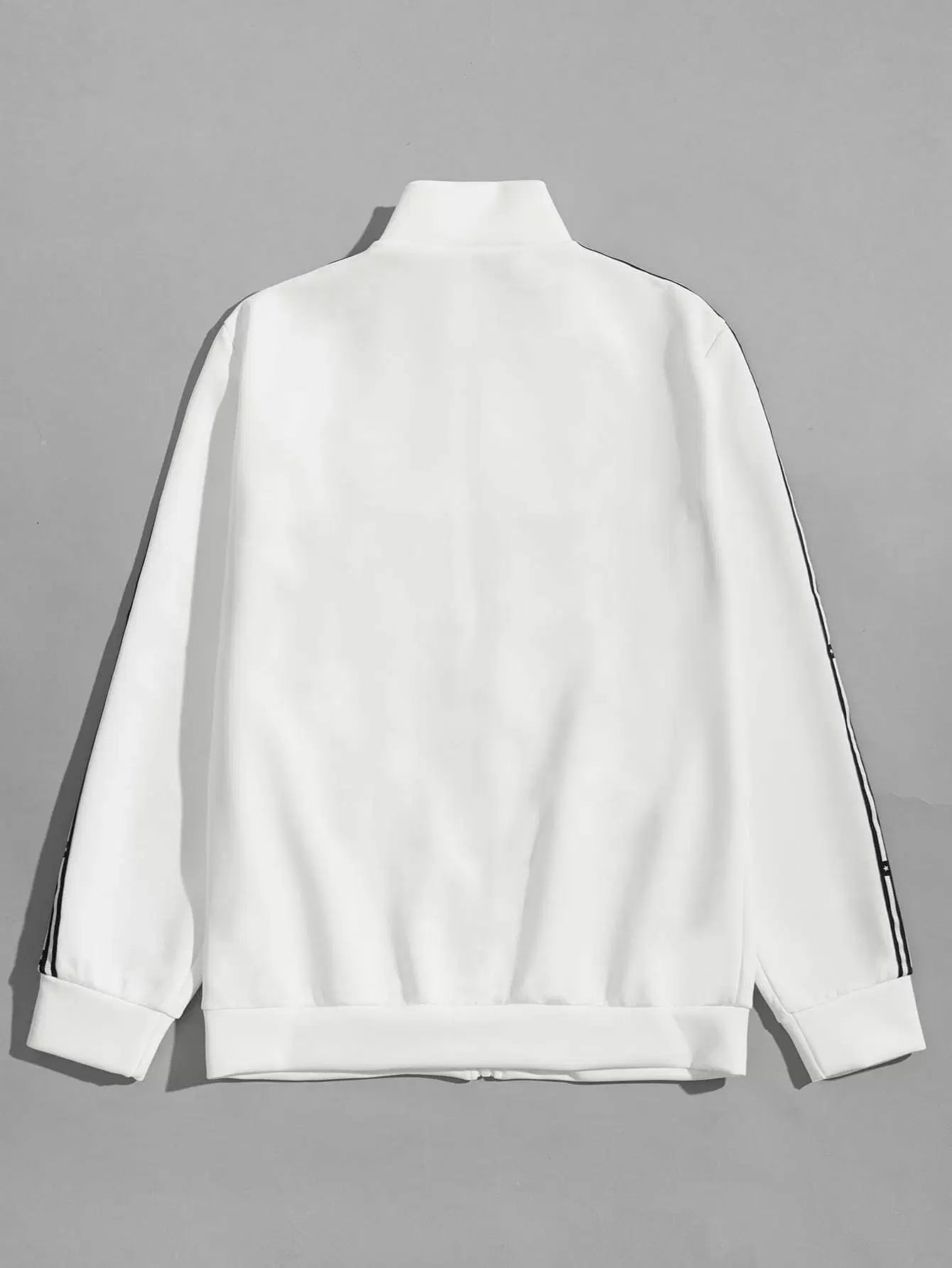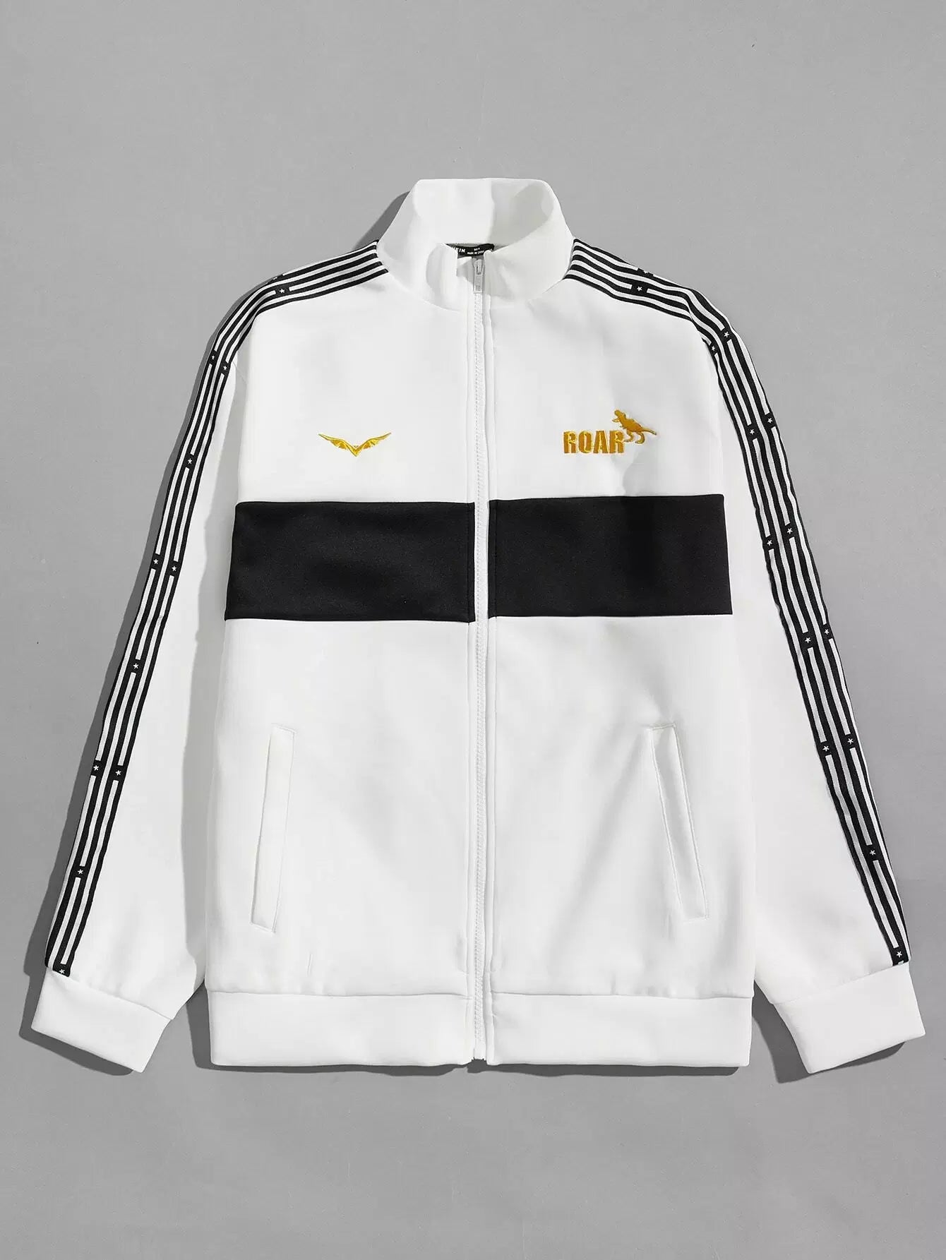جاكيت رجالي مزين بتطريزات مخططة بشريط مخطط بسترة بسحاب