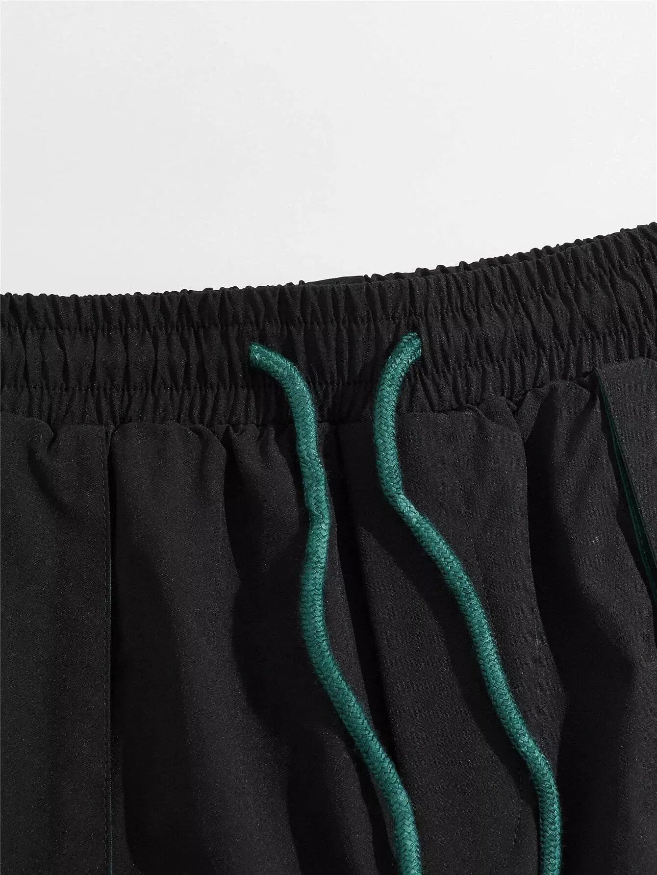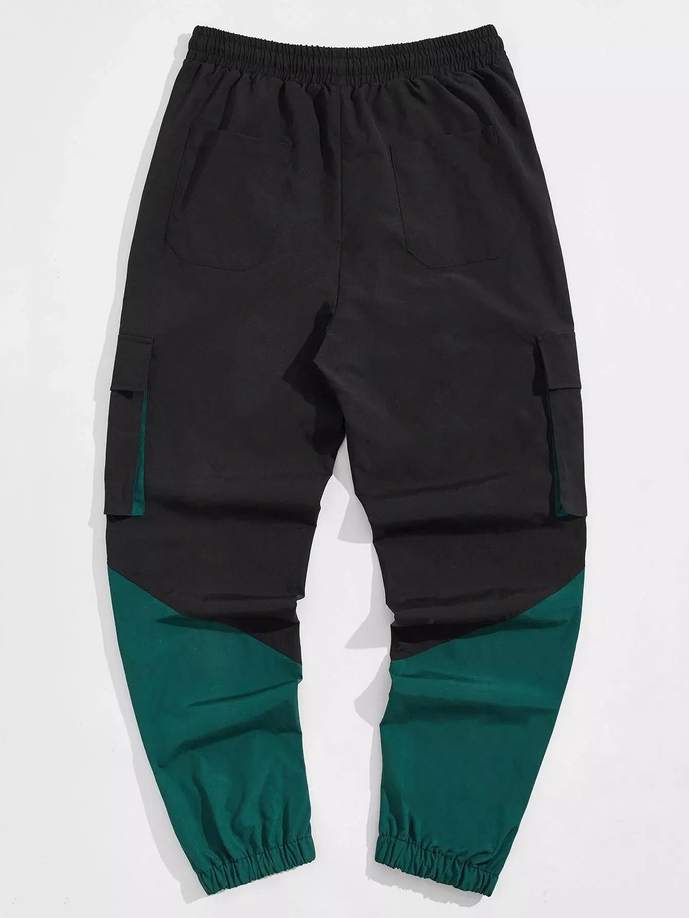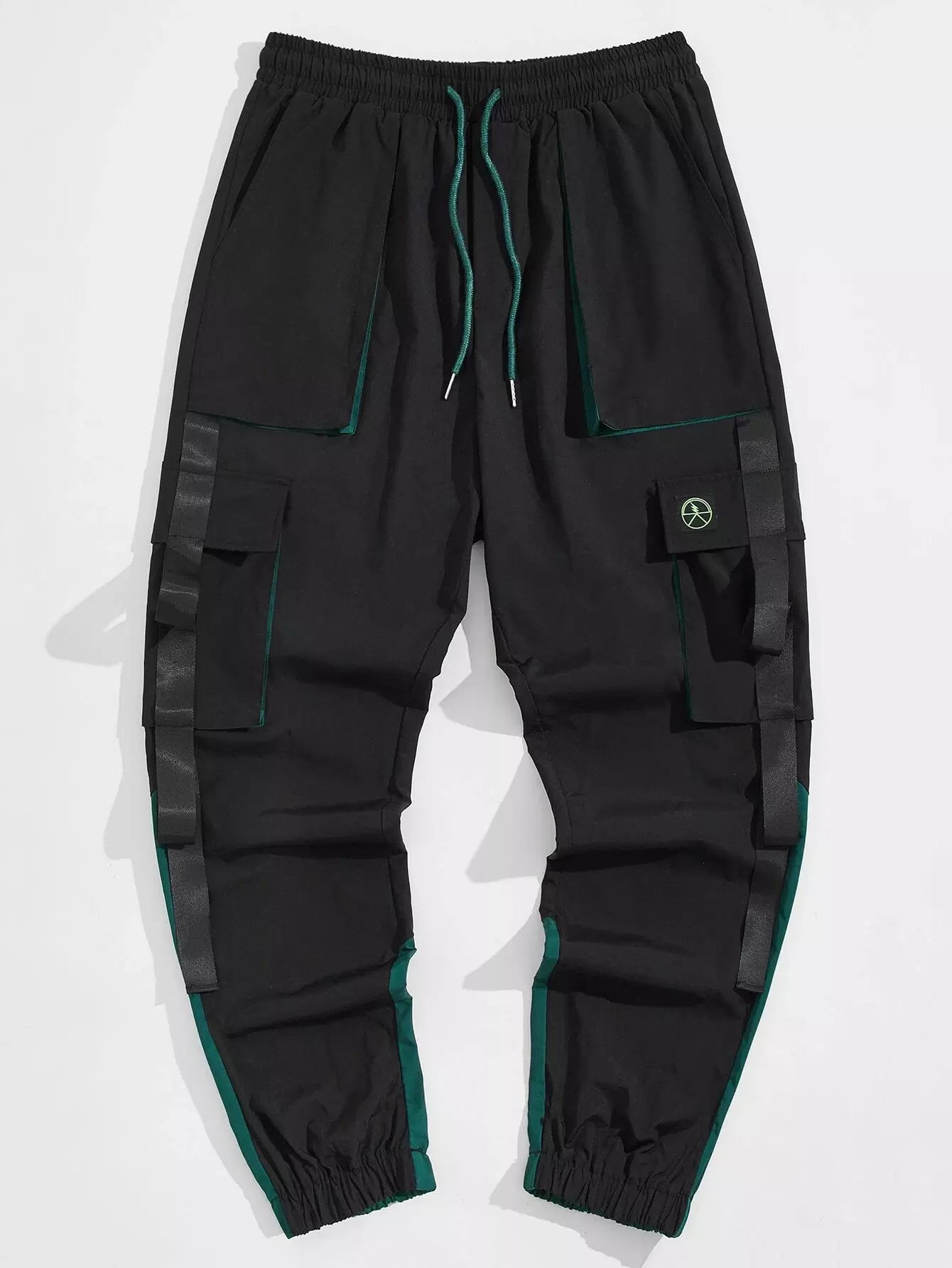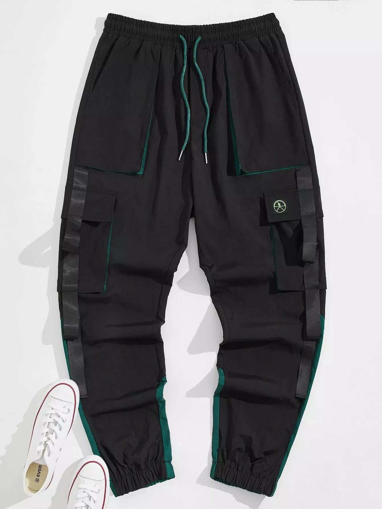بنطال كارجو رجالي بجيوب وتفاصيل مرقعة ورباط