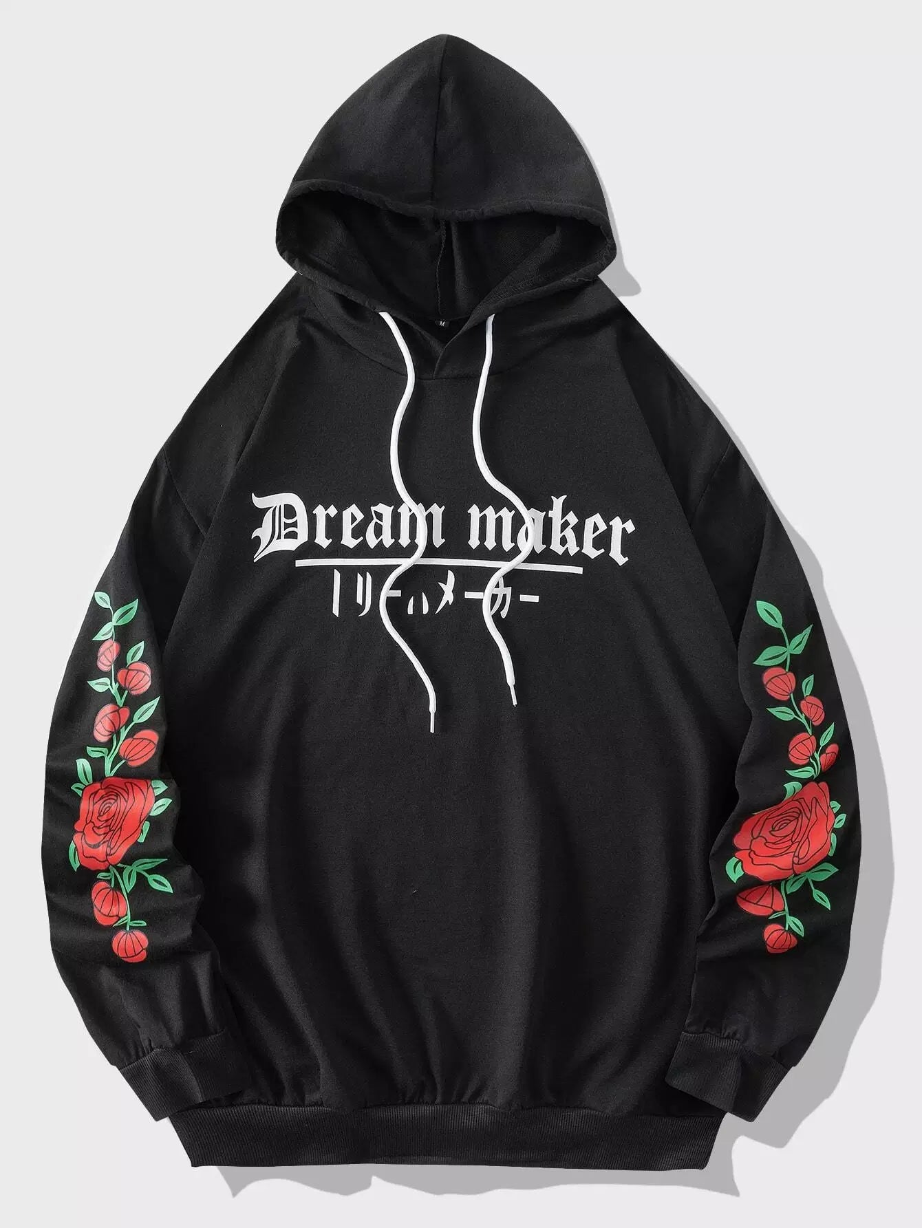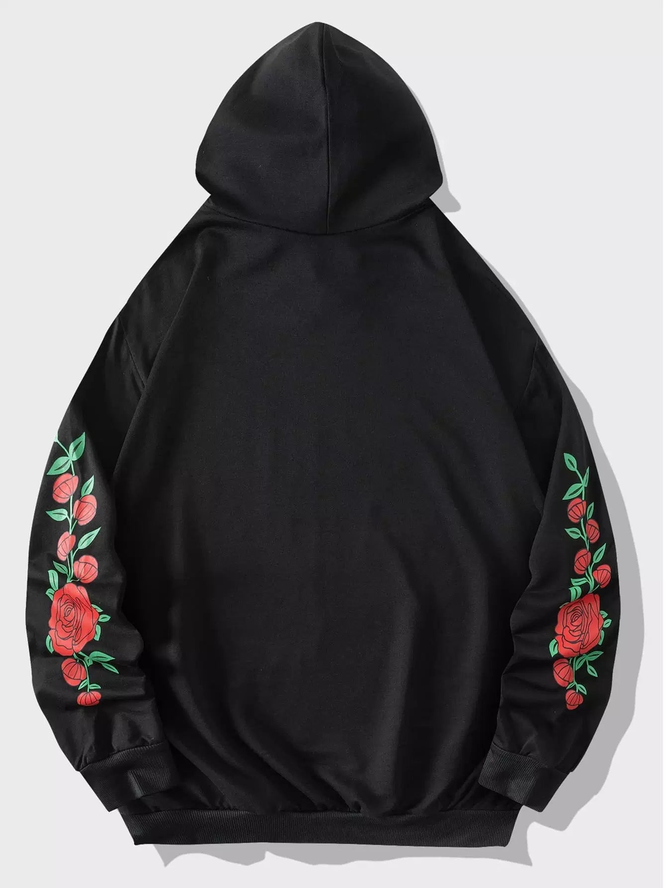 هودي برباط جرافيك مزين بالزهور والرسومات للرجال