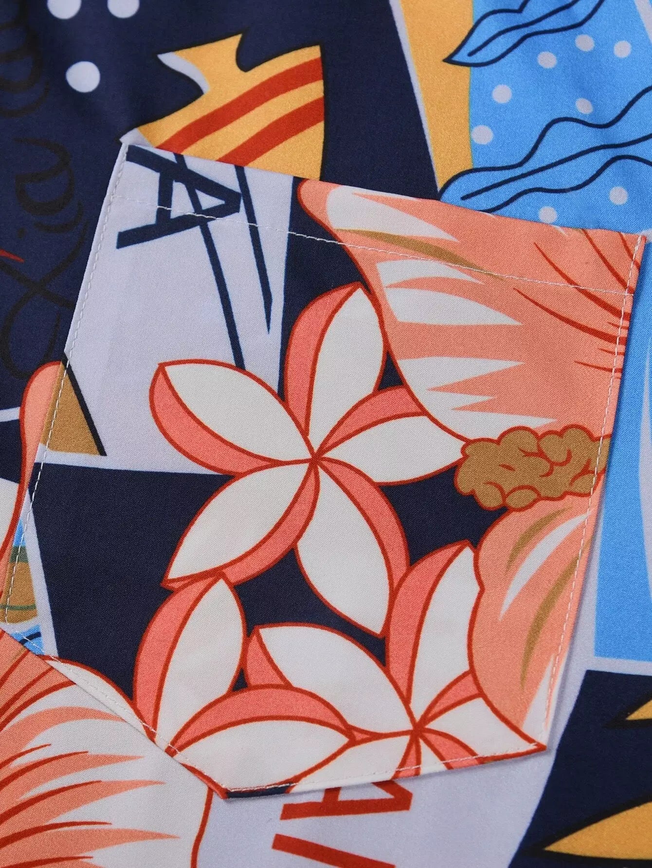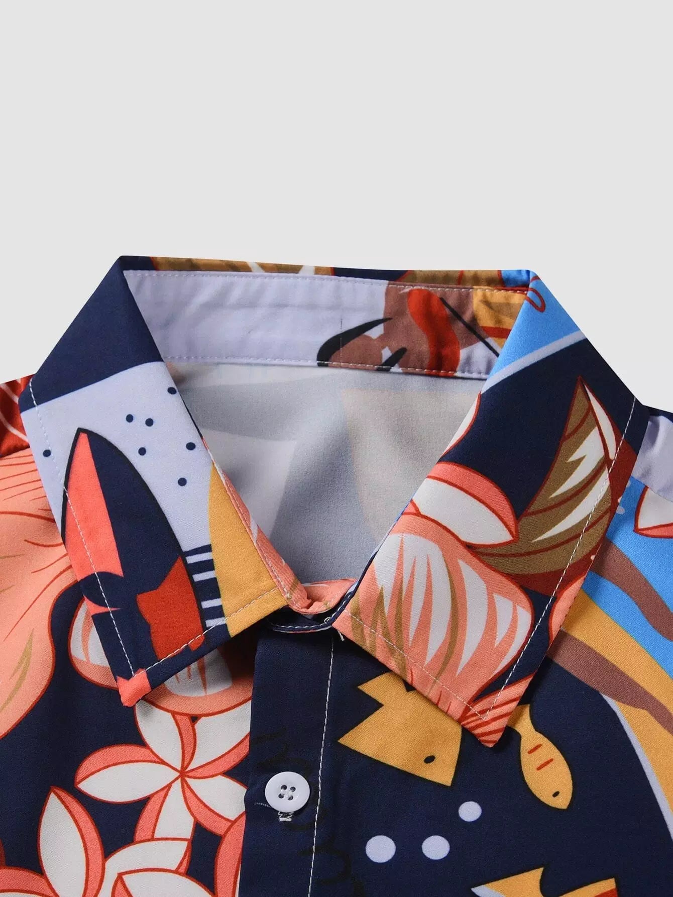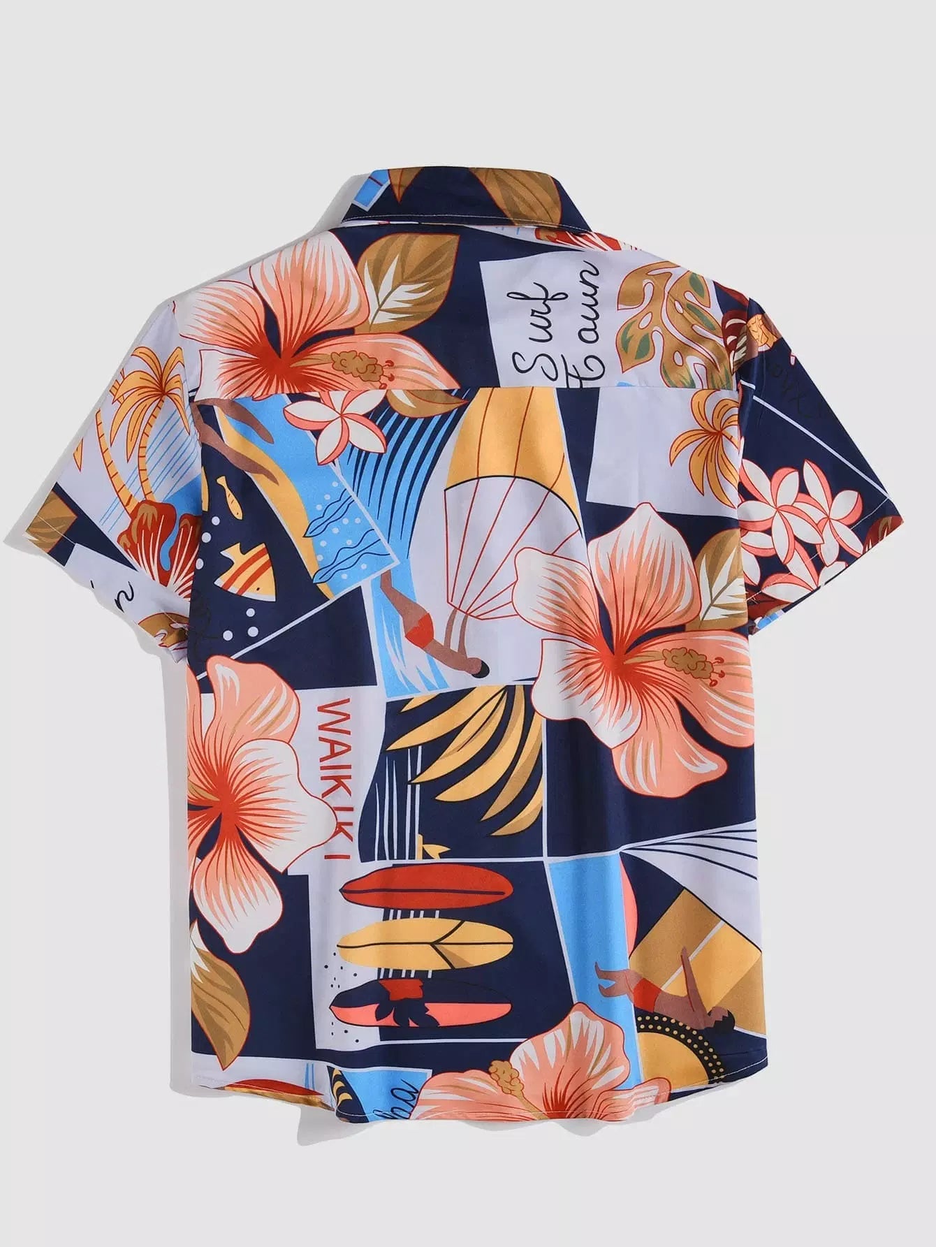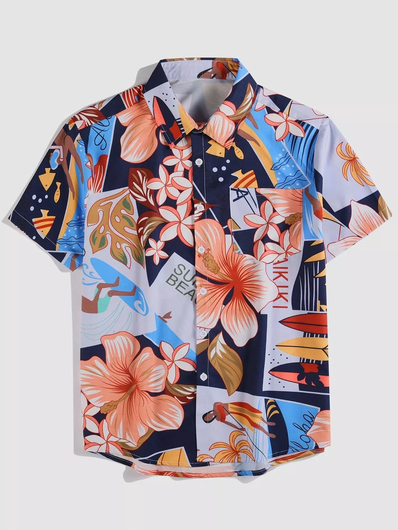 قميص رجالي بطبعة زهور مطبوع بأزرار فوق الزر