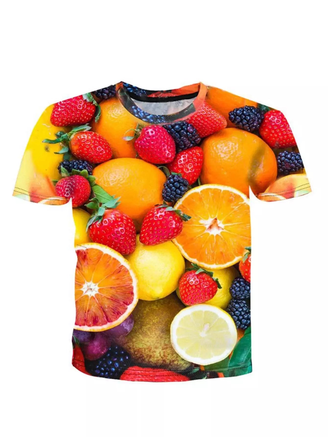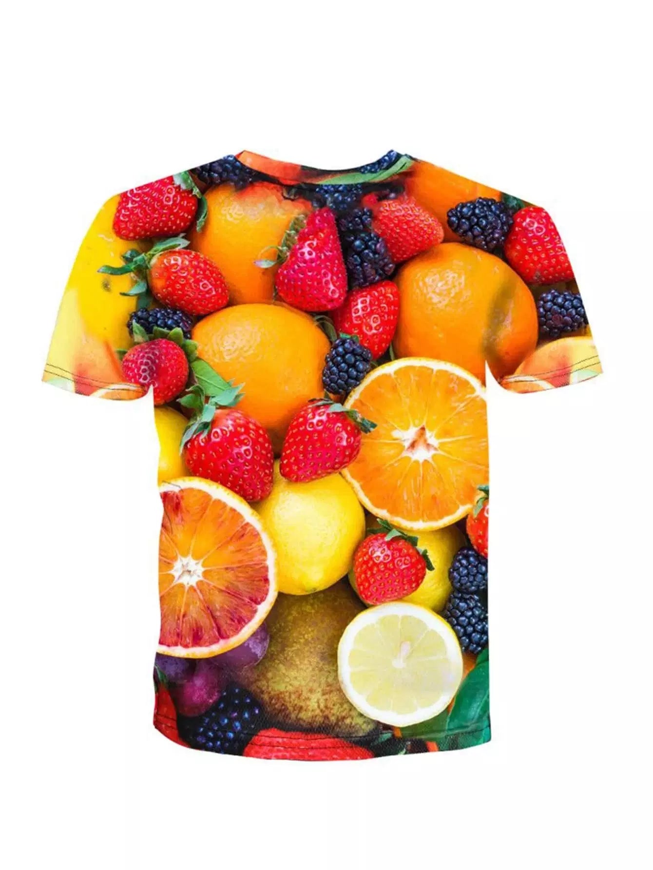 تي شيرت رجالي بطبعة فاكهة مطبوع عليه رقبة كرو للرجال
