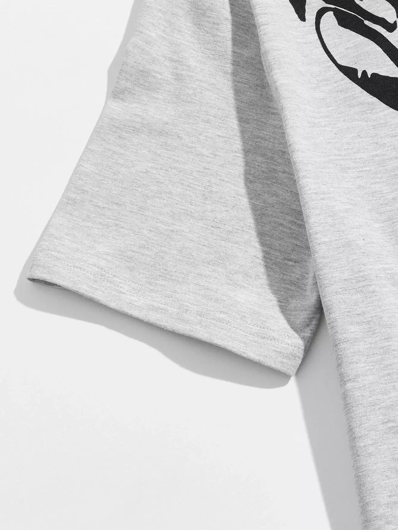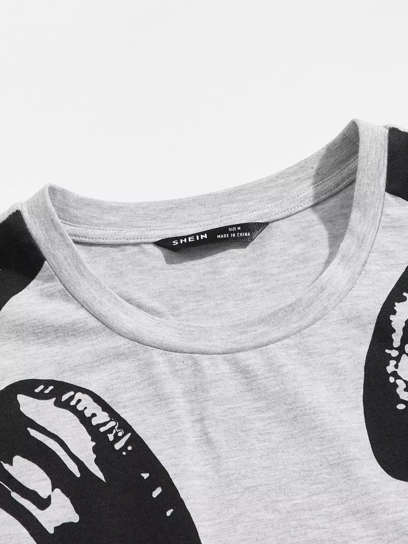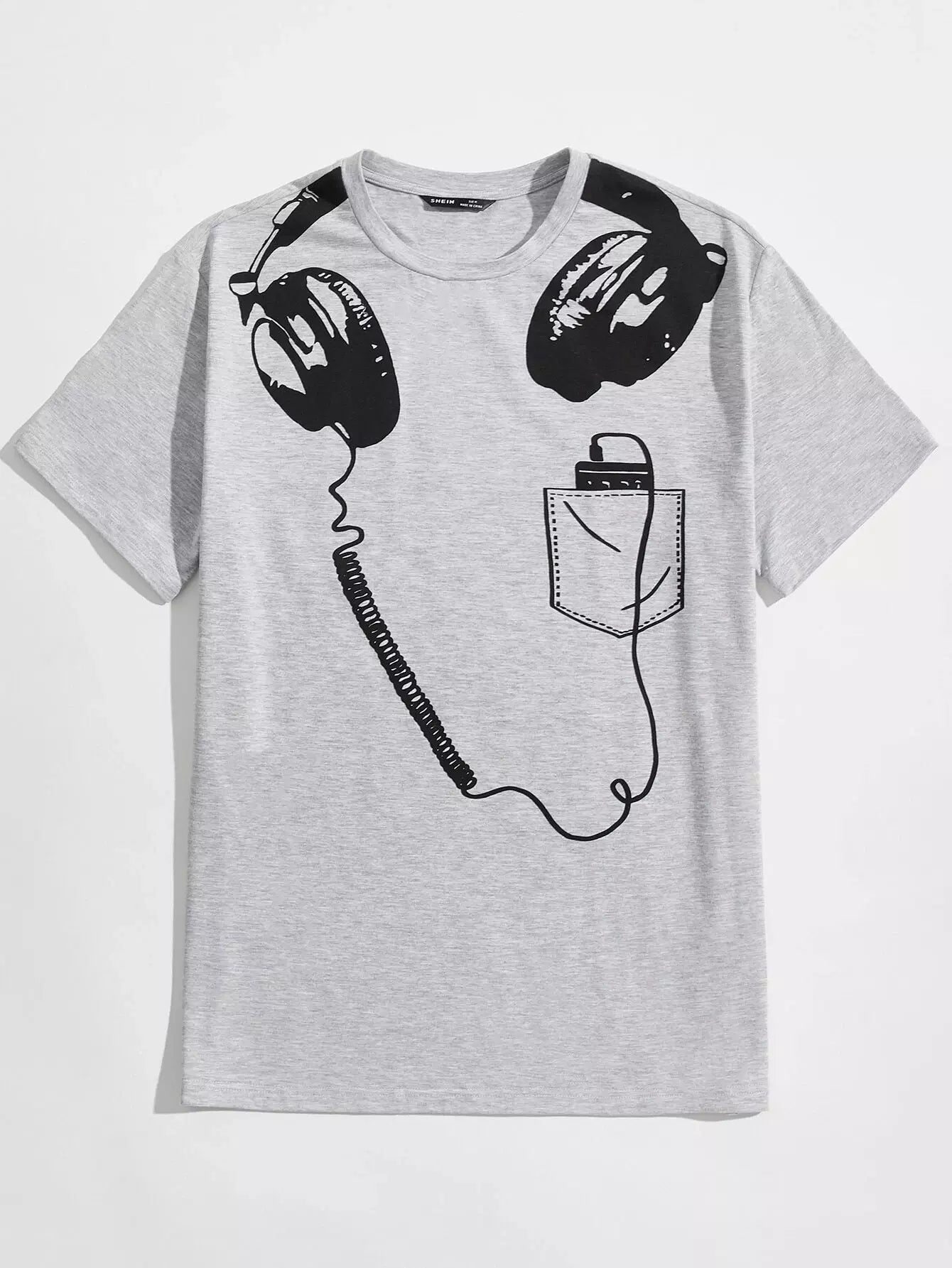 تي شيرت برقبة دائرية مطبوع عليه سماعة رأس رجالي