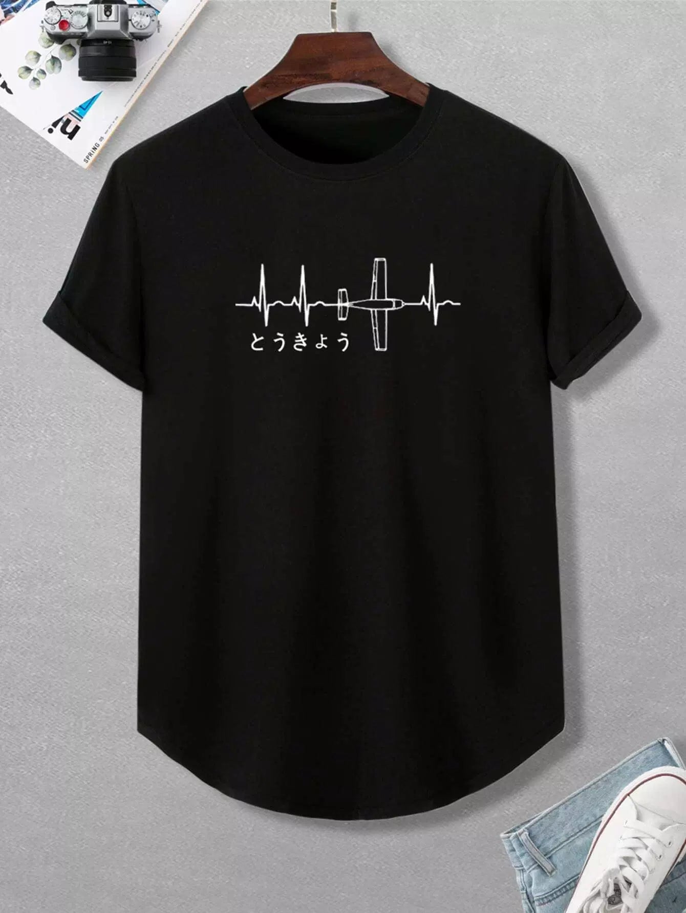 تي شيرت رجالي ياباني برسوم حرف ياباني
