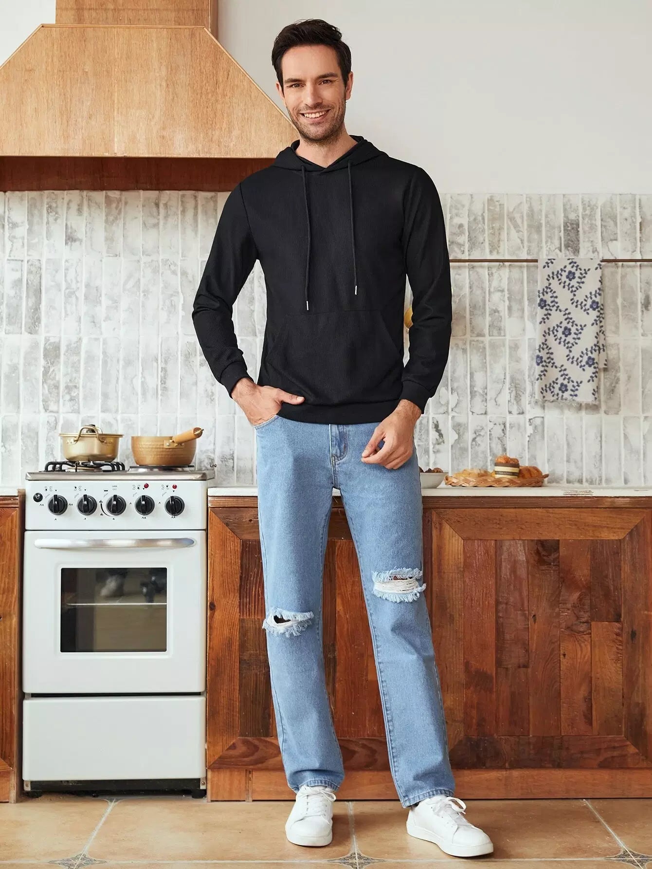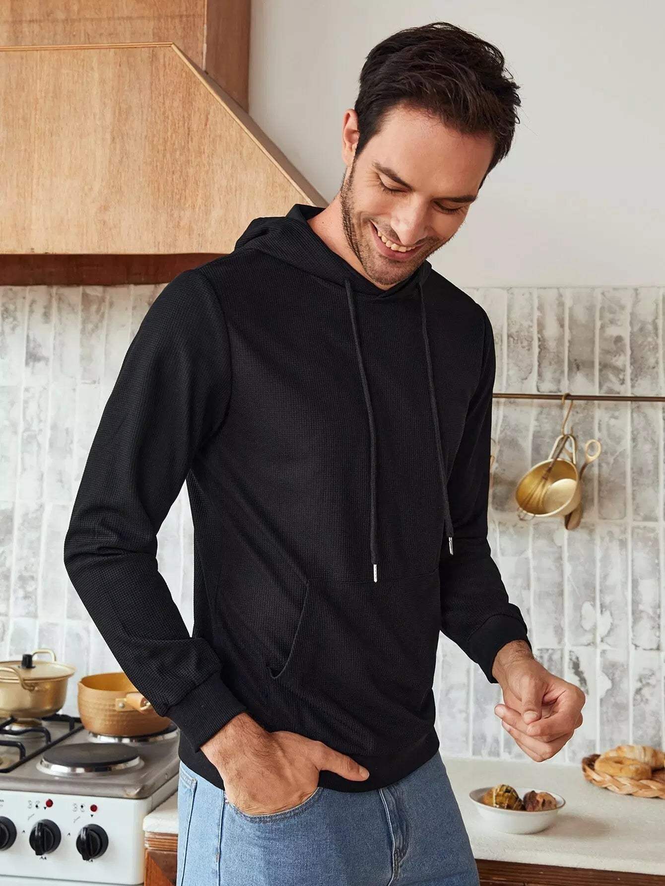 كنزة بقلنسوة برباط بجيب كنغر للرجال