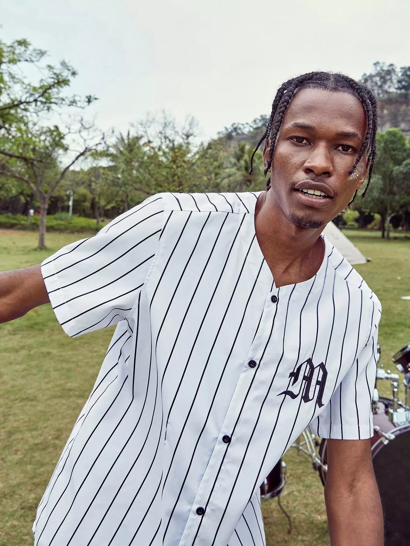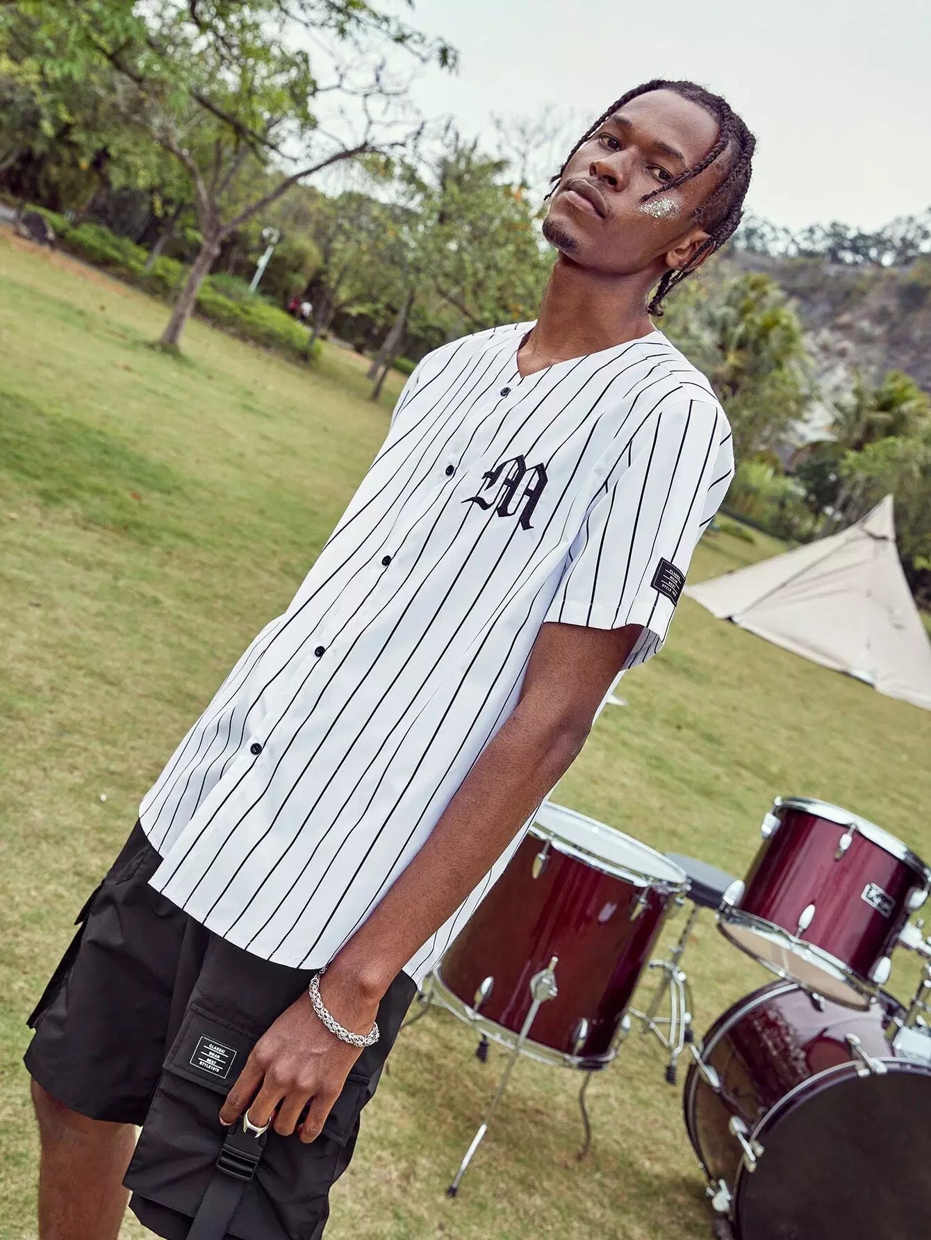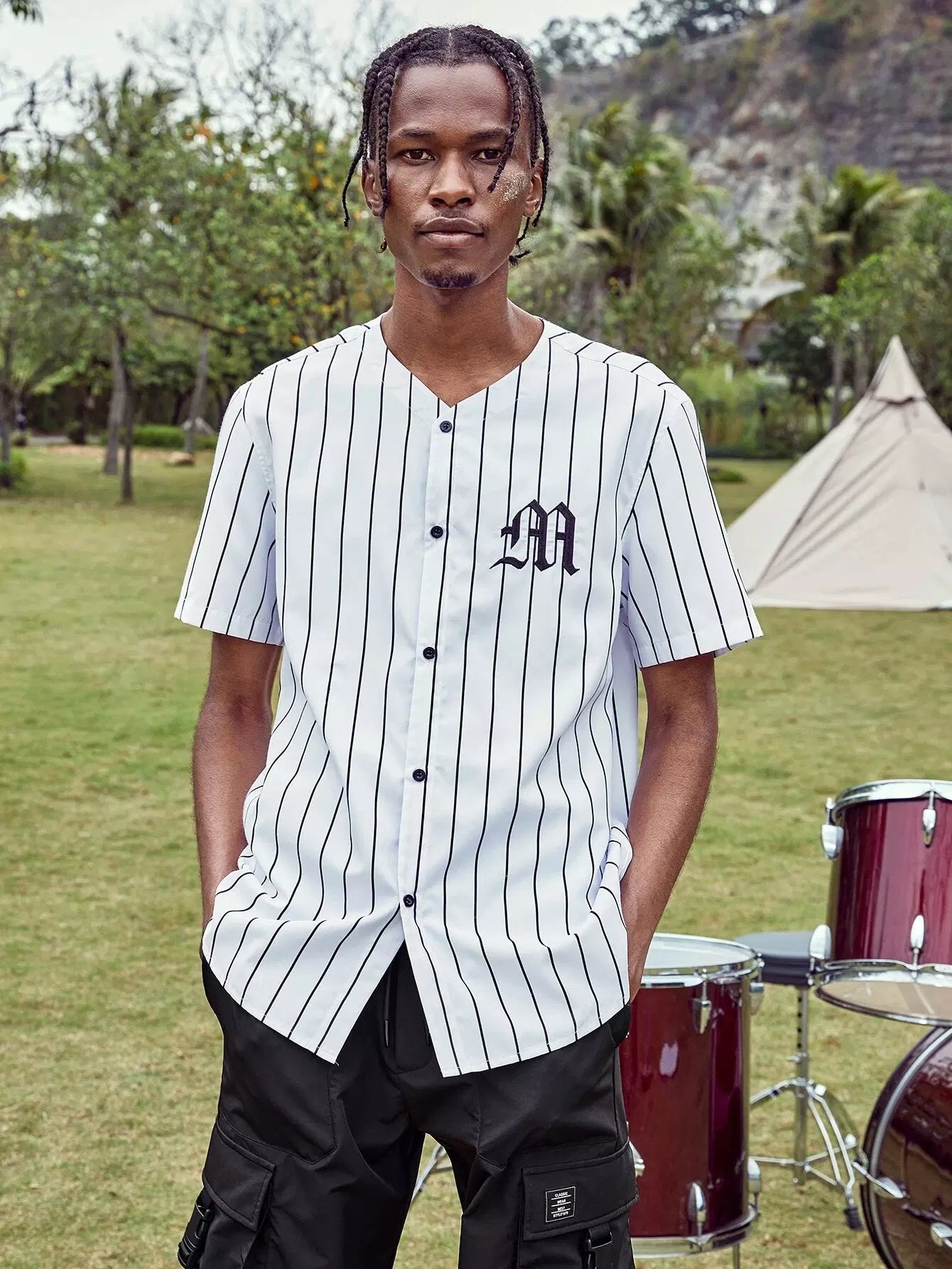 قميص رجالي مخطط بتطريزات حروف للرجال