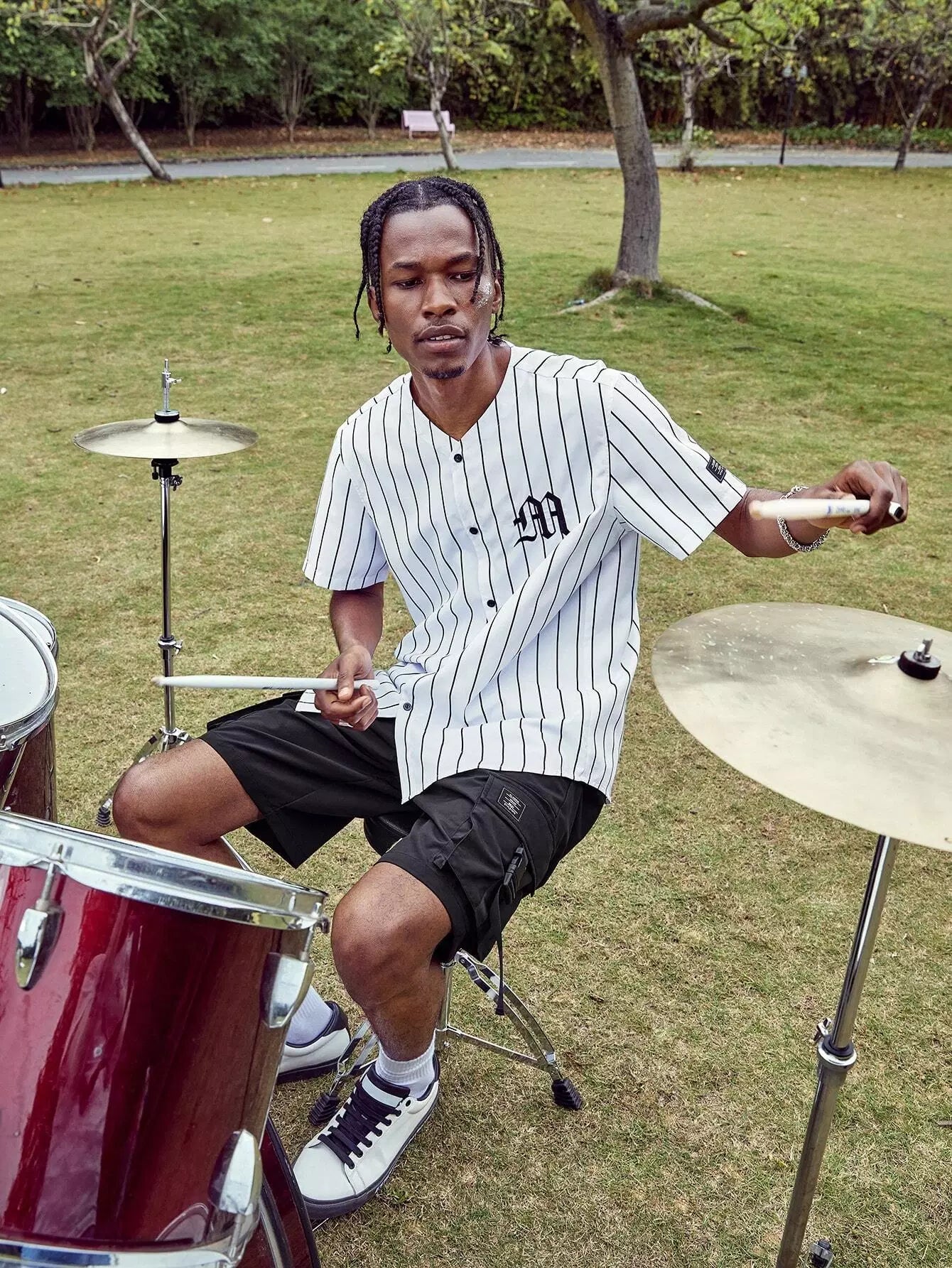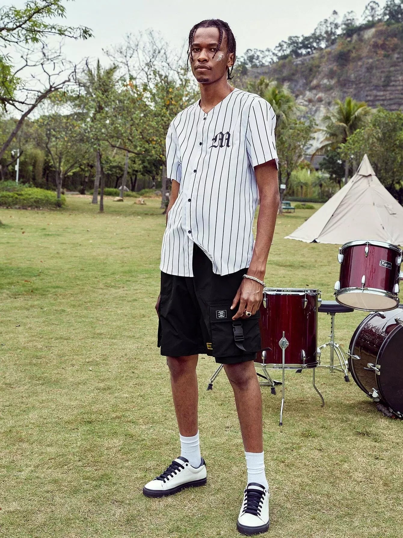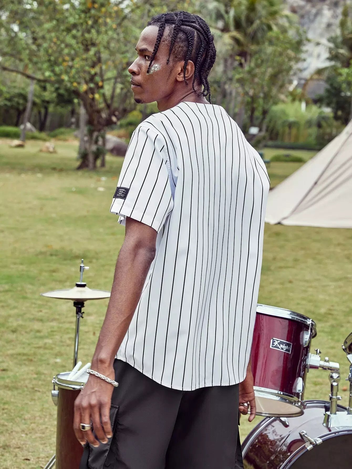 قميص رجالي مخطط بتطريزات حروف للرجال
