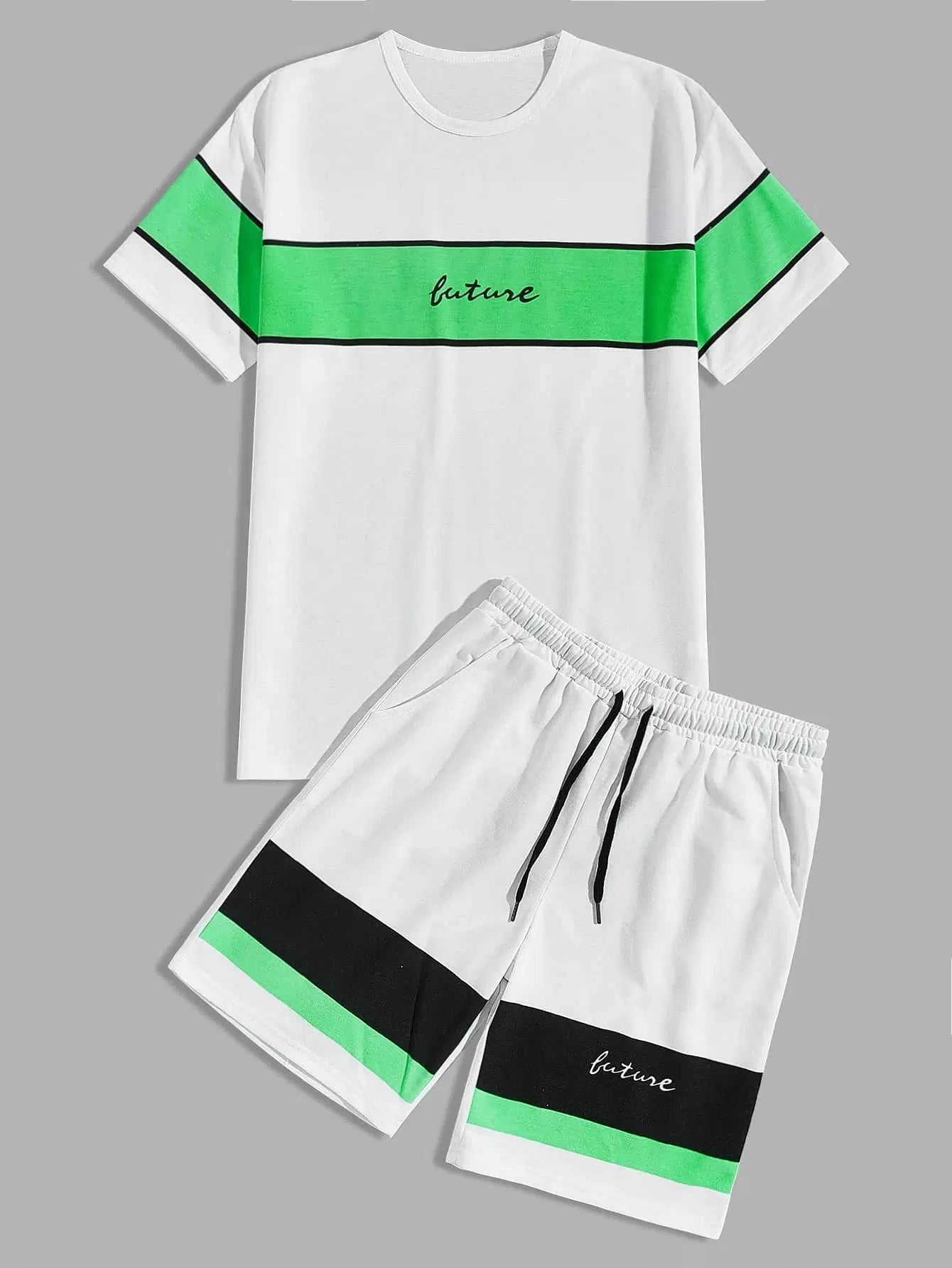 تي شيرت ملون برسومات رجالية مع شورت قصير برسومات رجالية