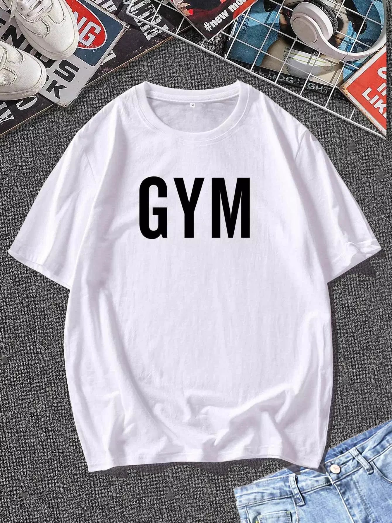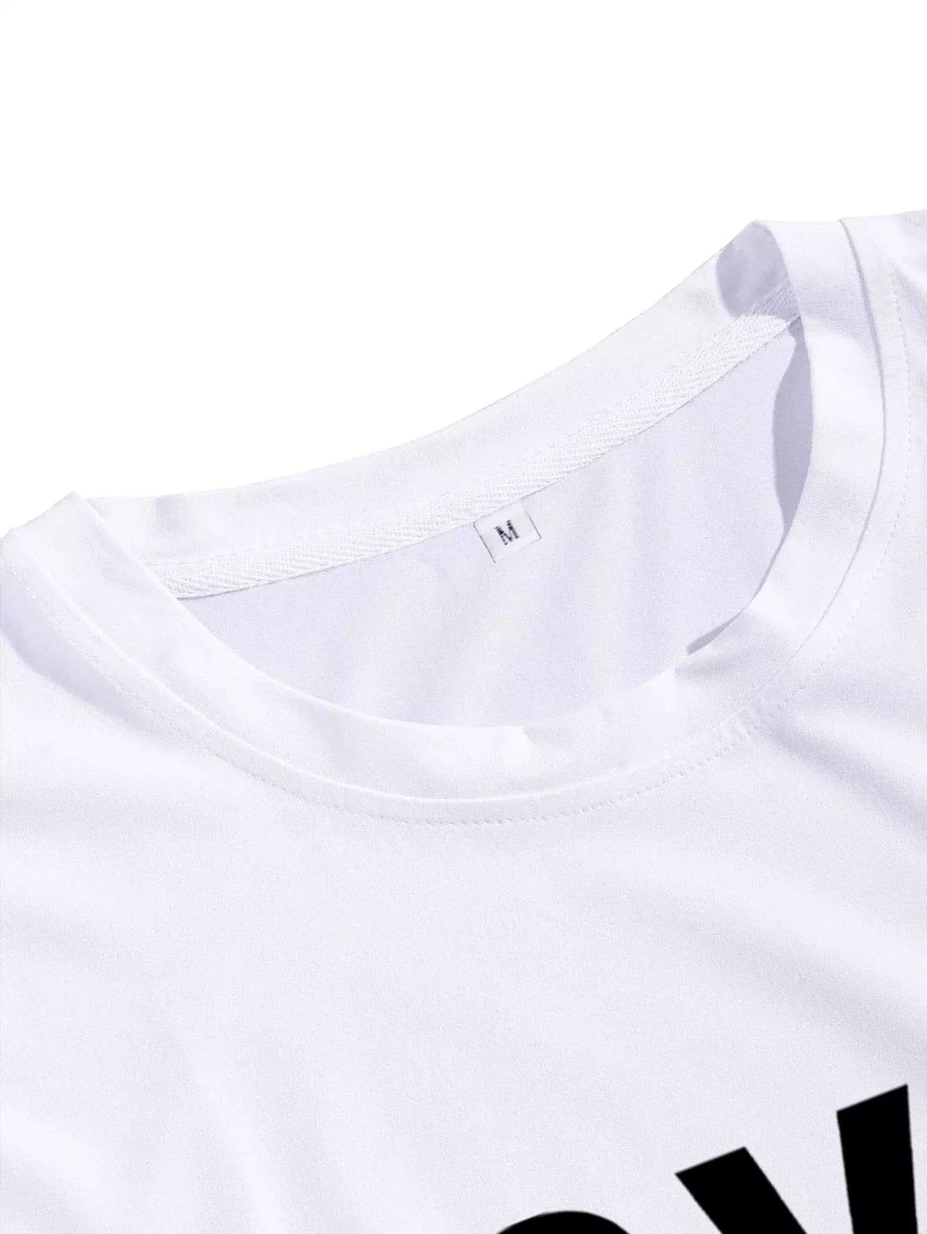تي شيرت رجالي برقبة دائرية ورسومات بأحرف