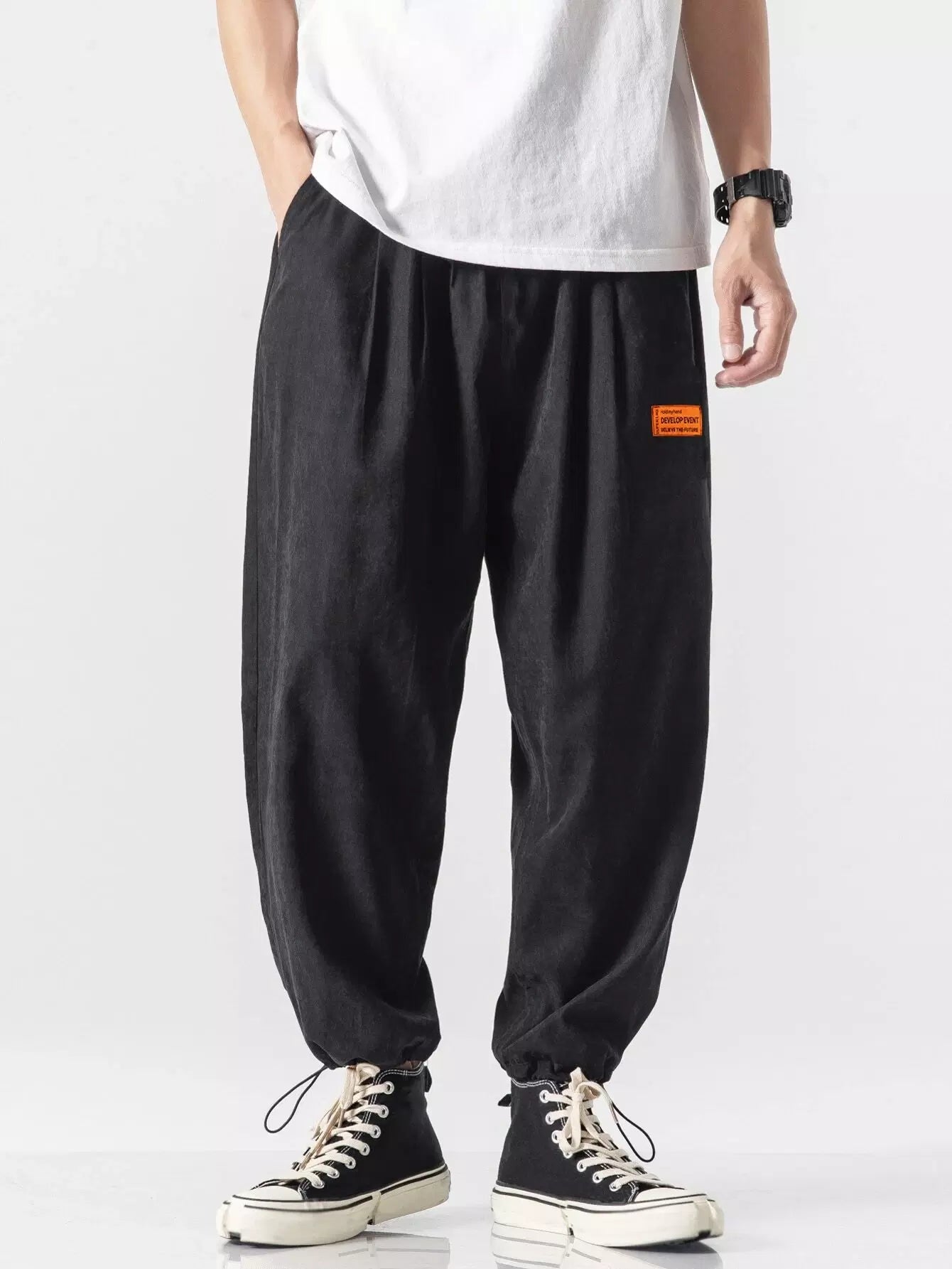 بنطلون رجالي مرقع بحاشية مرقعة بحروف منقوشة
