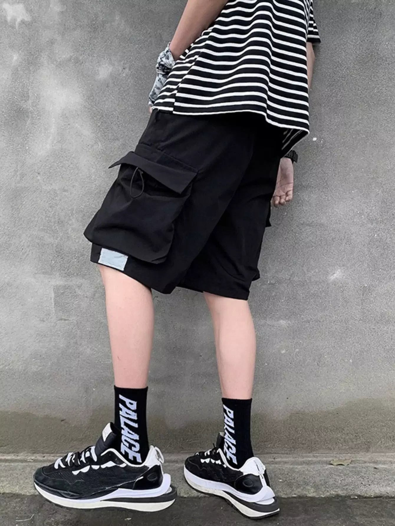 شورت كارغو رجالي مزين بفتحة جيب بغطاء مفتوح للرجال