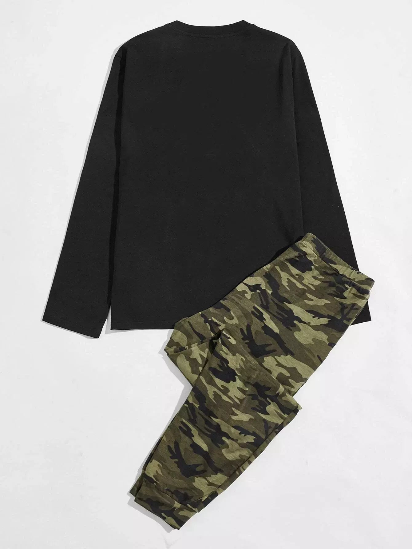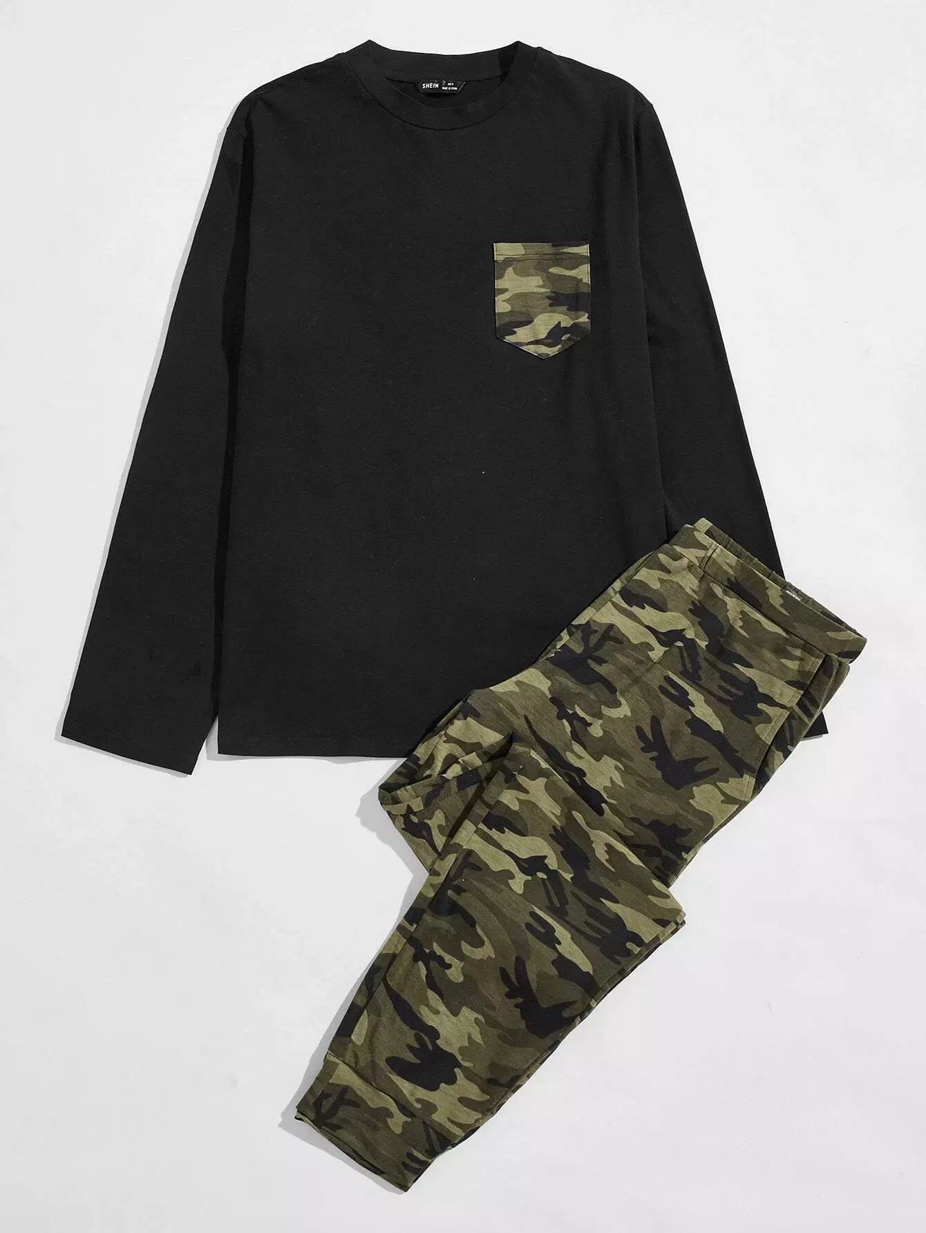 طقم تي شيرت بجيوب مرقعة للرجال وبنطلون رياضي مموّه