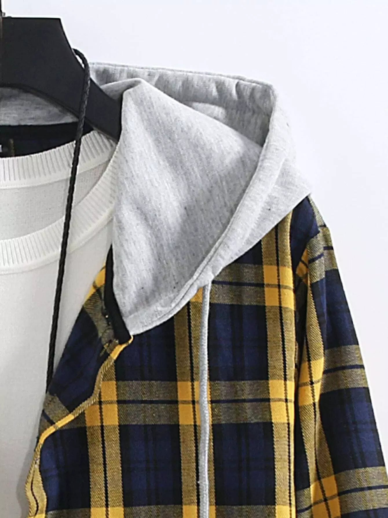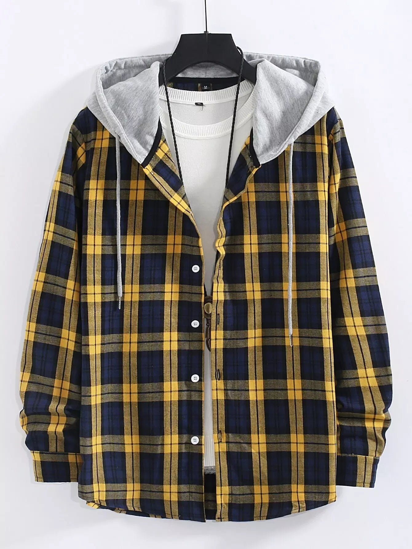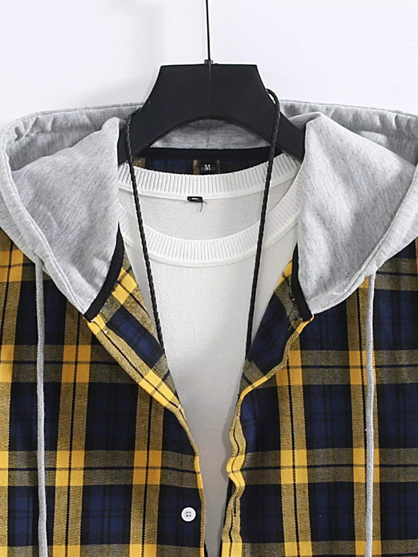 قميص رجالي مطبوع بطبعة منقوشة بأربطة بقلنسوة بدون قميص