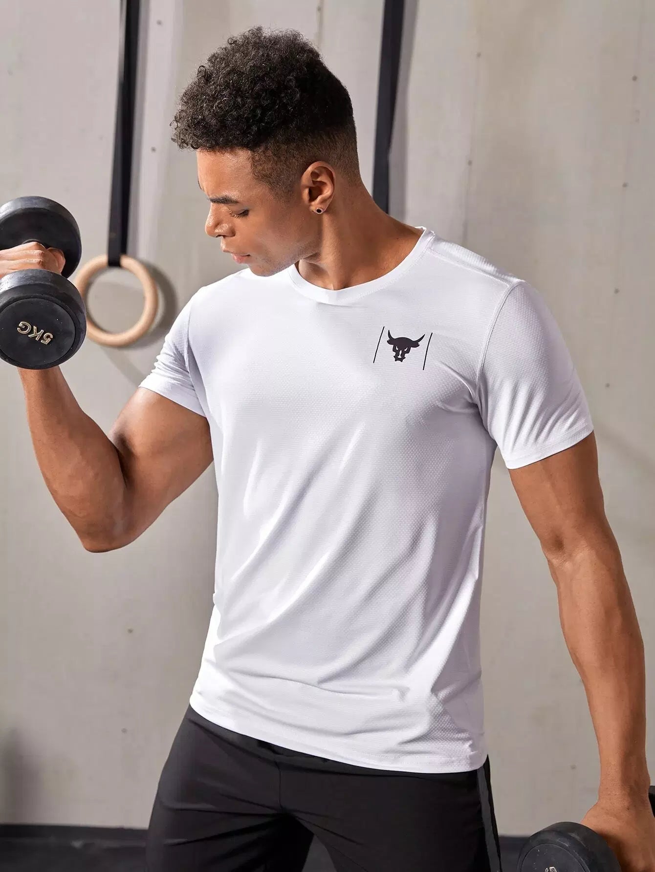 تي شيرت رياضي رجالي سريع الجفاف بطبعة رأس ثور