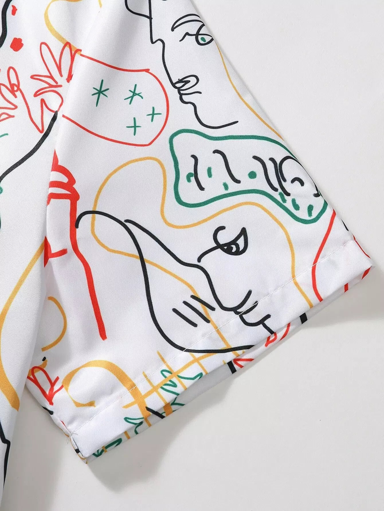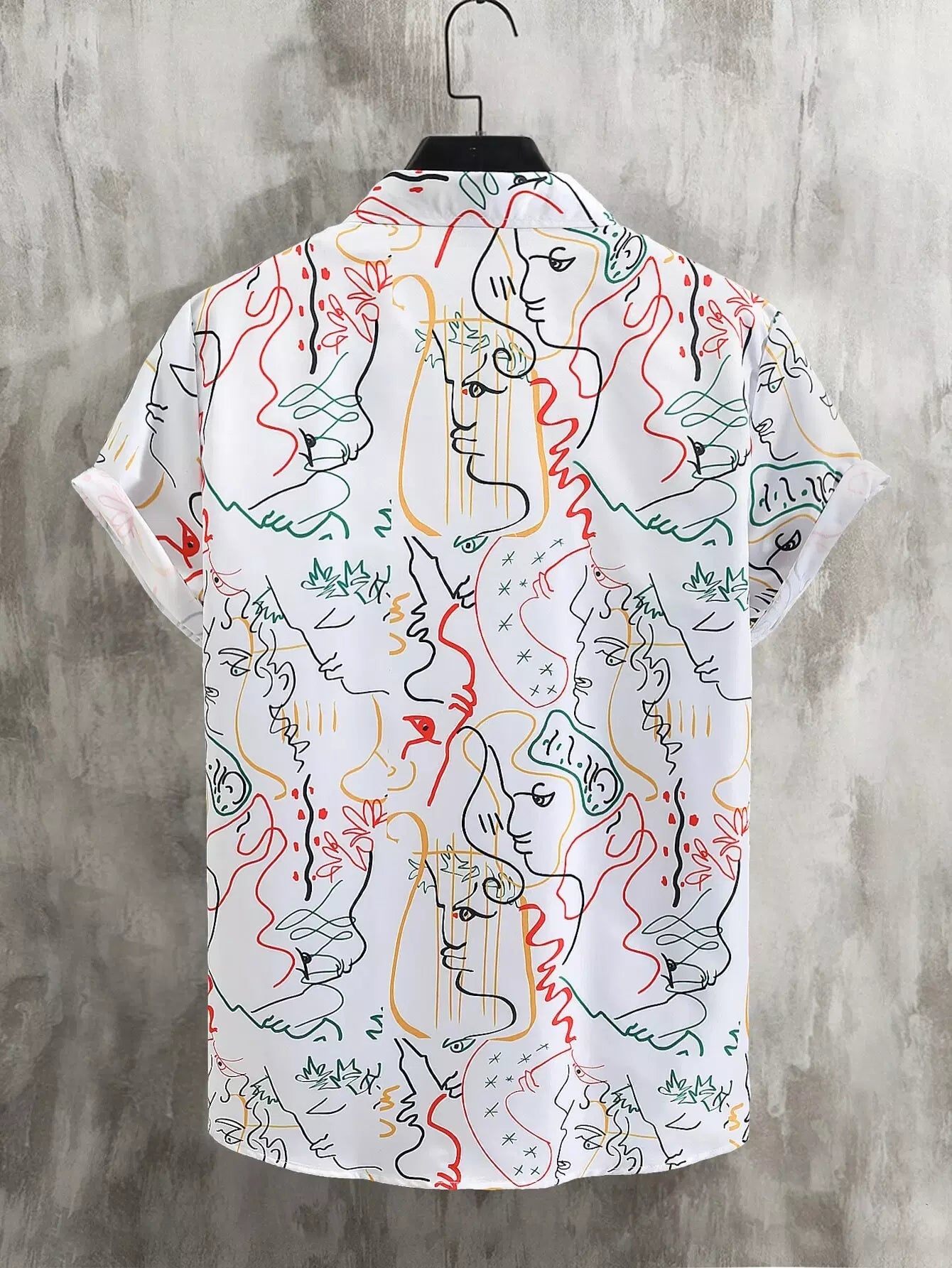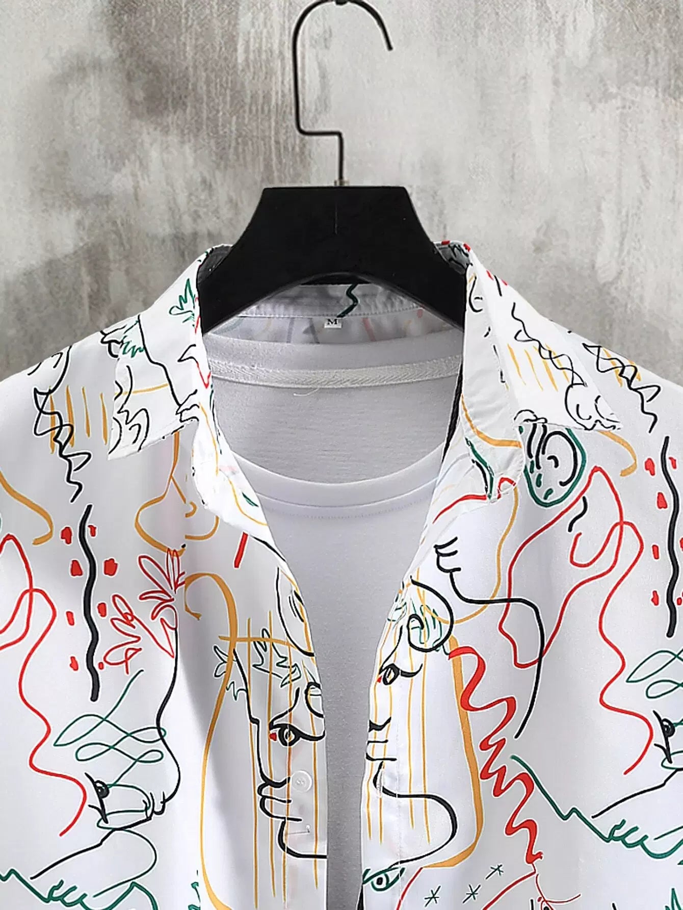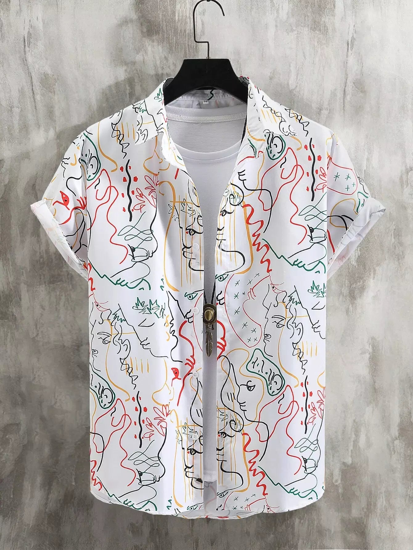 قميص رجالي بطباعة عشوائية لشخصيات ورسومات بدون تي شيرت
