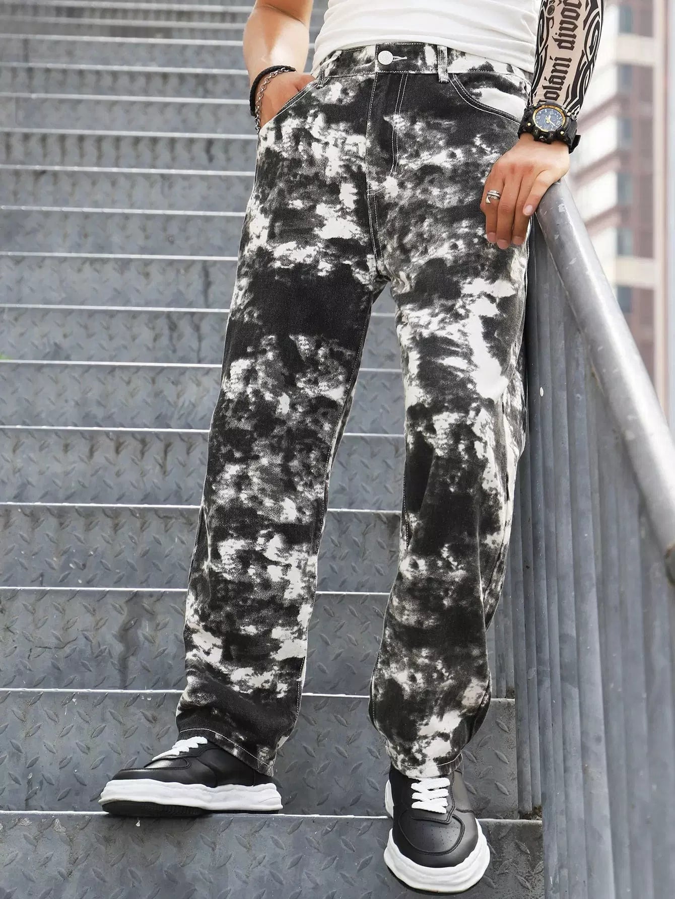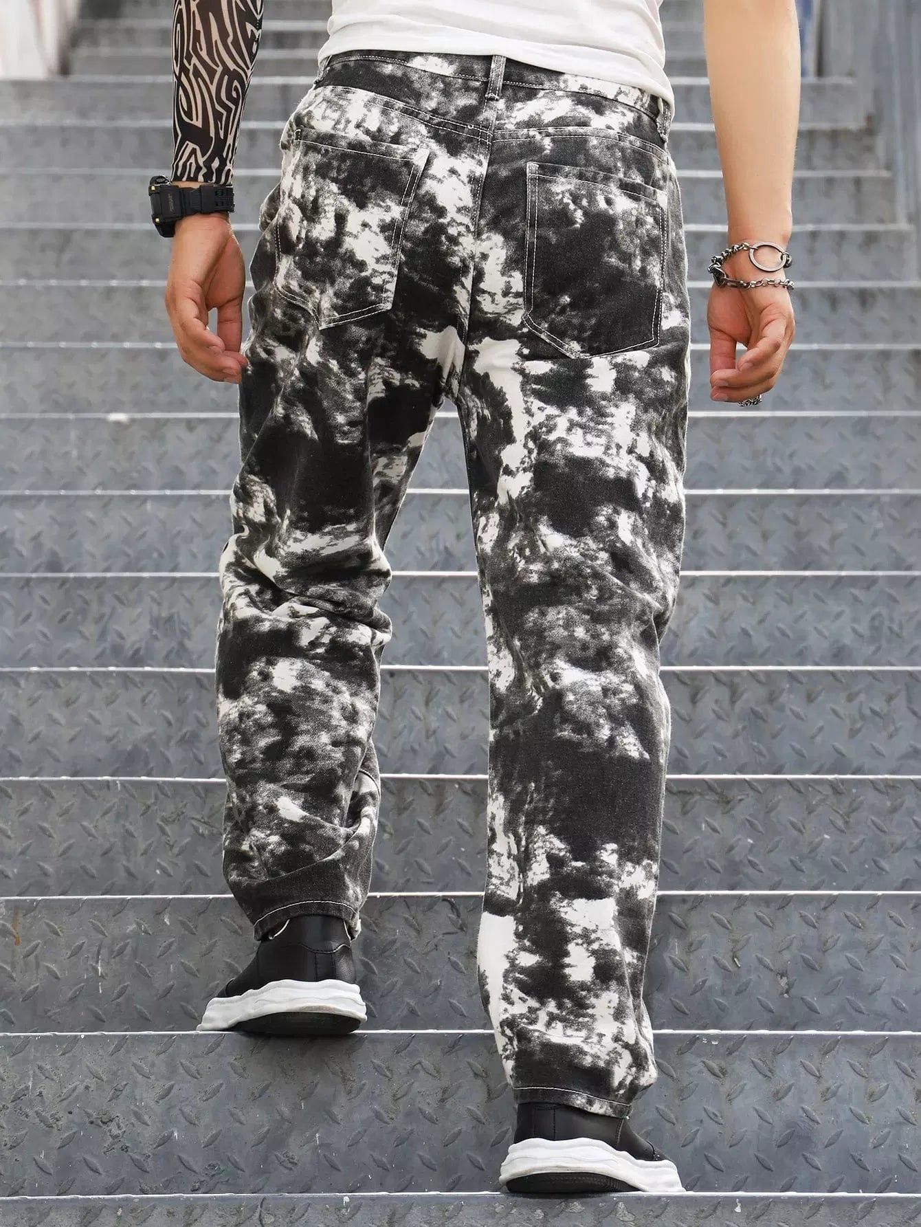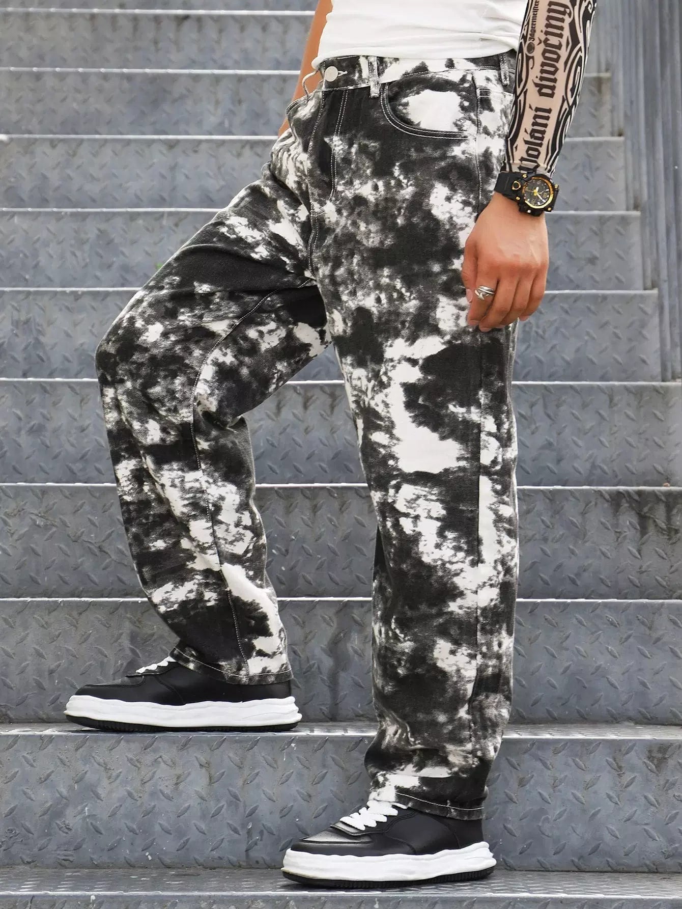 بنطلون جينز عشوائي مصبوغ بربطة عنق رجالي