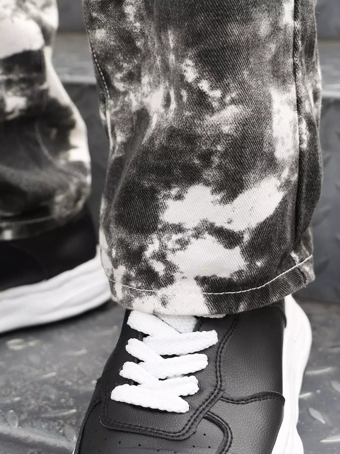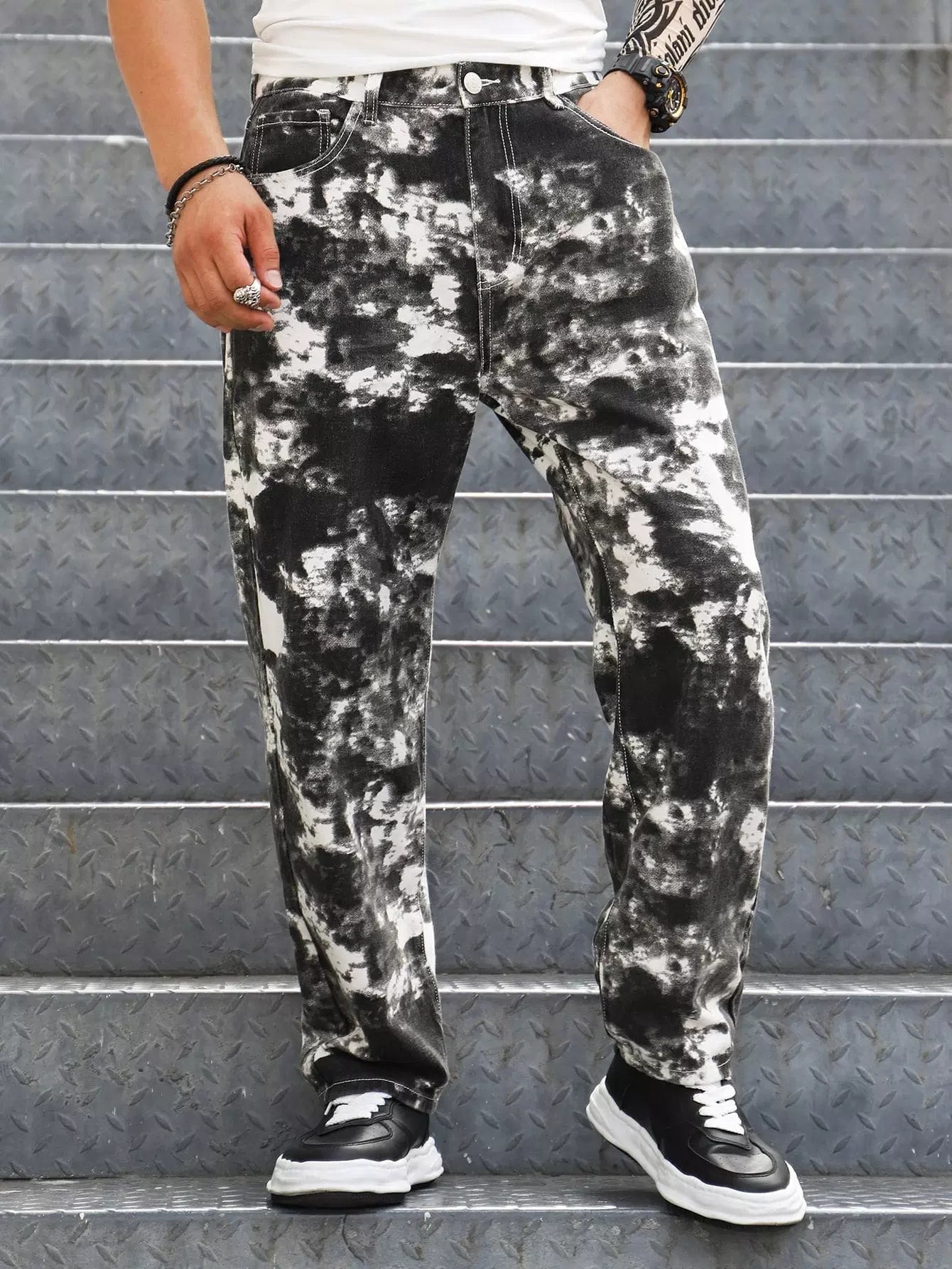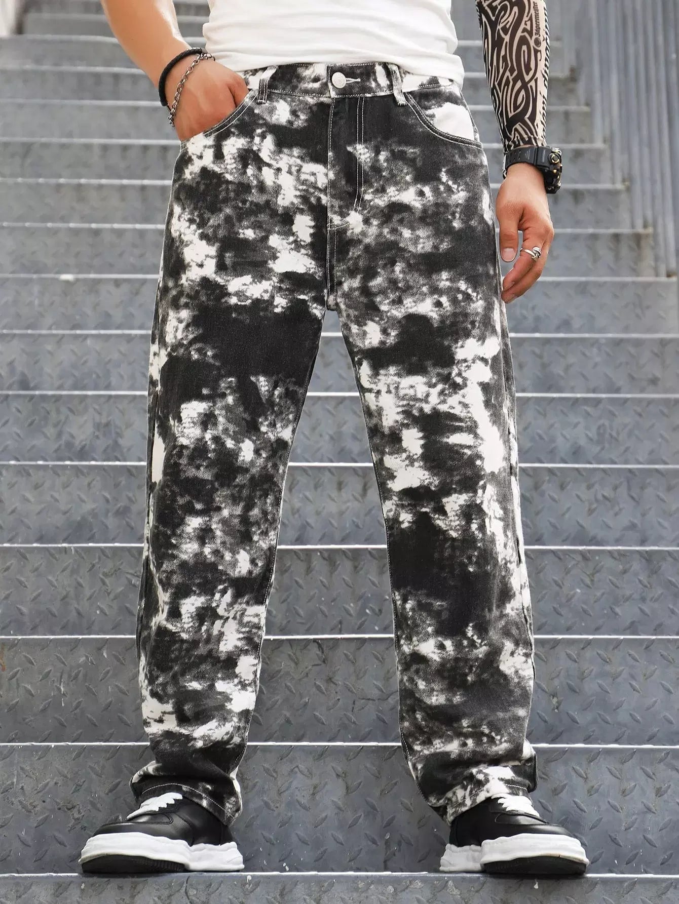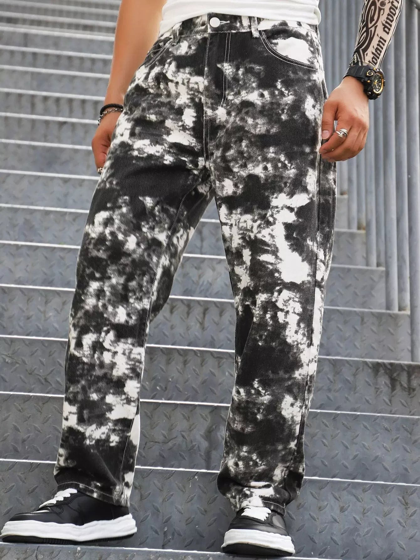 بنطلون جينز عشوائي مصبوغ بربطة عنق رجالي