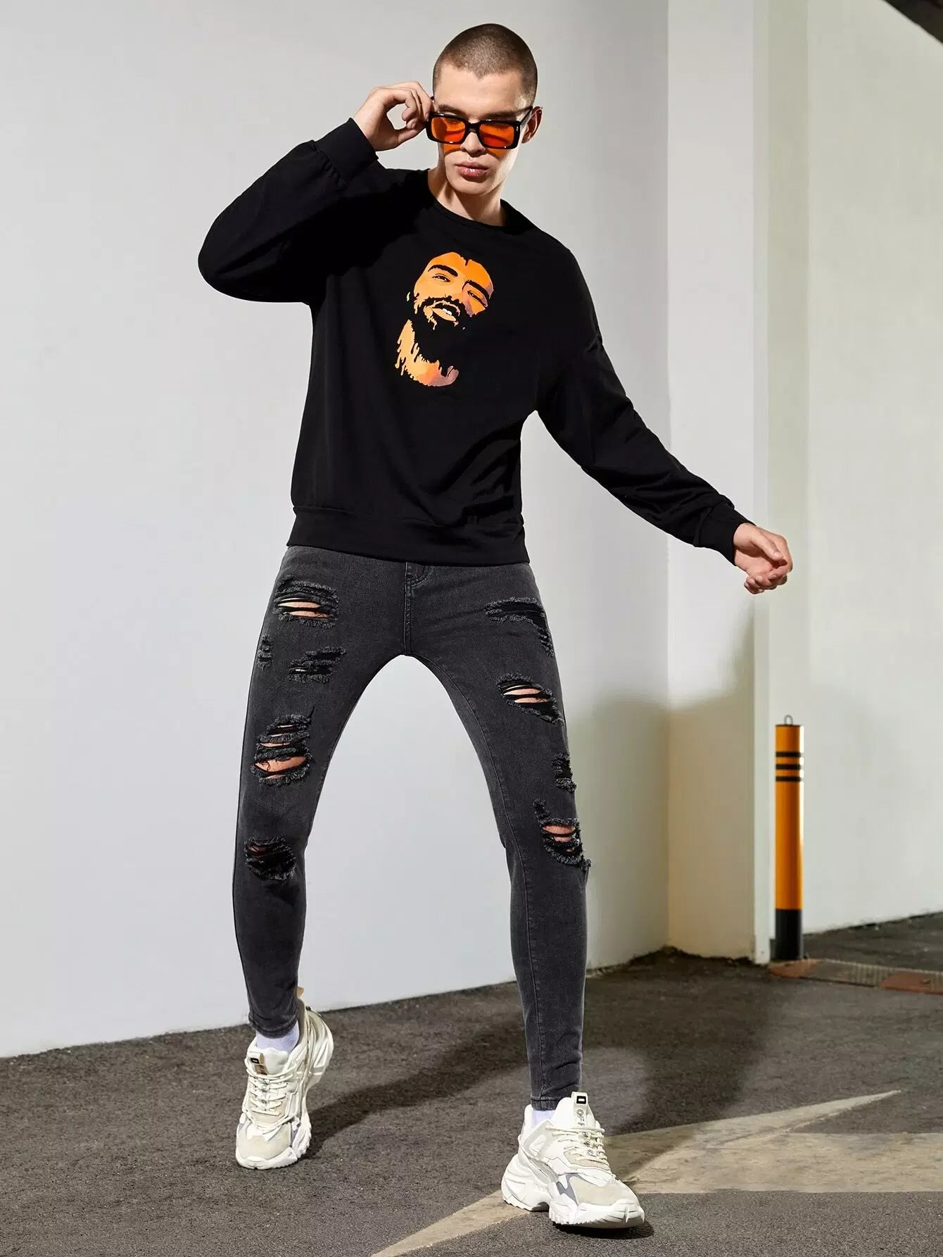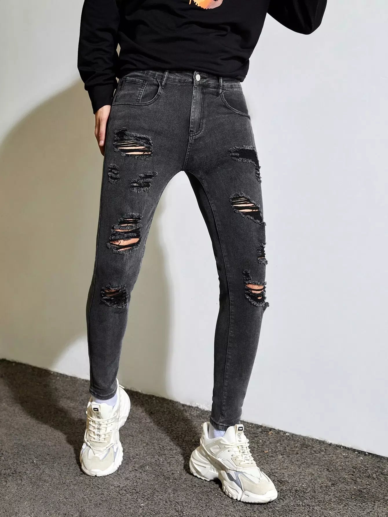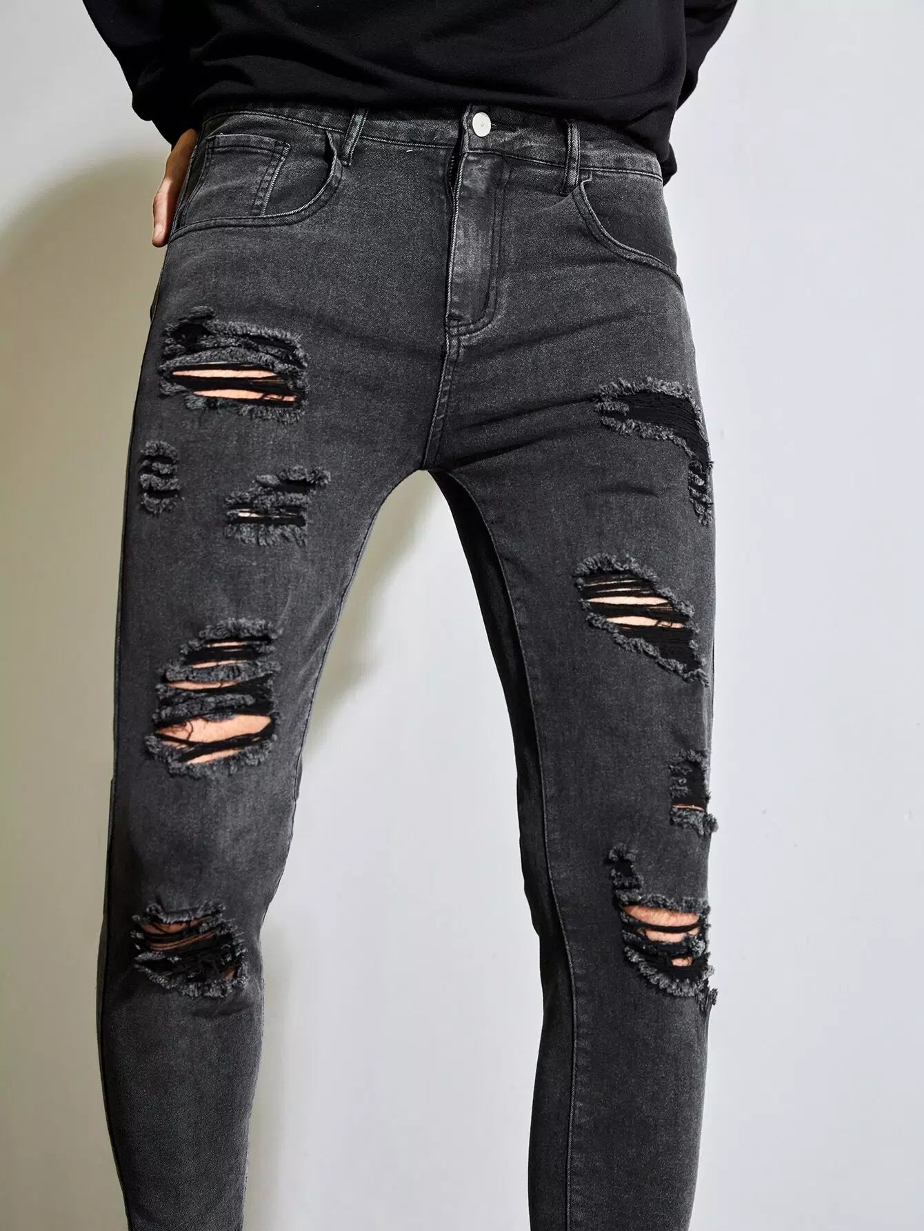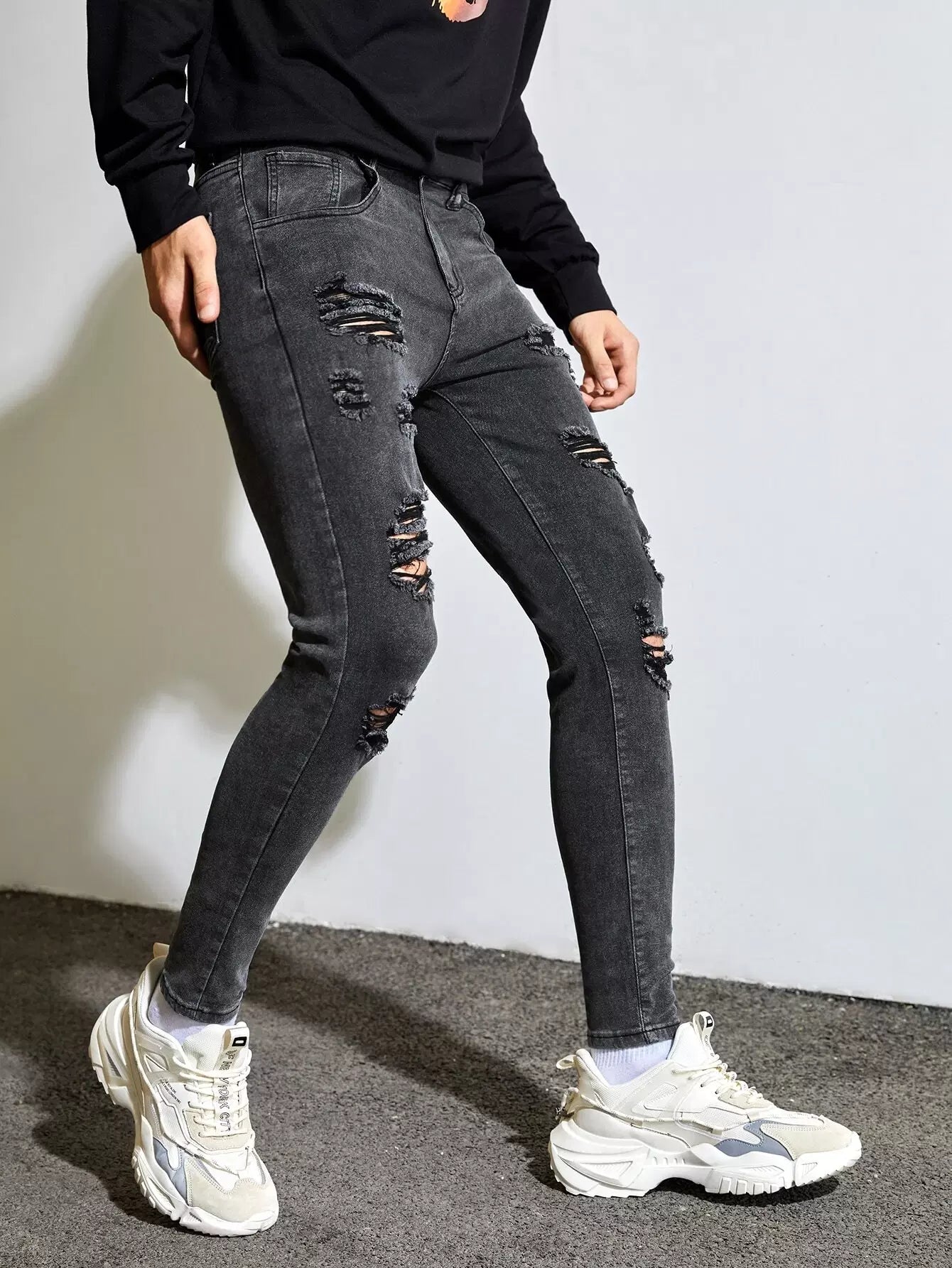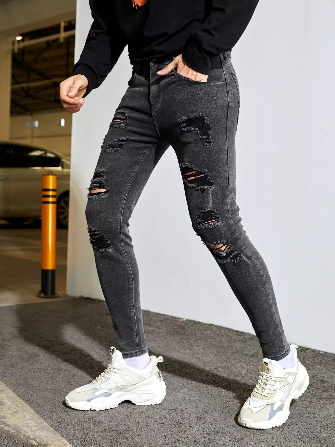 جينز جينز رجالي سكيني ممزق ومكشوط للرجال