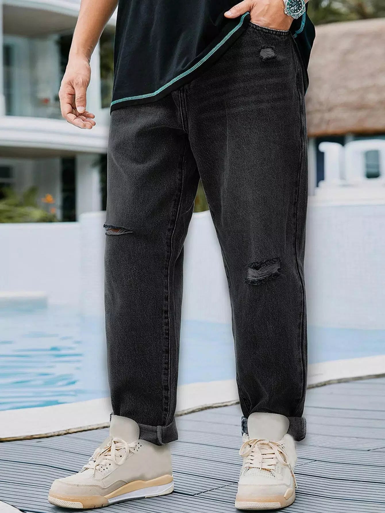 بنطلون جينز رجالي ممزق ومشقق ومخرم