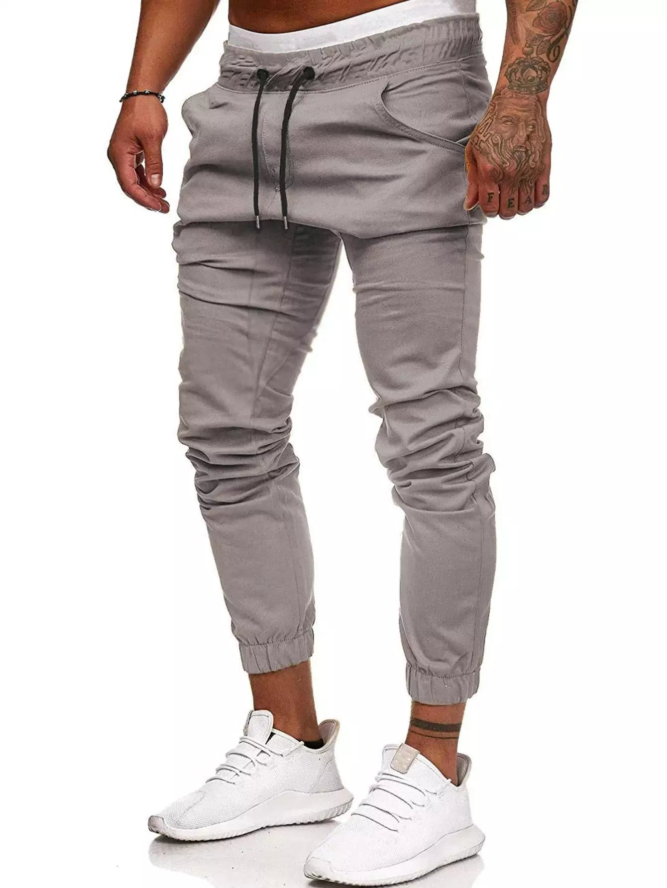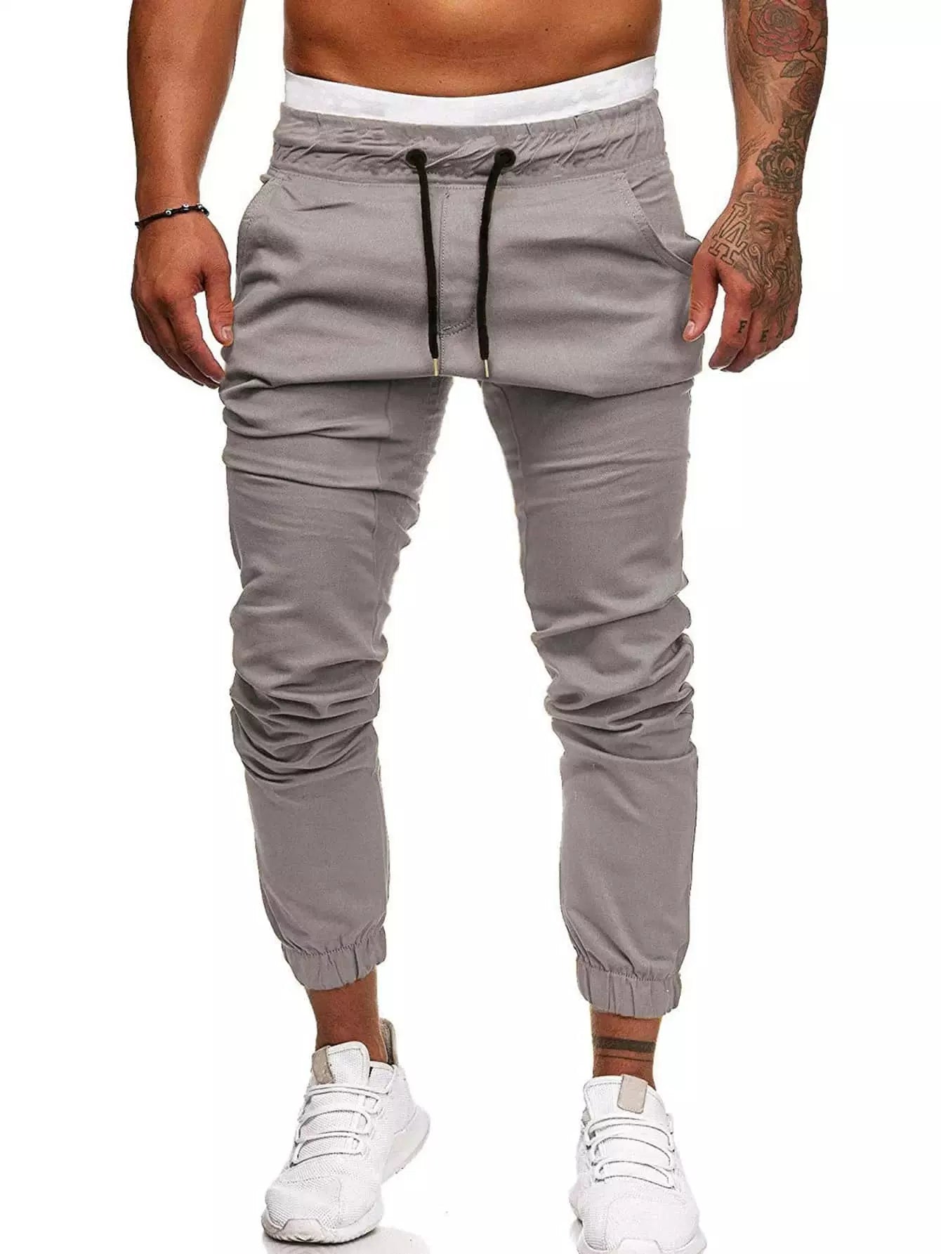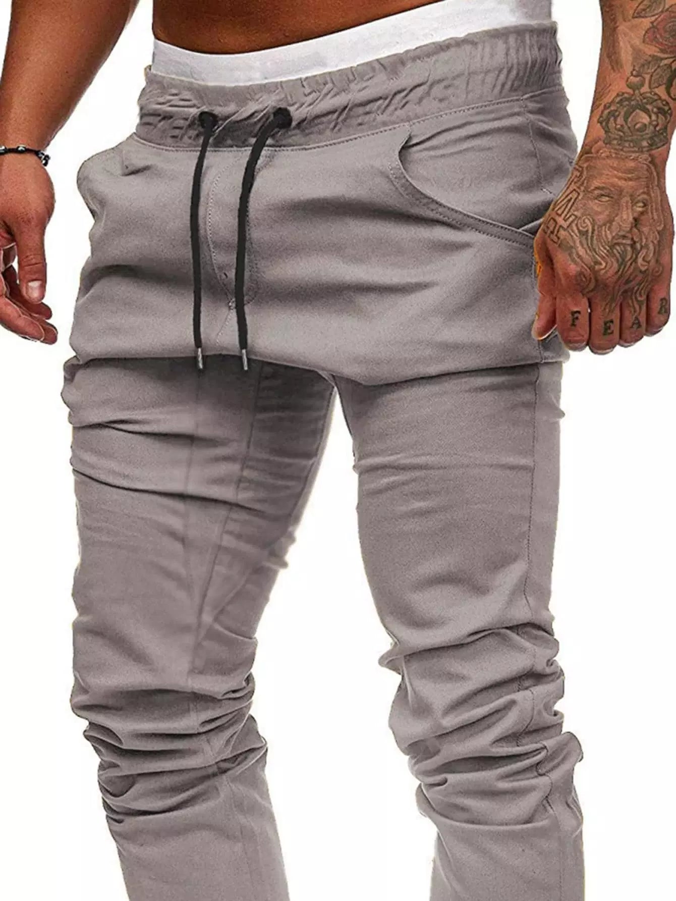 بنطلون رجالي مائل بجيب مائل برباط خصر ضيق للرجال