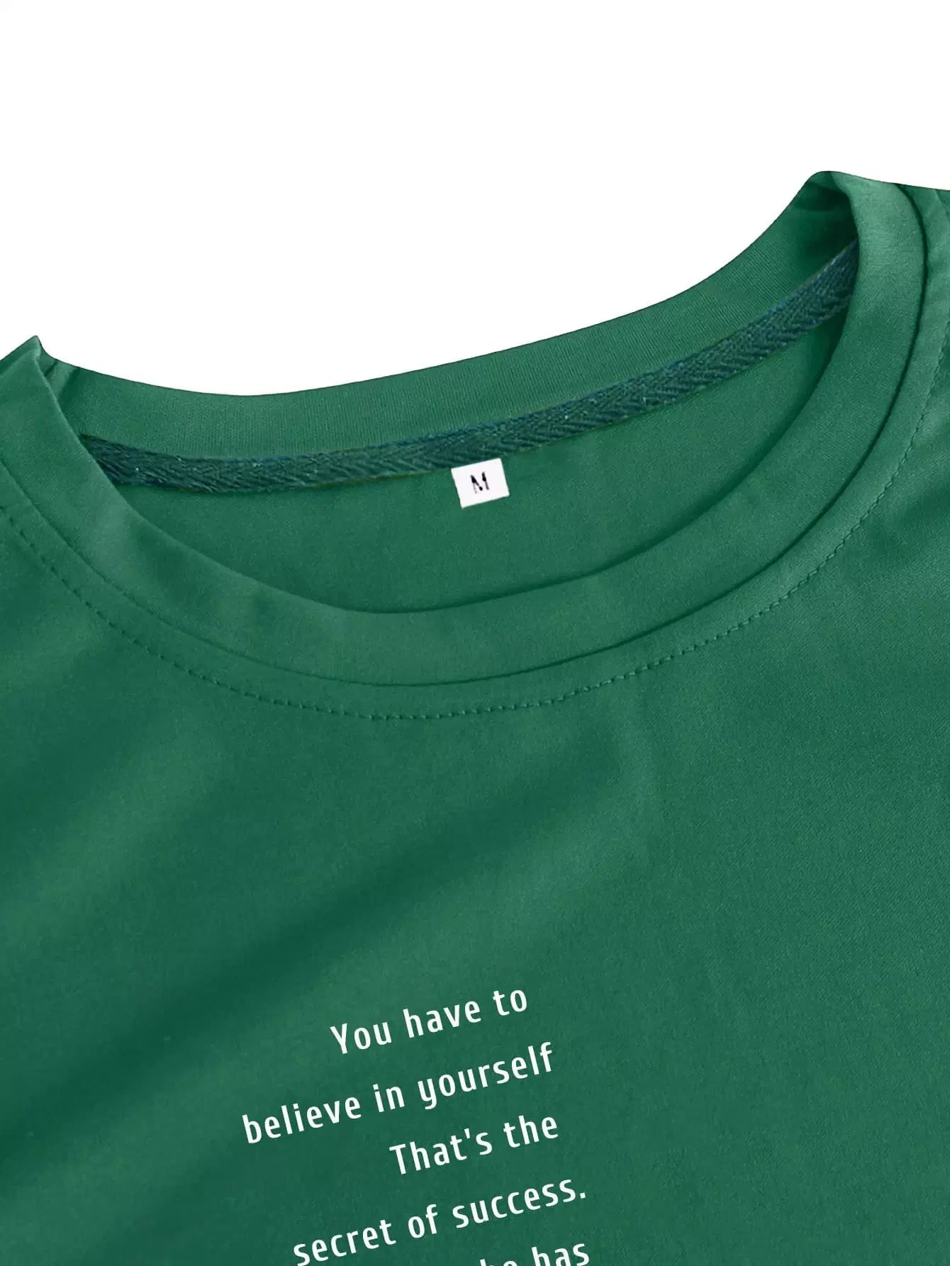 تيشيرت برقبة دائرية بقصّة مستديرة ذات شعار وشكل رجالي