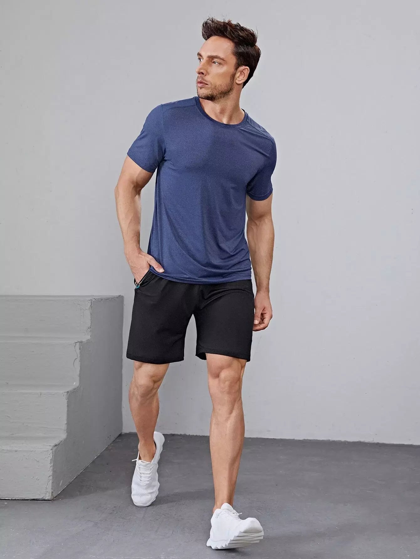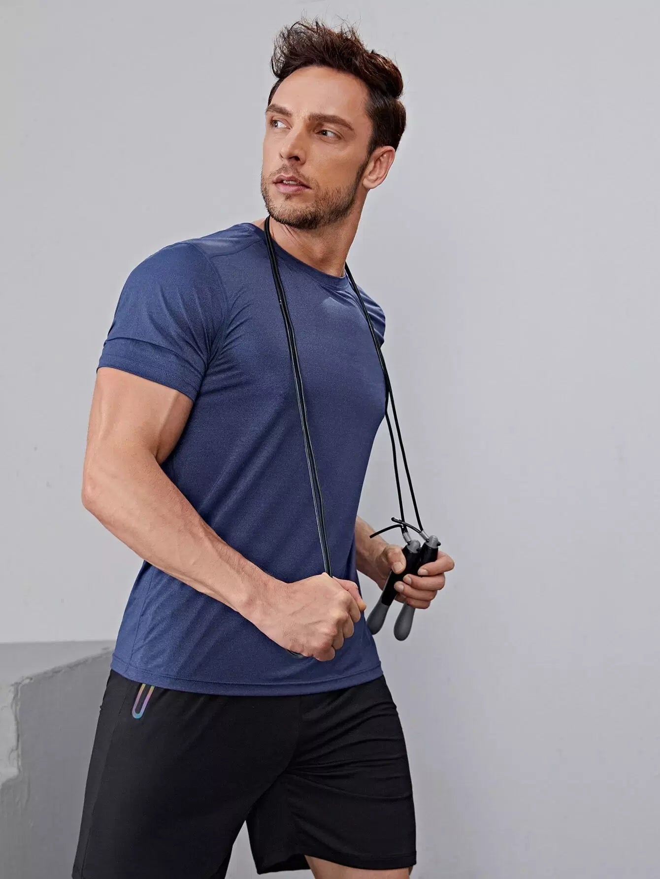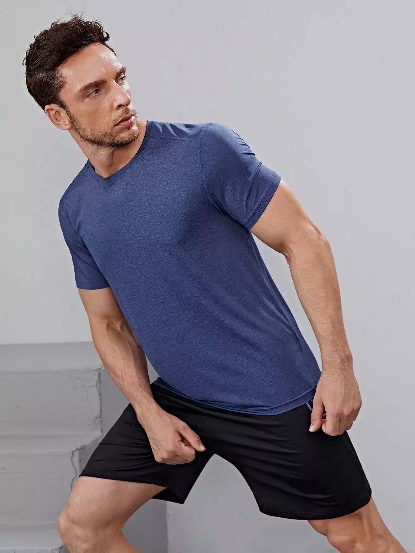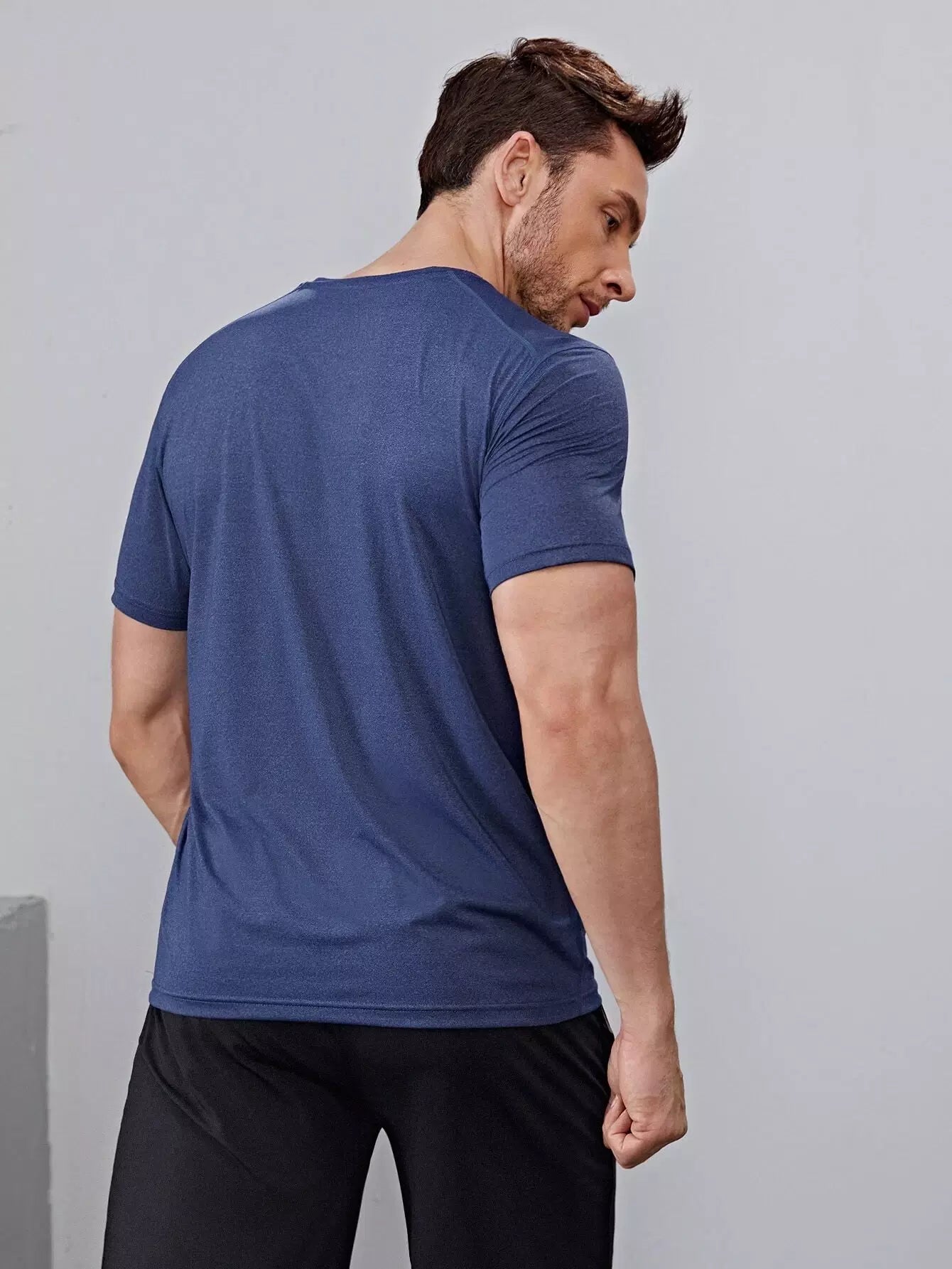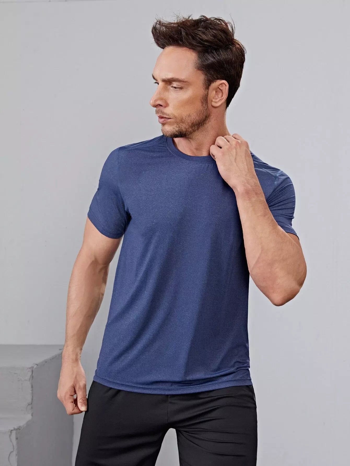 تي شيرت رياضي سادة برقبة دائرية للرجال