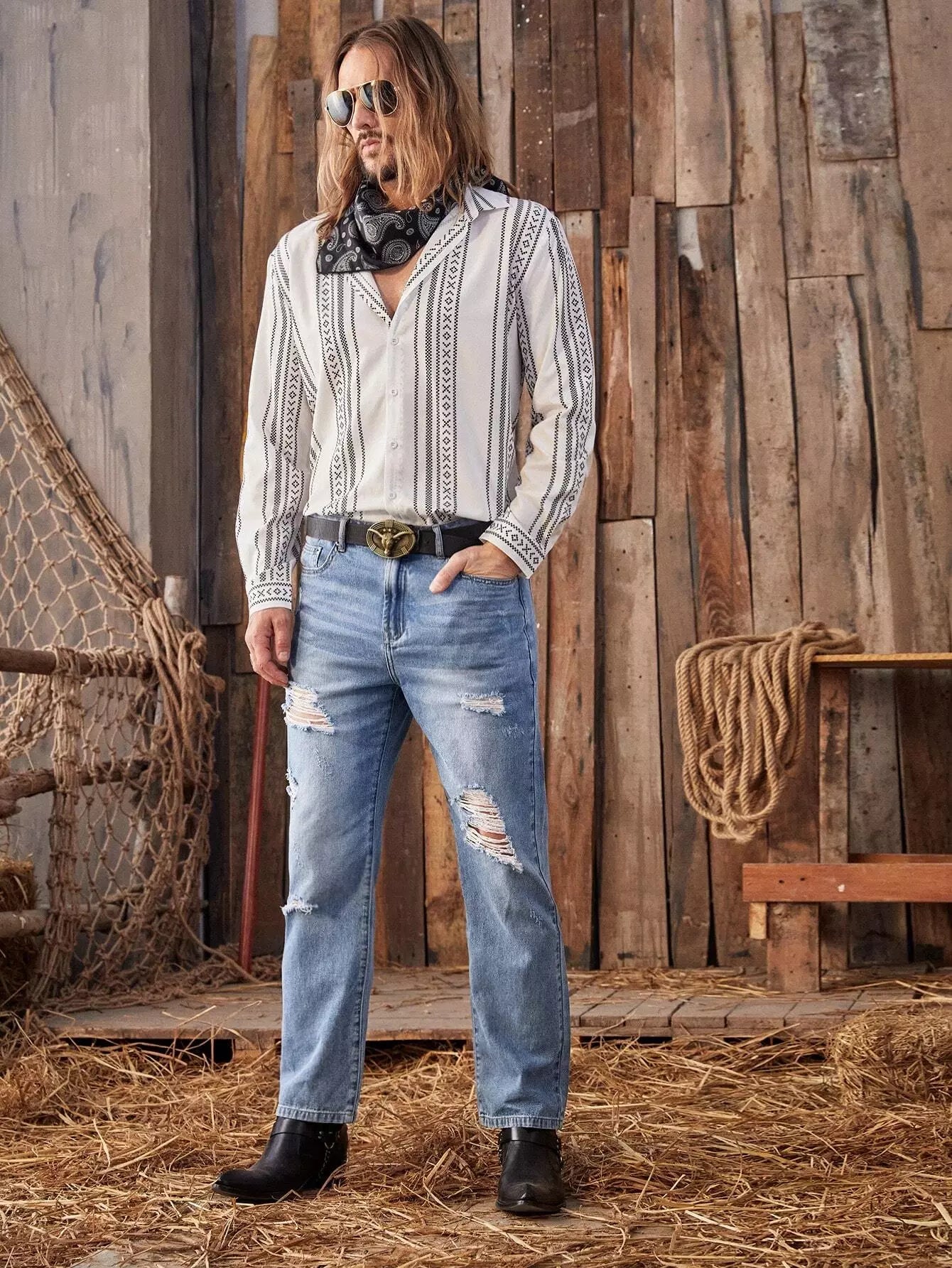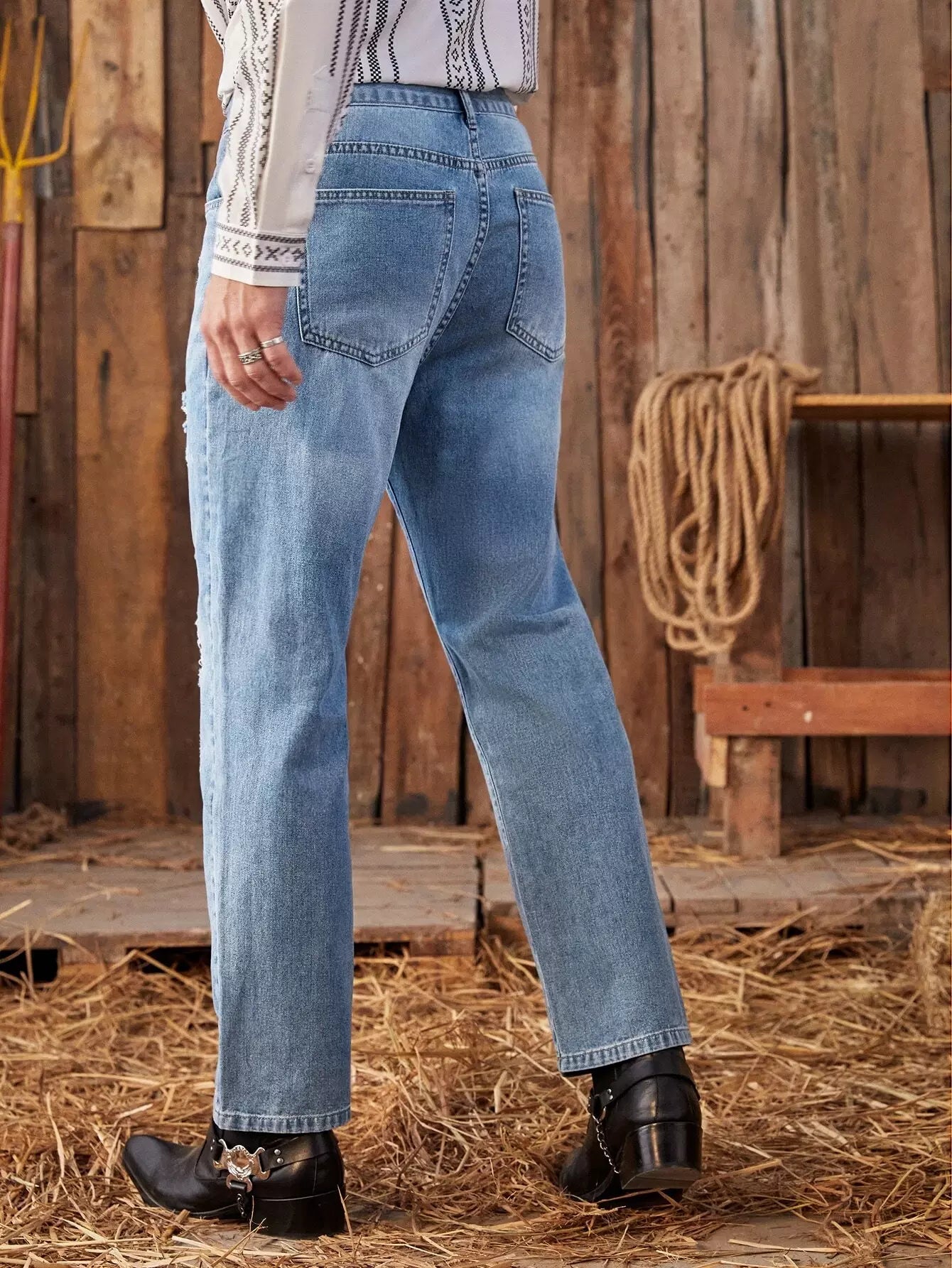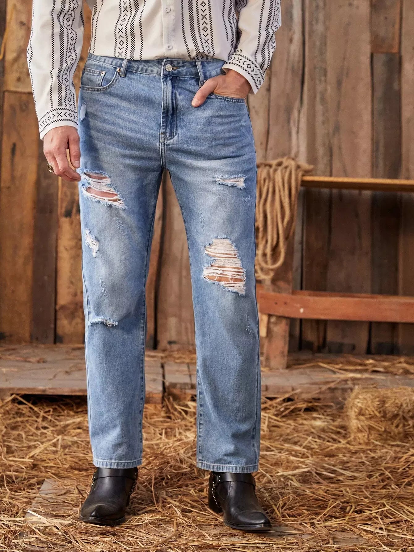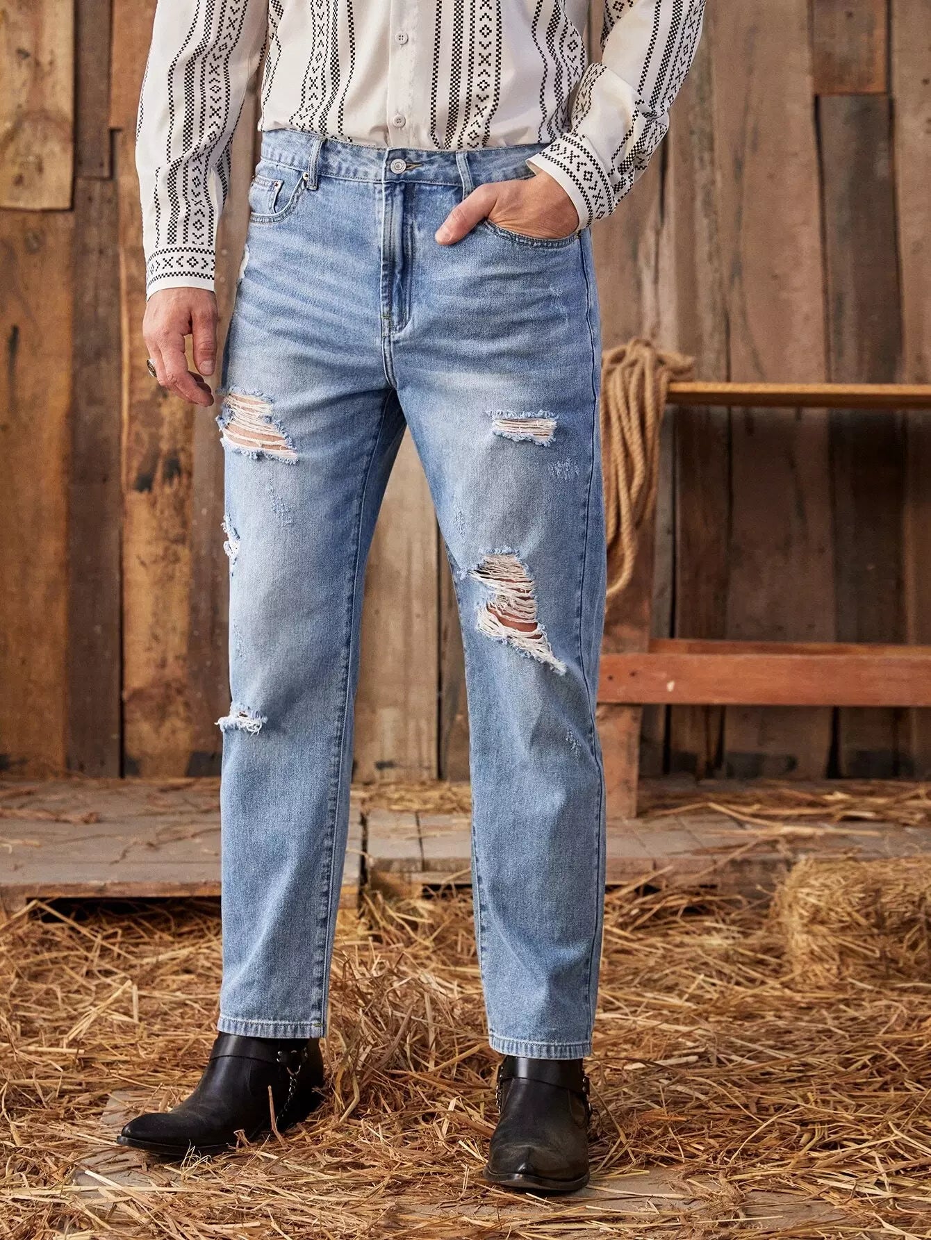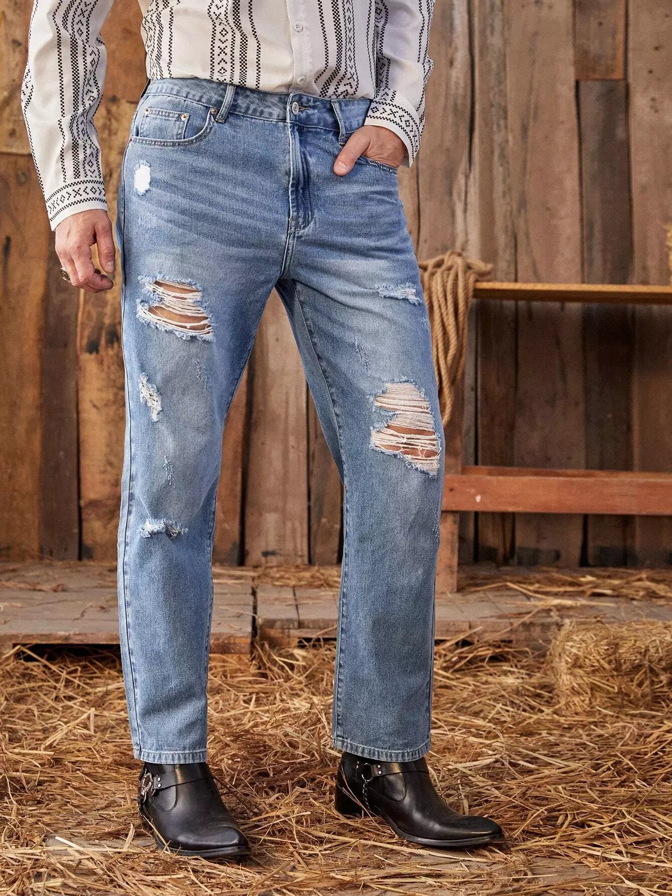 جينز جينز رجالي ممزق بمغسول حجري