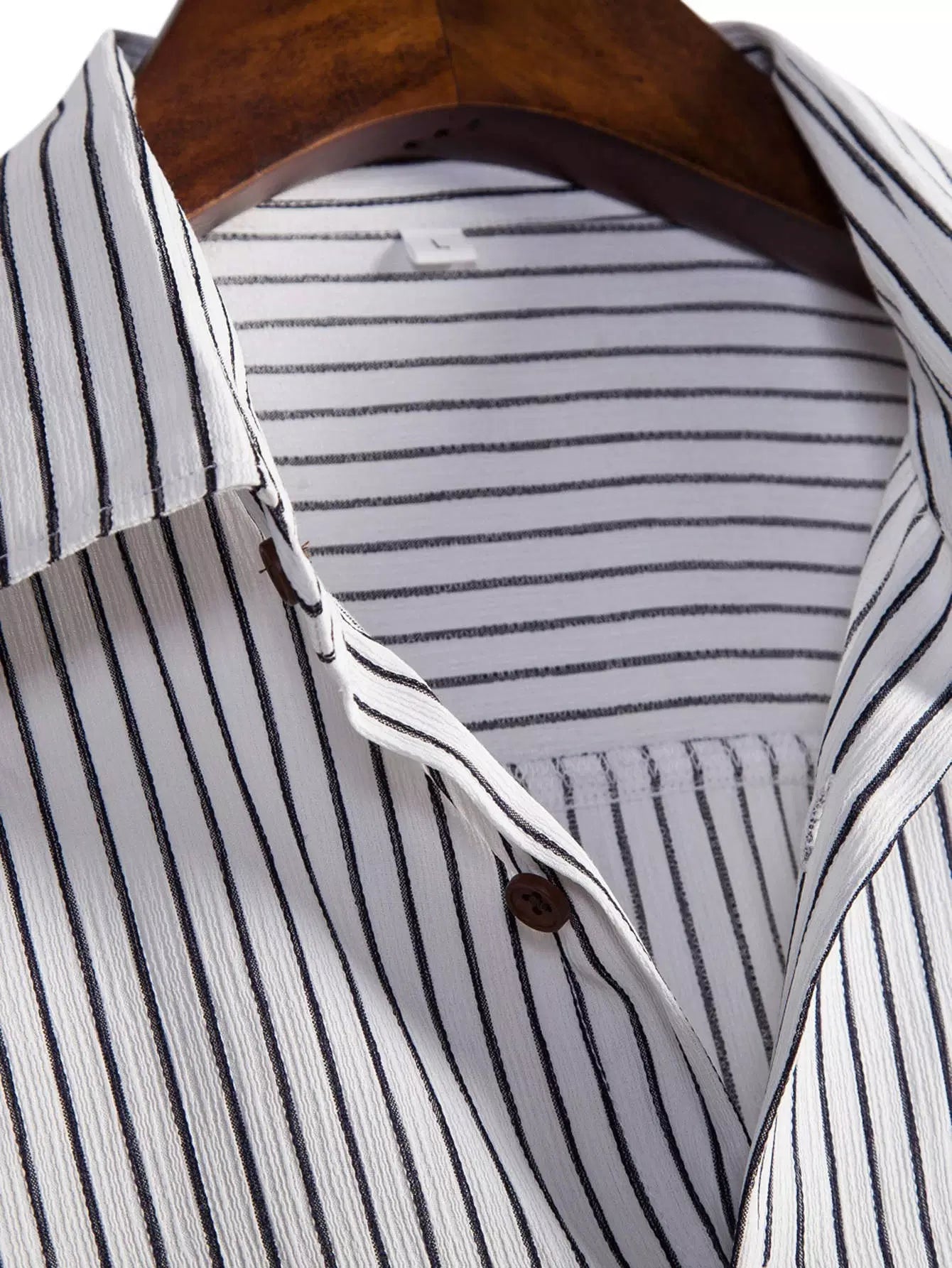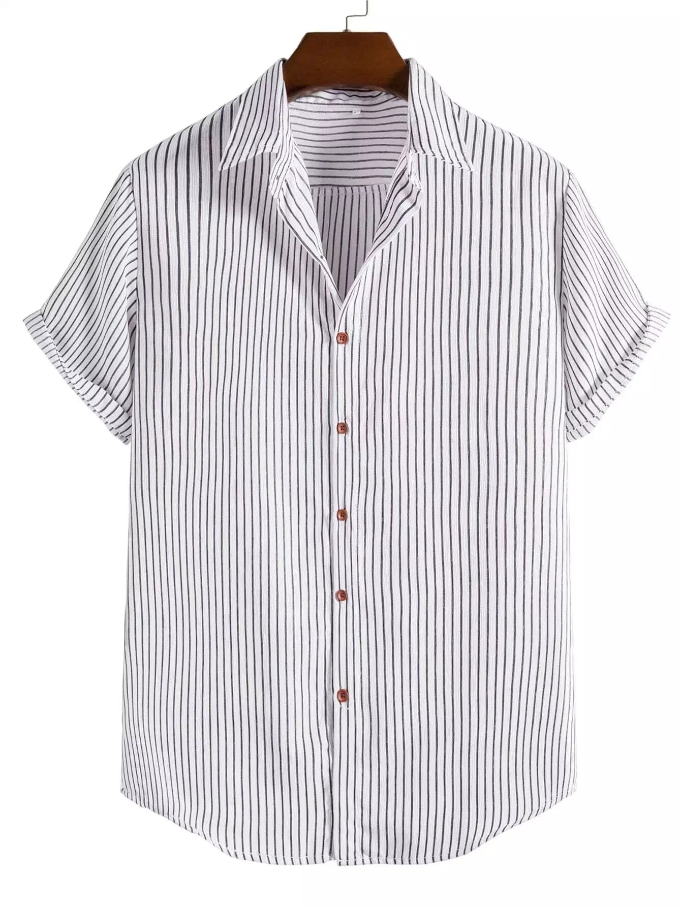 قميص رجالي مخطط بأزرار من خلال أزرار