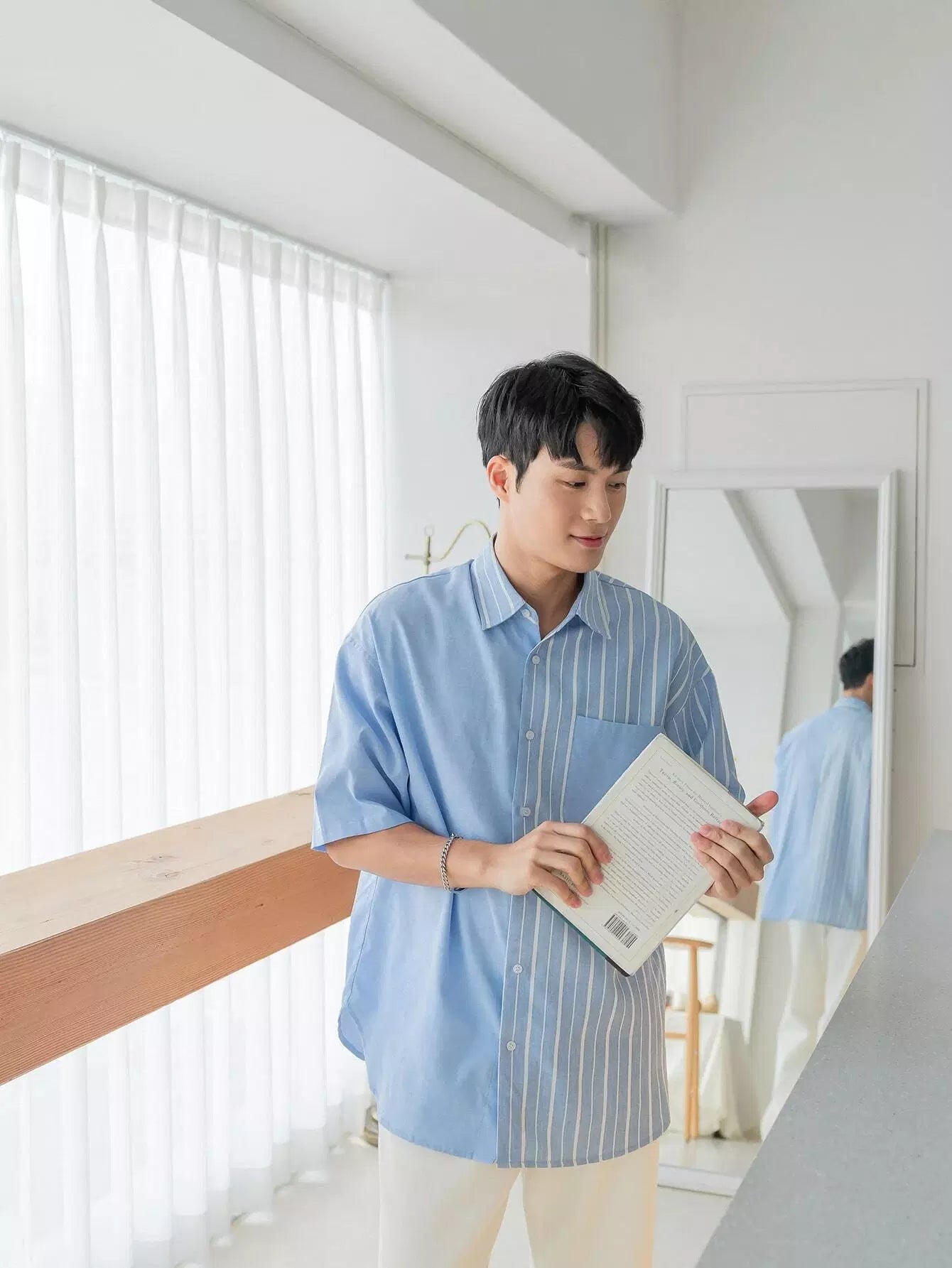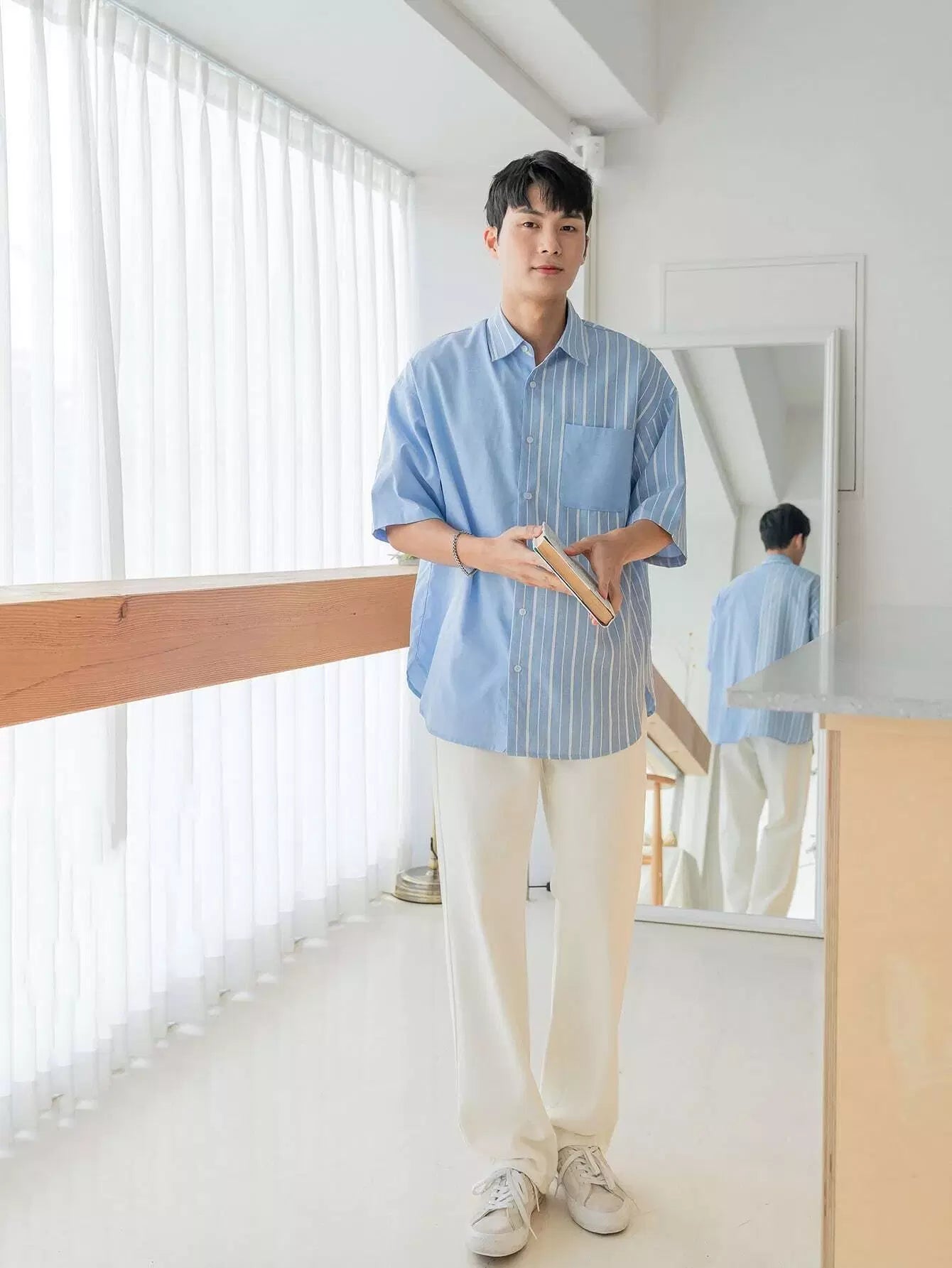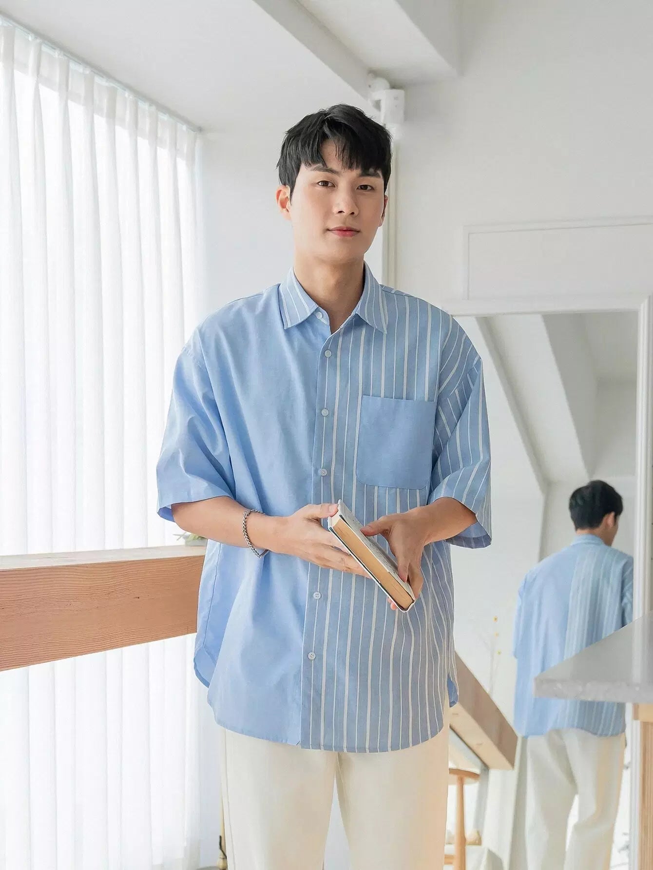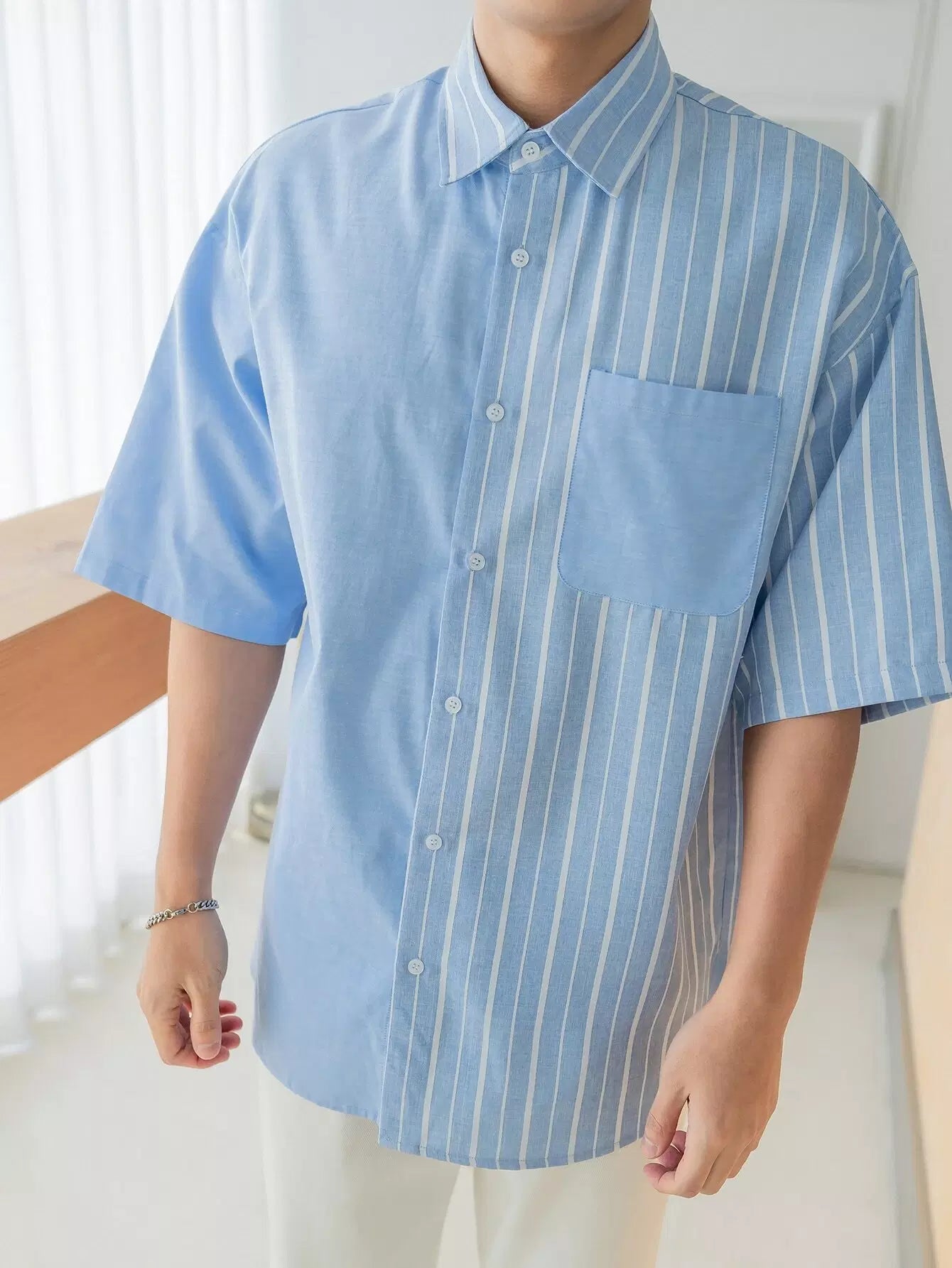 قميص رجالي مخطط بأزرار من خلال أزرار