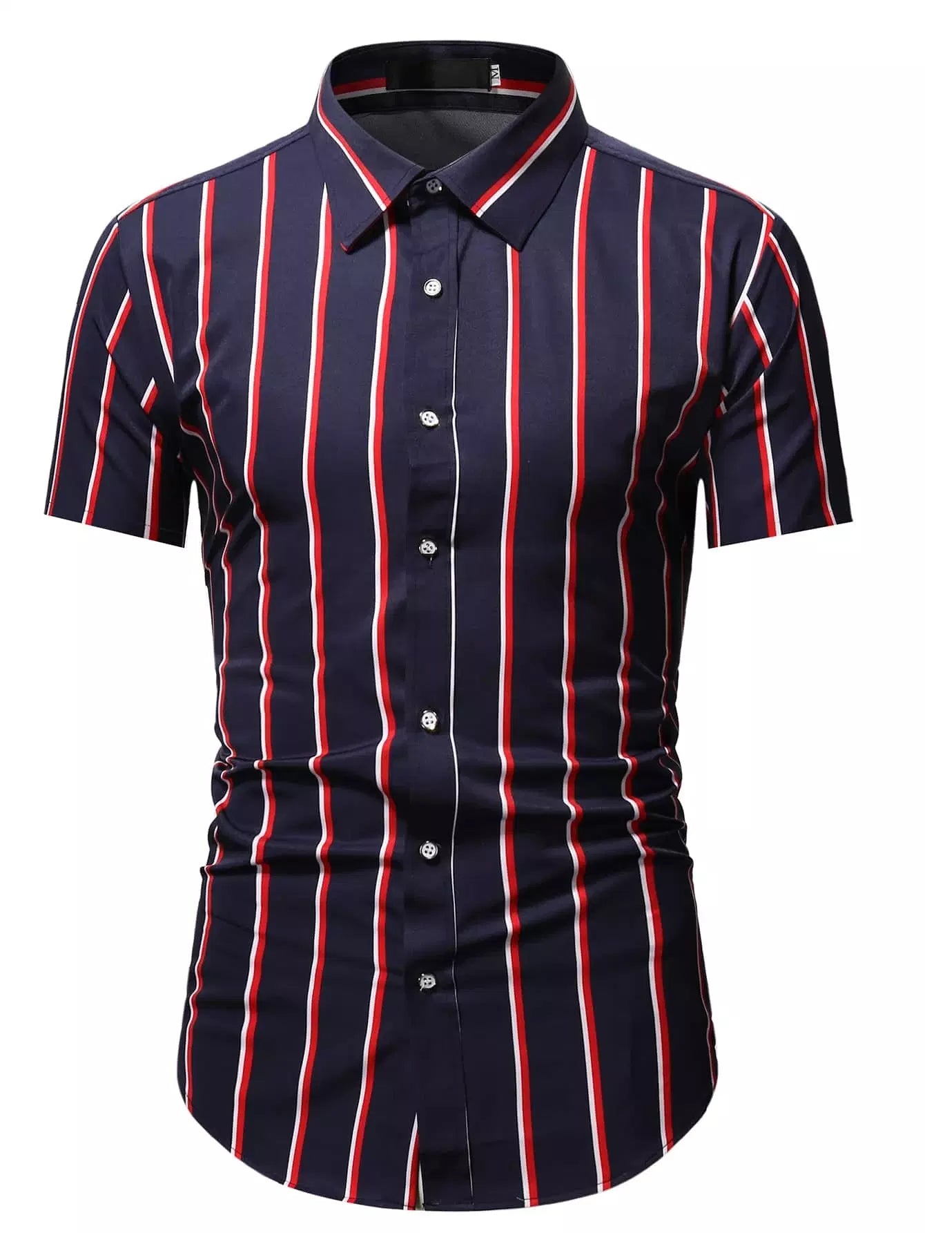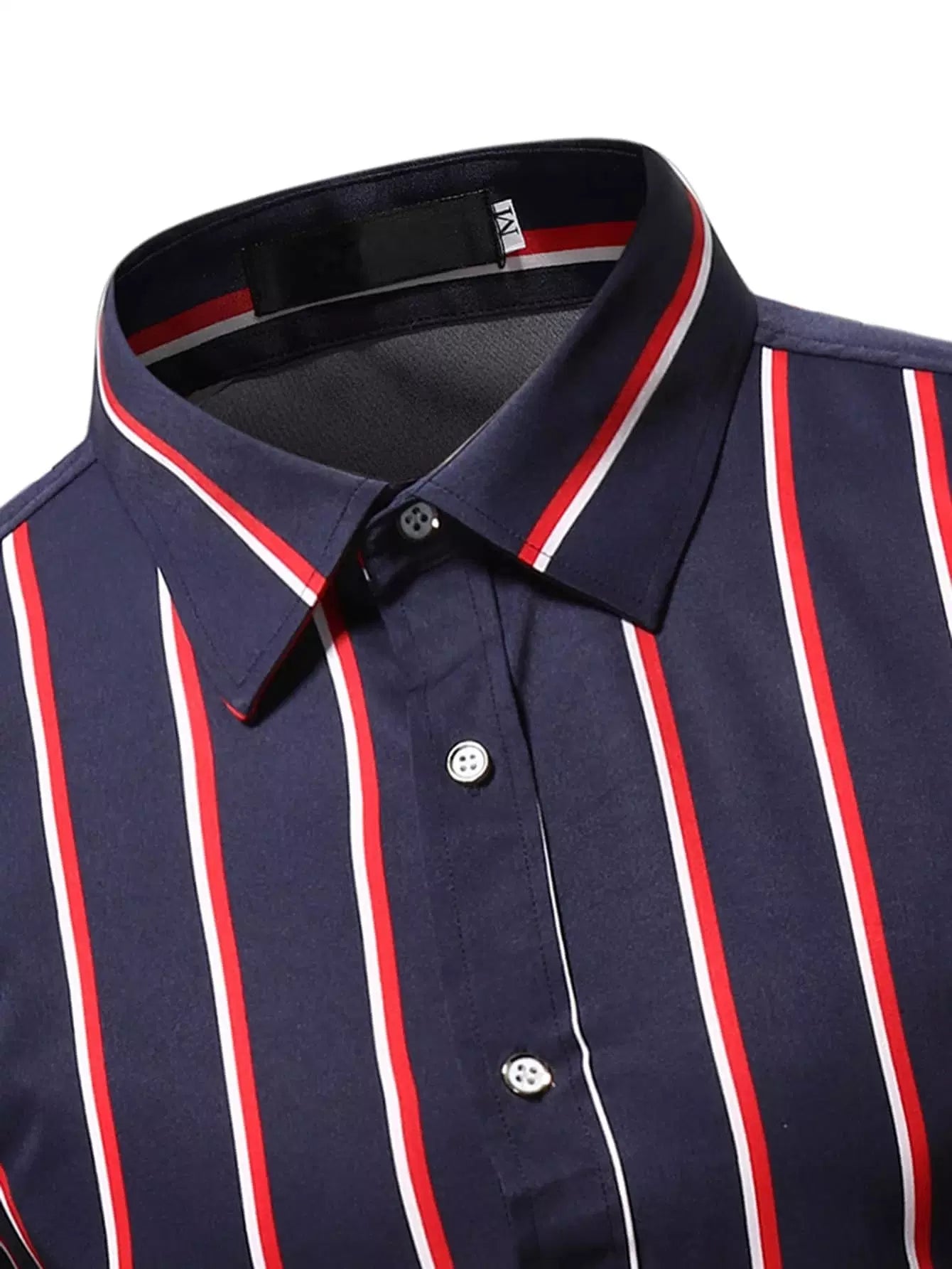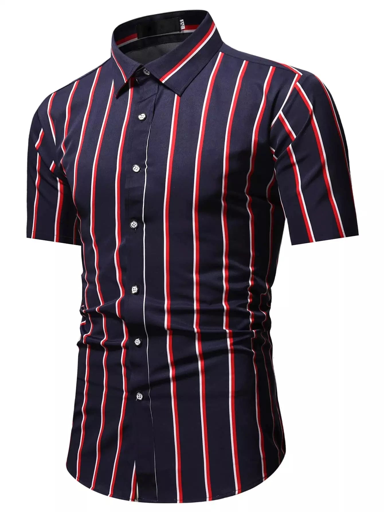 قميص رجالي مخطط بأزرار من خلال أزرار