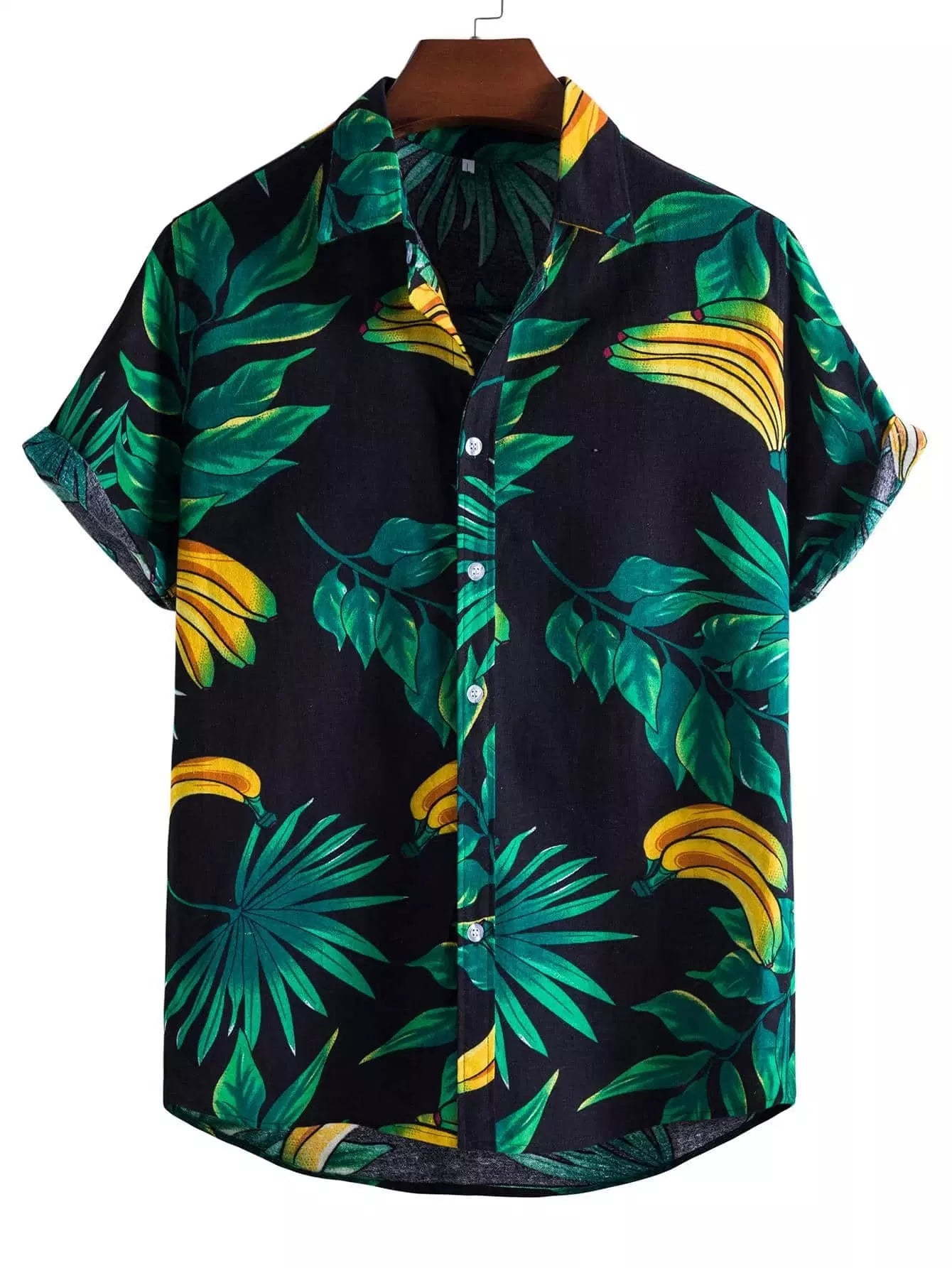 قميص رجالي بطبعة استوائية مطبوع بأزرار أمامية