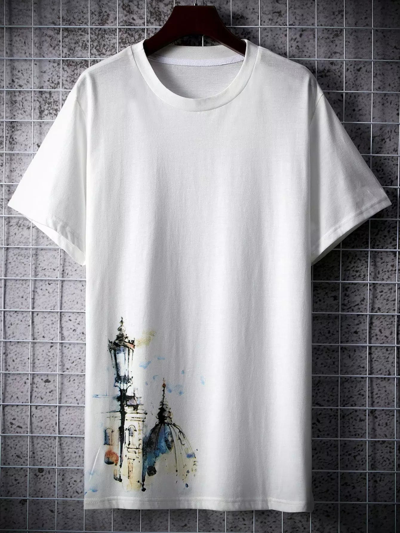 تي شيرت رجالي بطبعة مباني عتيقة