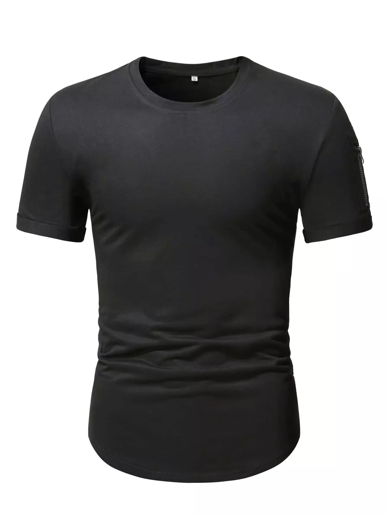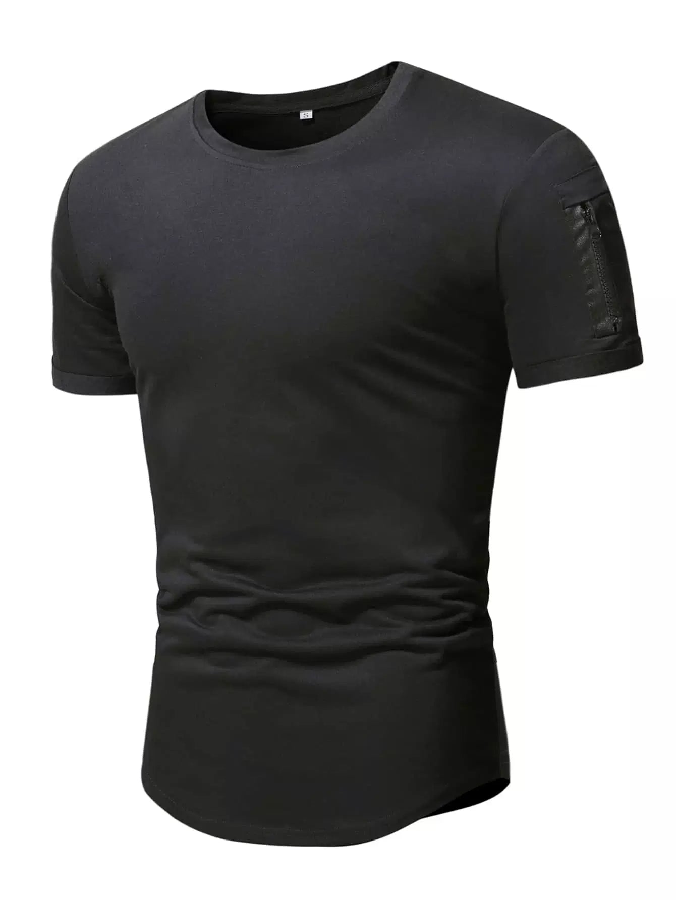 تي شيرت رجالي ذو جيب مفصل بسحاب برقبة مستديرة