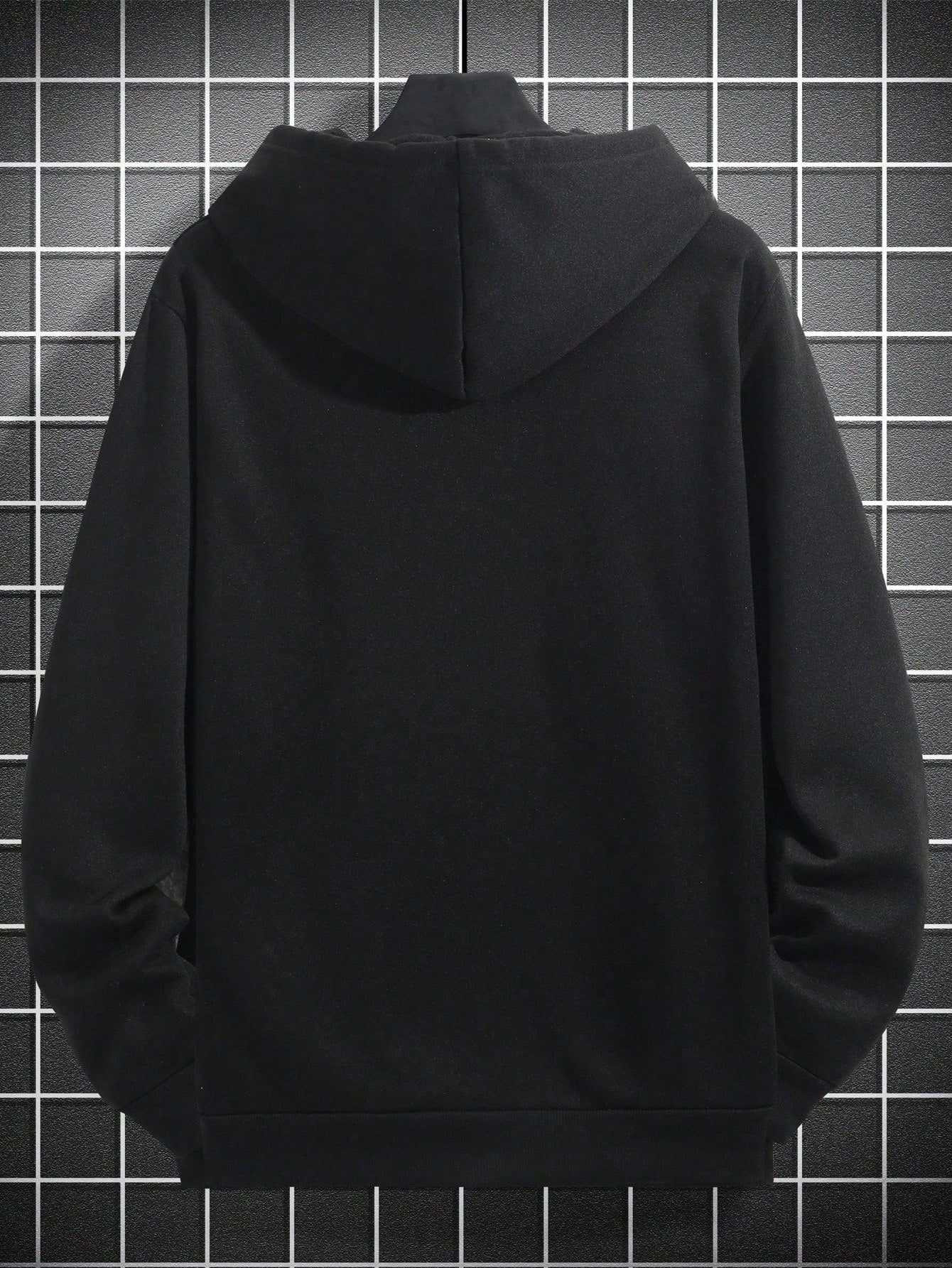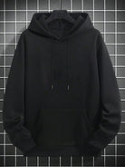 هودي رجالي بلون موحد، بأكمام طويلة وكتف منسدل وجيب برباط، مناسب للإطلالات الكاجوال