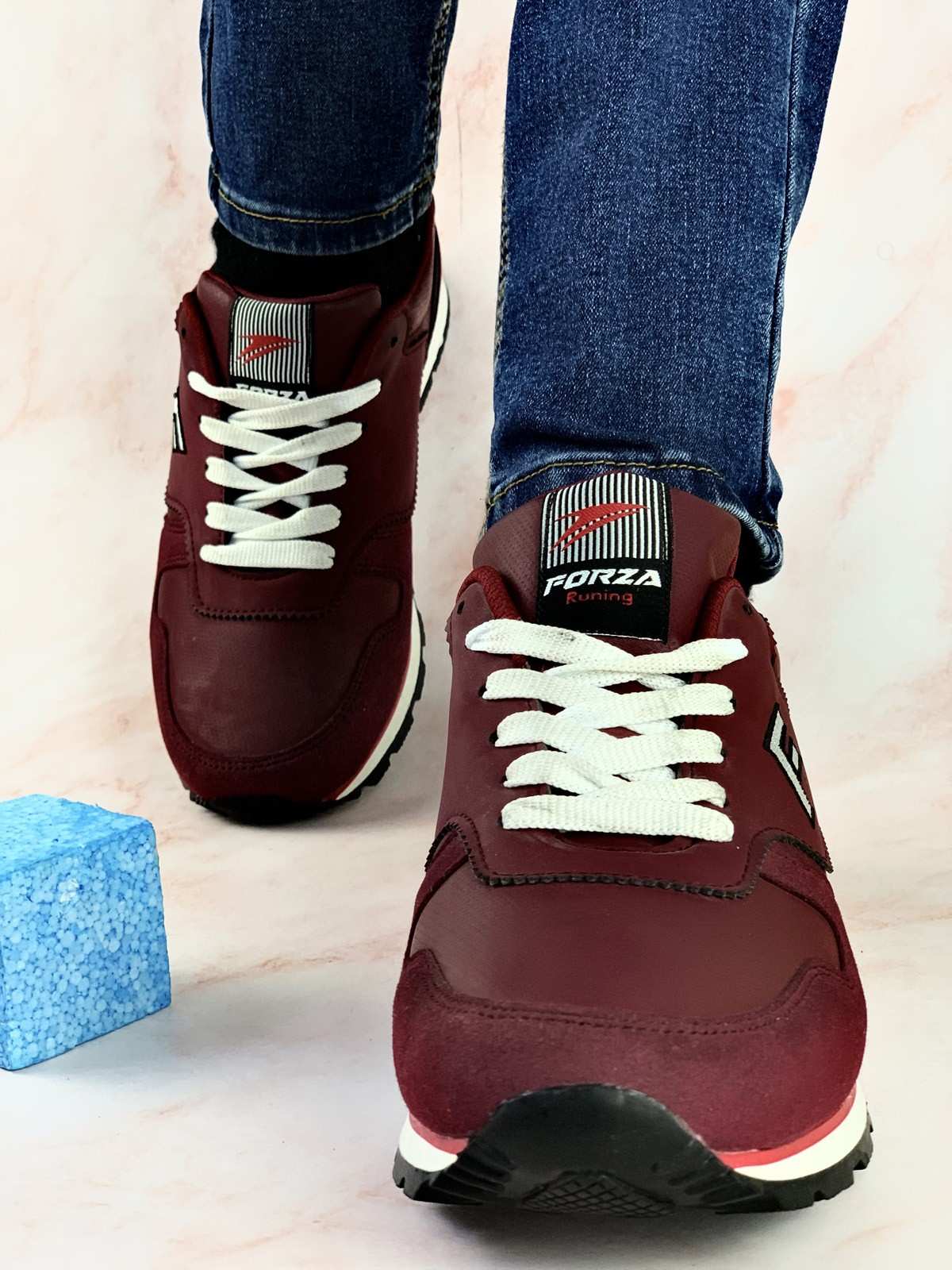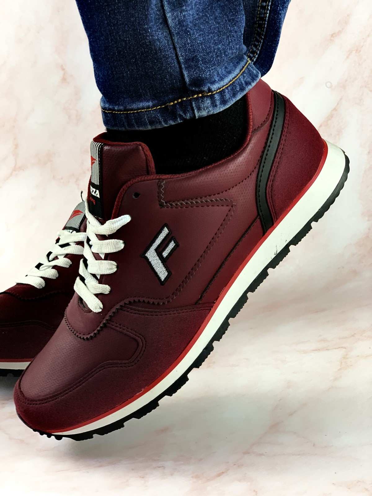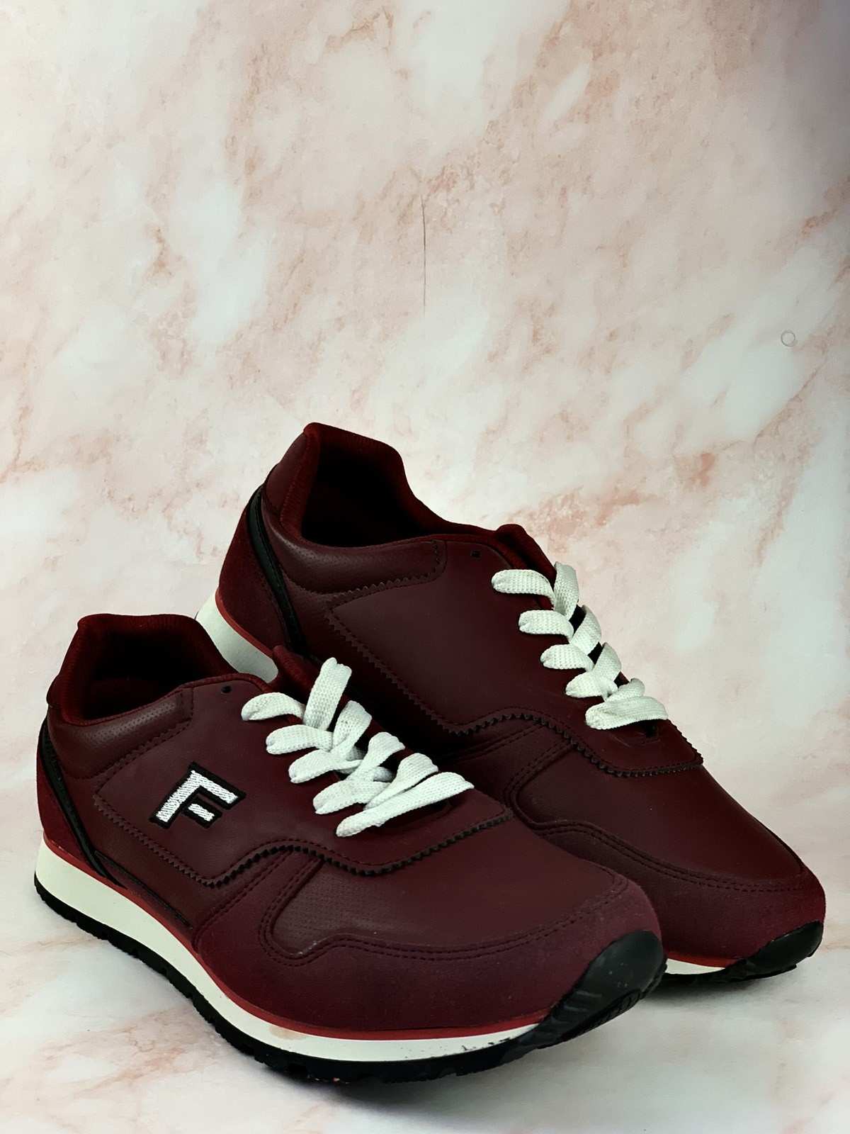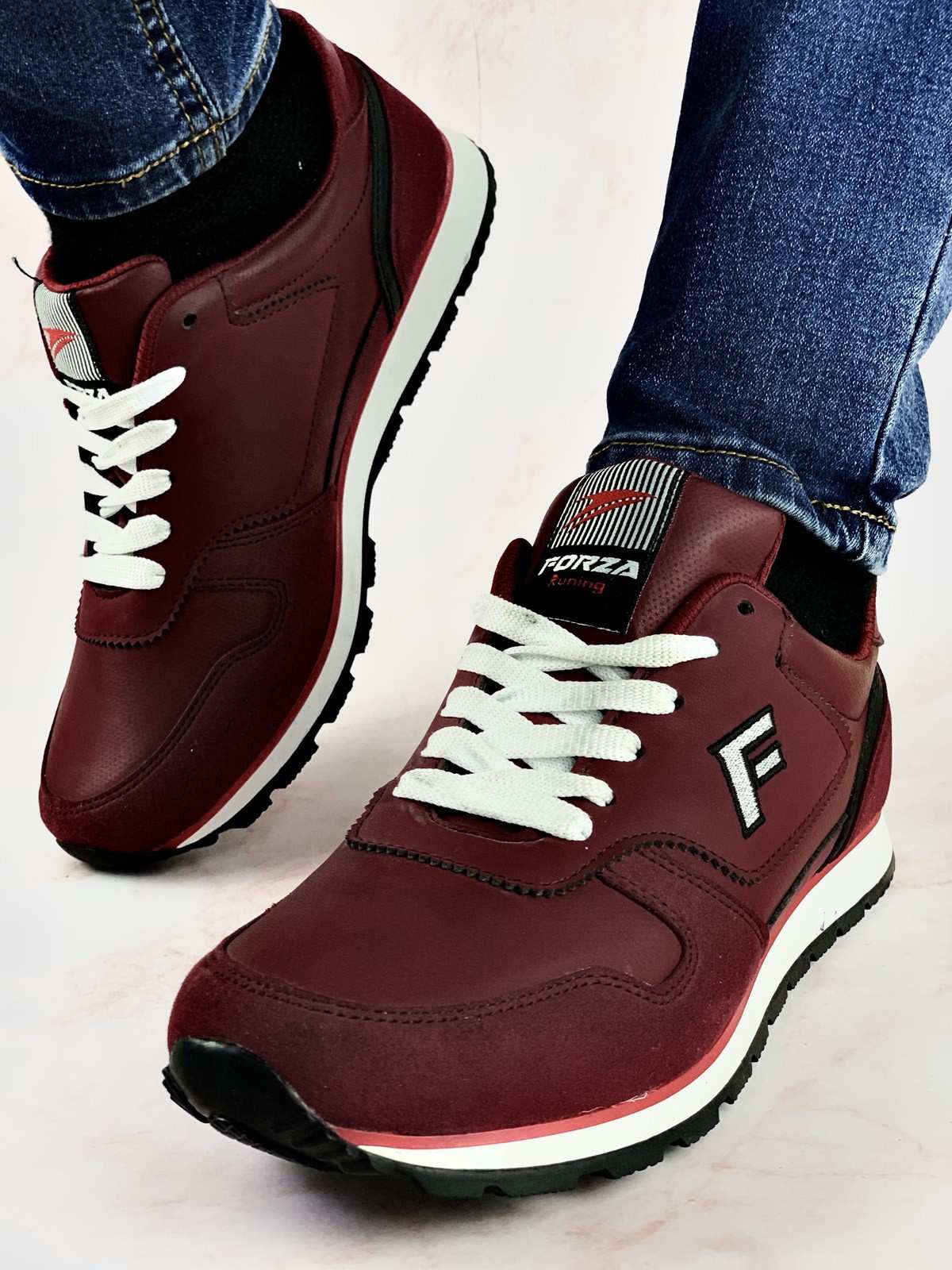 حذاء رياضي رجالي باللون الأحمر الداكن والأبيض والأسود