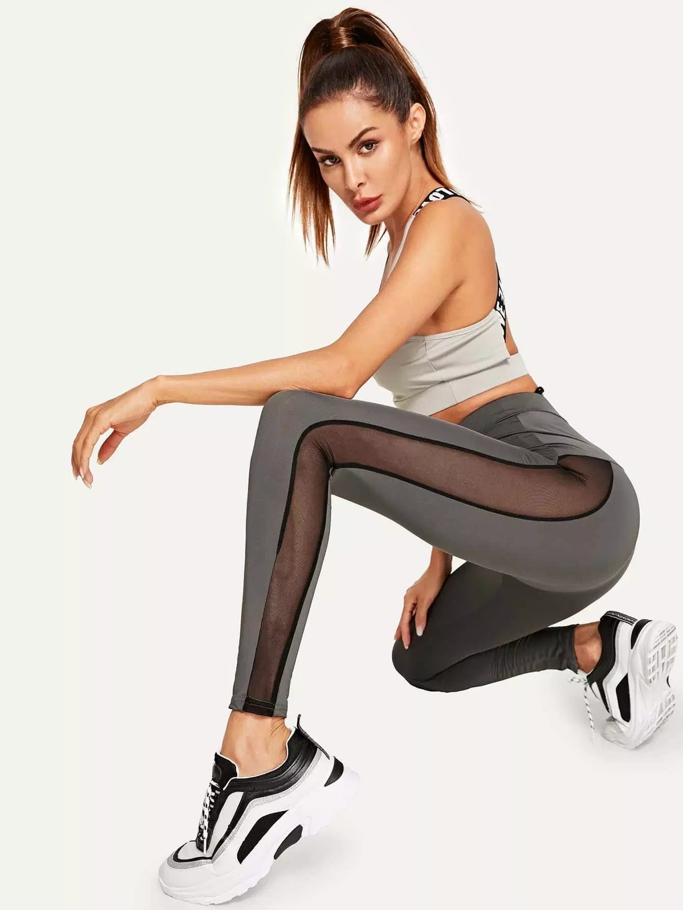 بنطلون ضيق ضيق شبكي داخلي