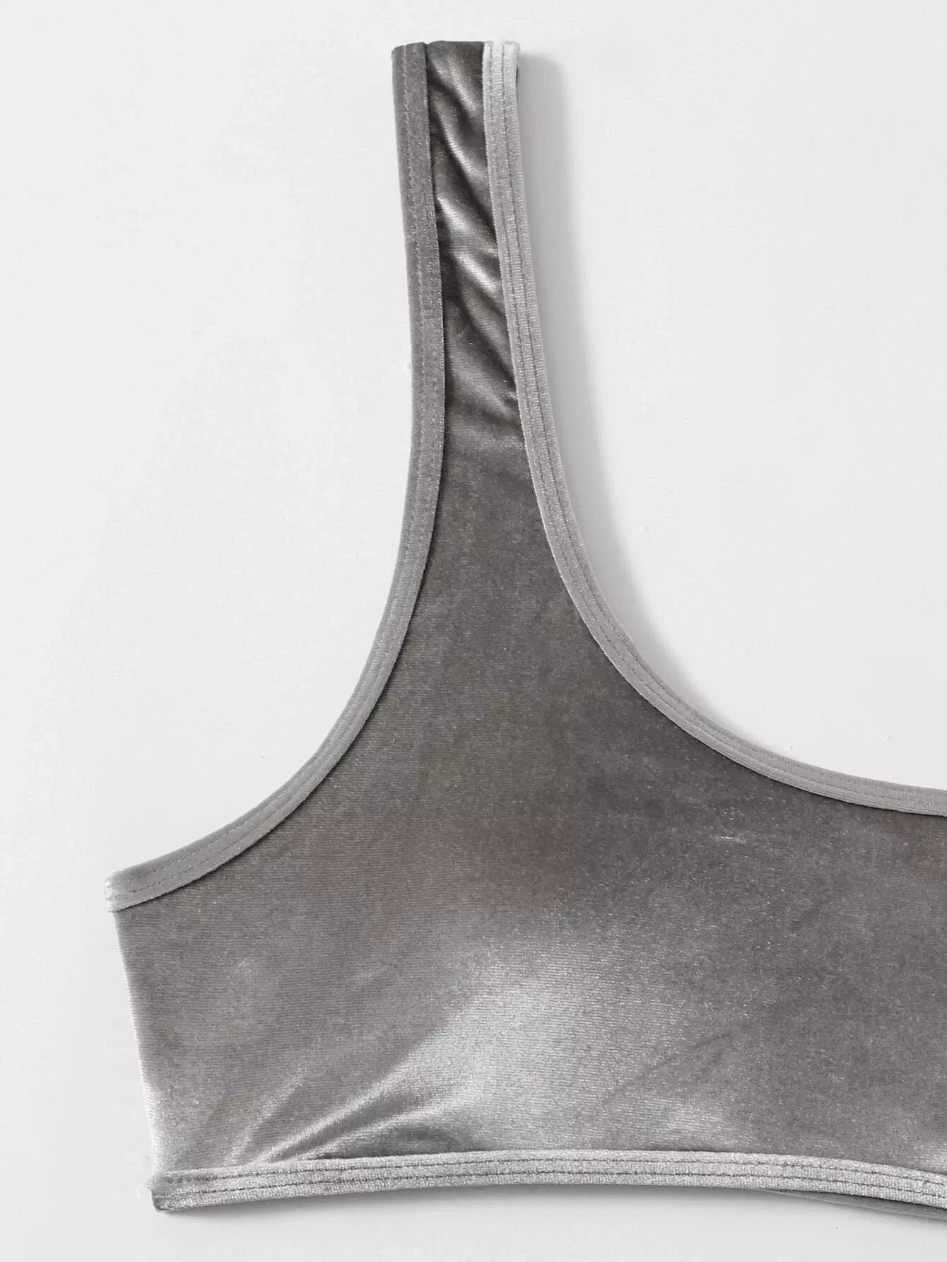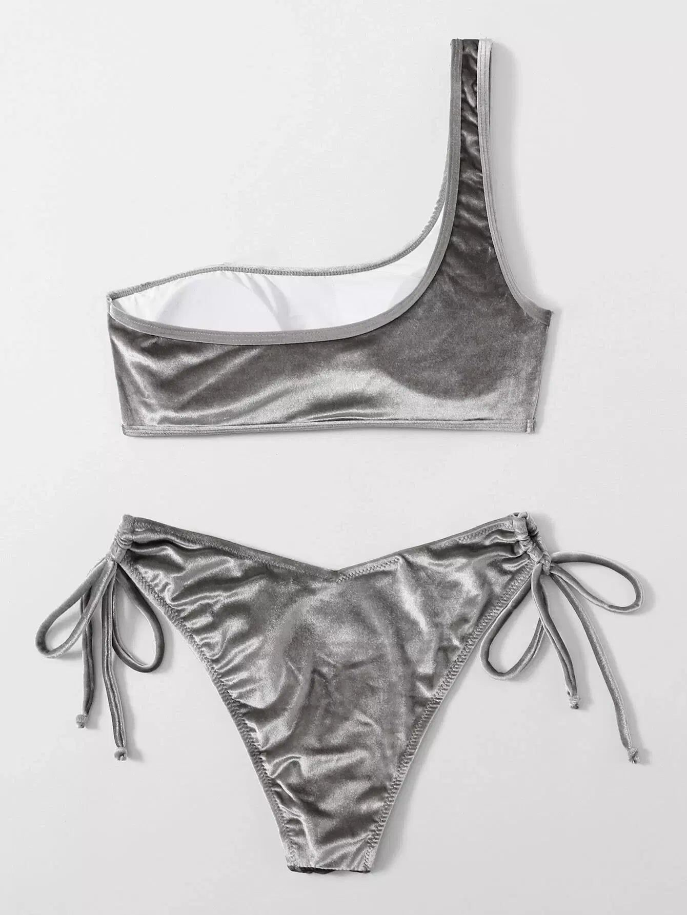 بيكيني سباحة بيكيني بكتف واحد معدني بربطة جانبية