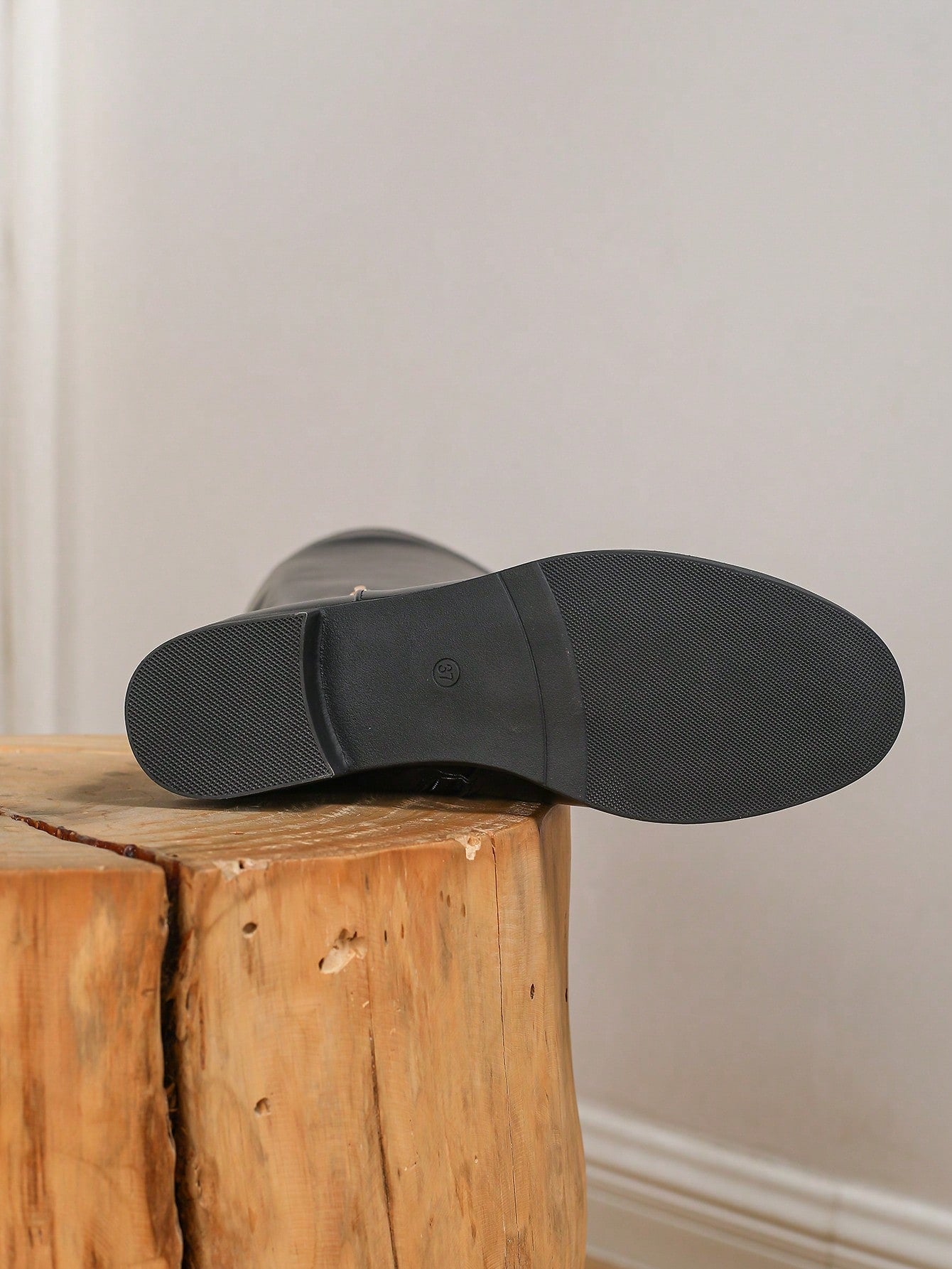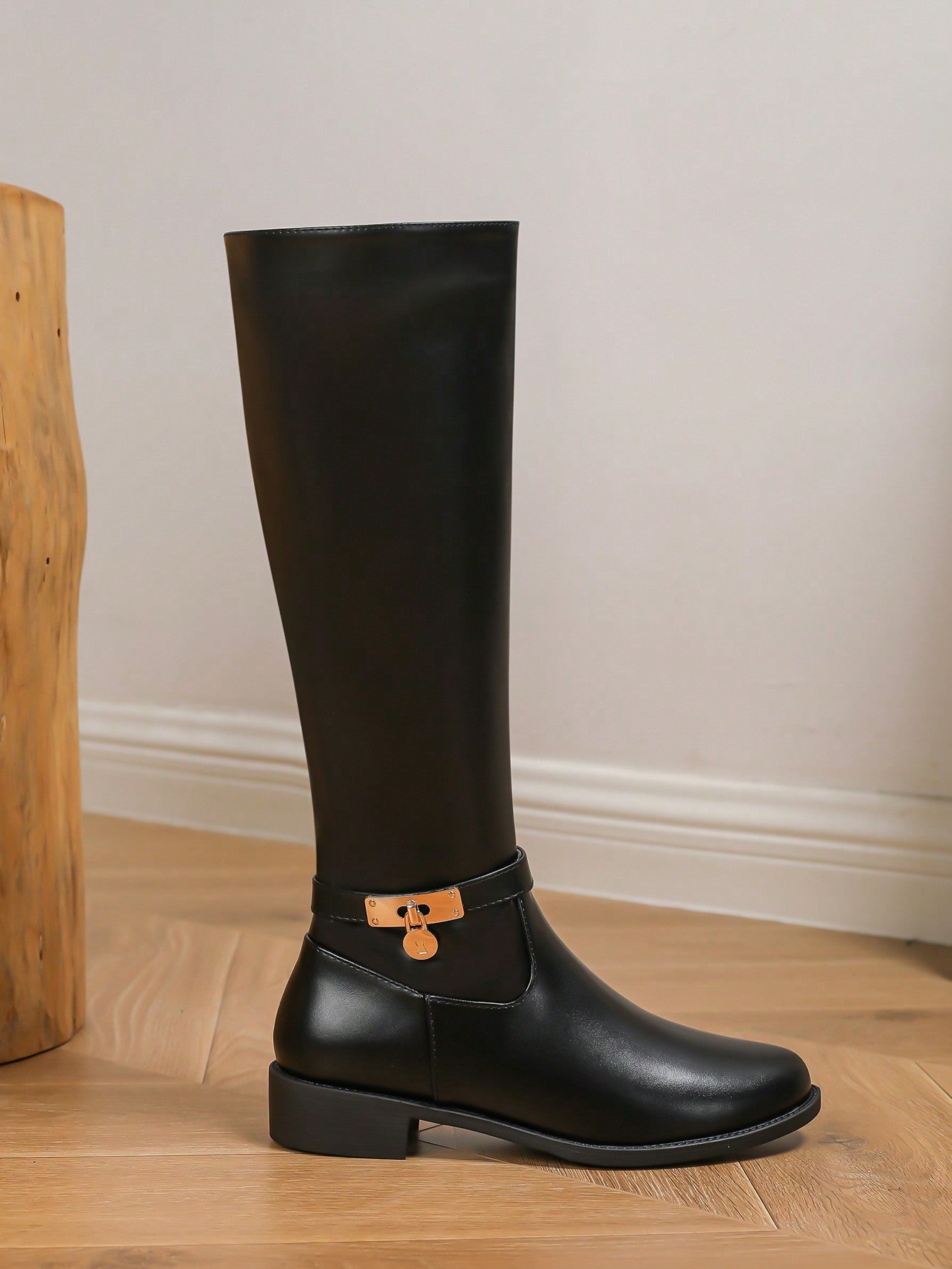 بوت مسطح يصل إلى الركبة بتفاصيل إبزيم بسيطة