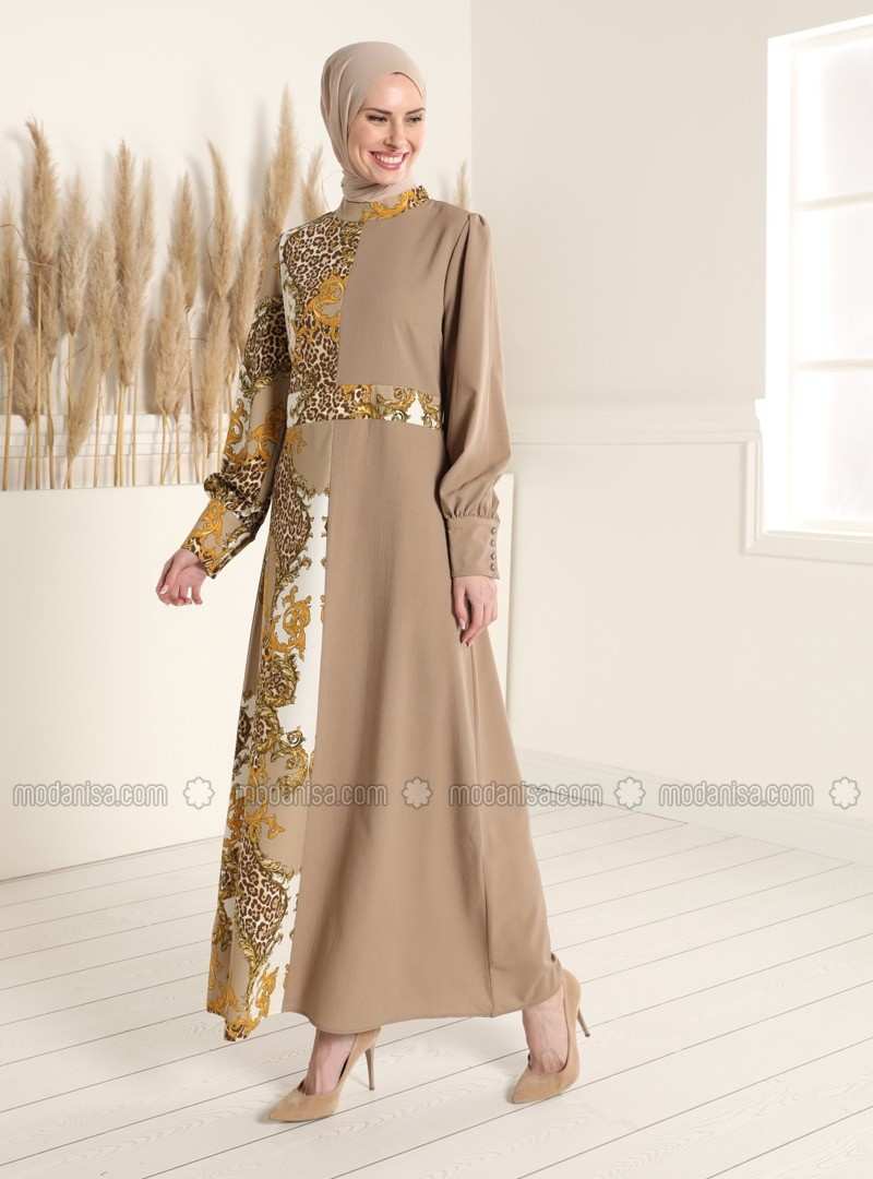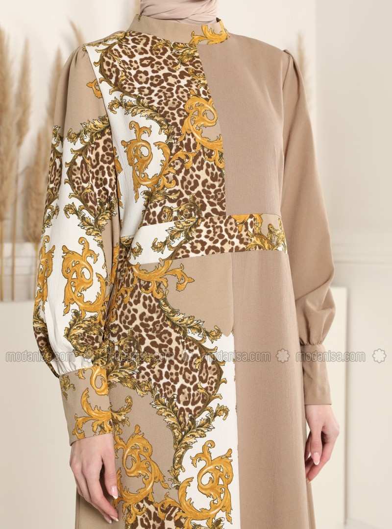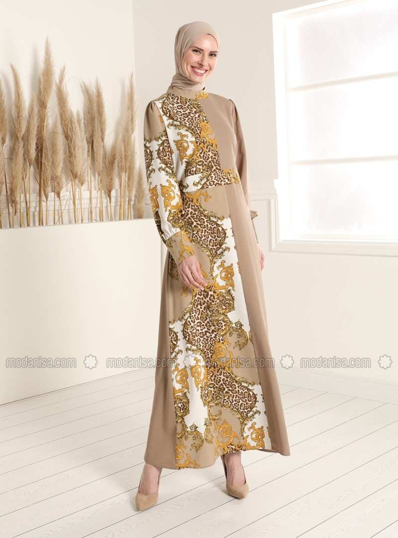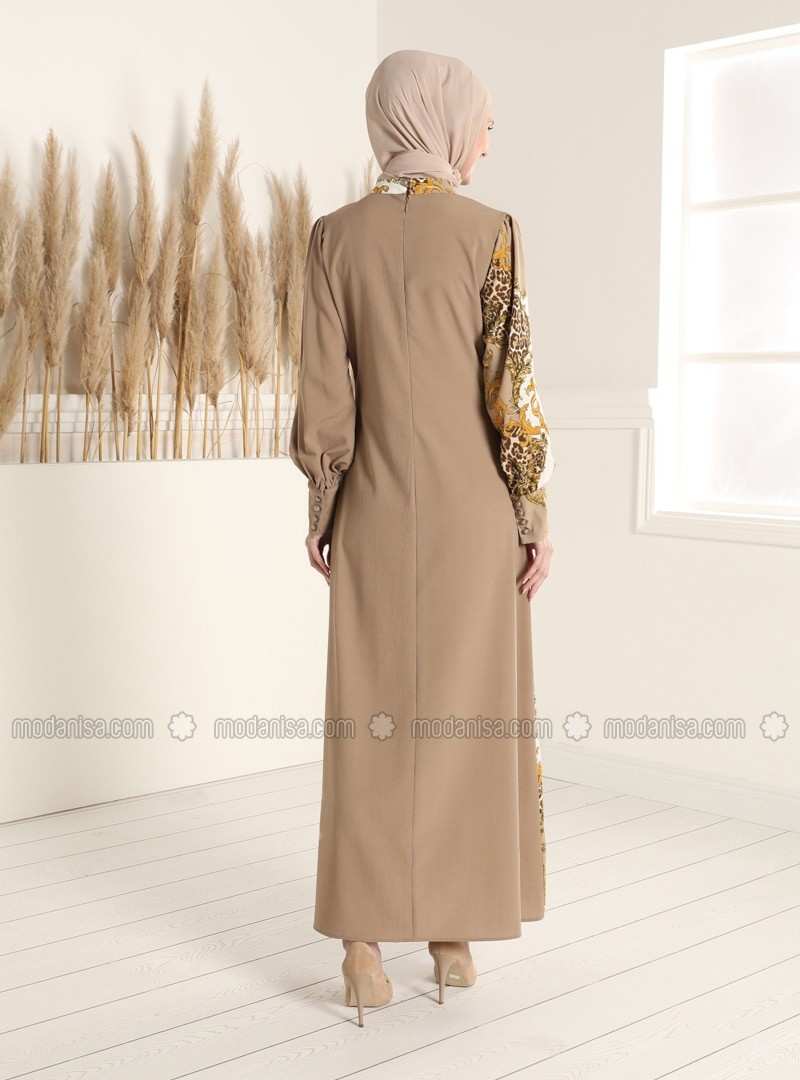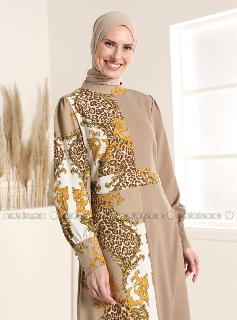 فستان مينك متعدد الياقة الدائرية وغير مُبطن