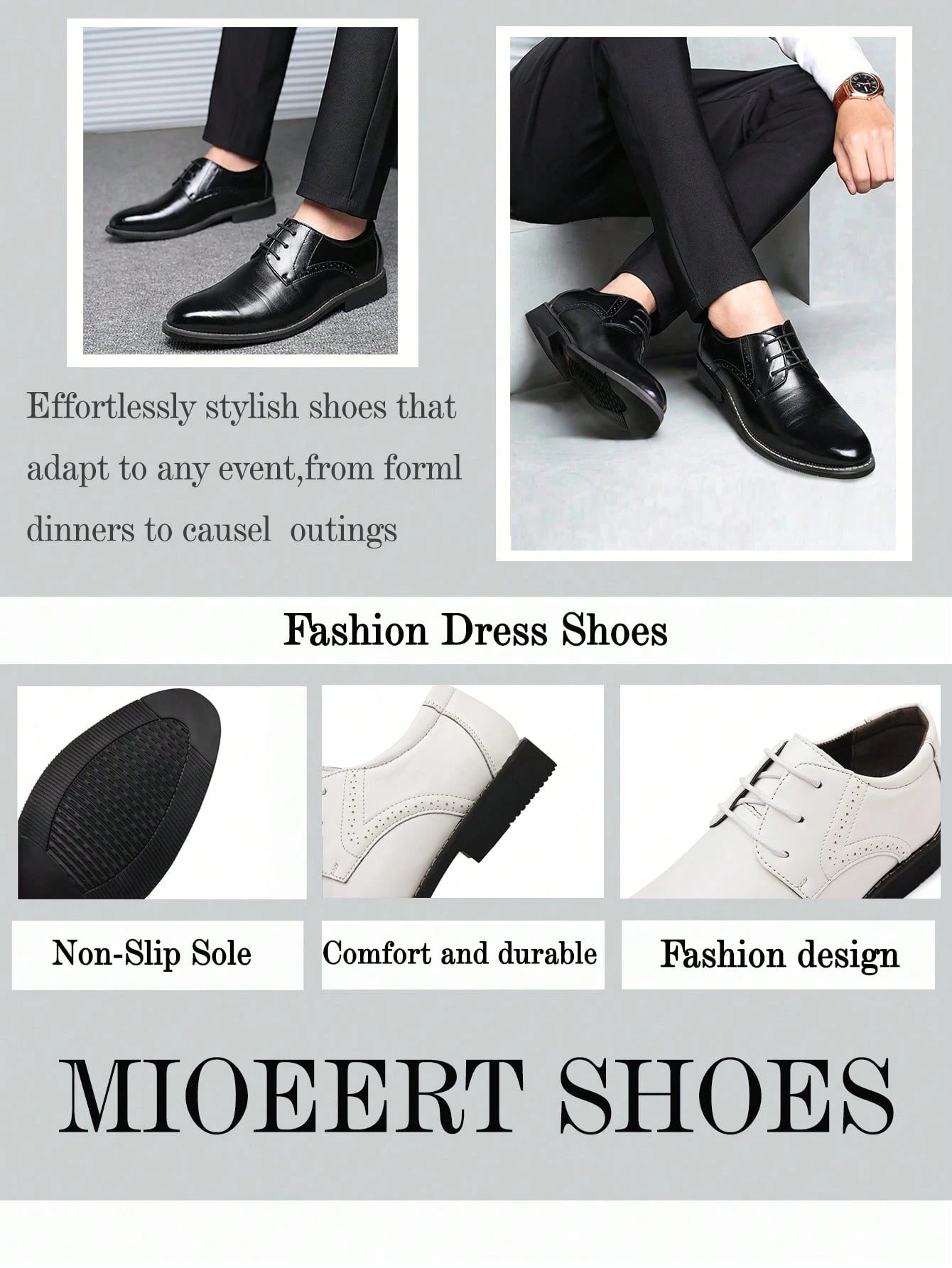أحذية رسمية رجالية من Mioeert بلون موحد، مصنوعة من البولي يوريثان، برباط.