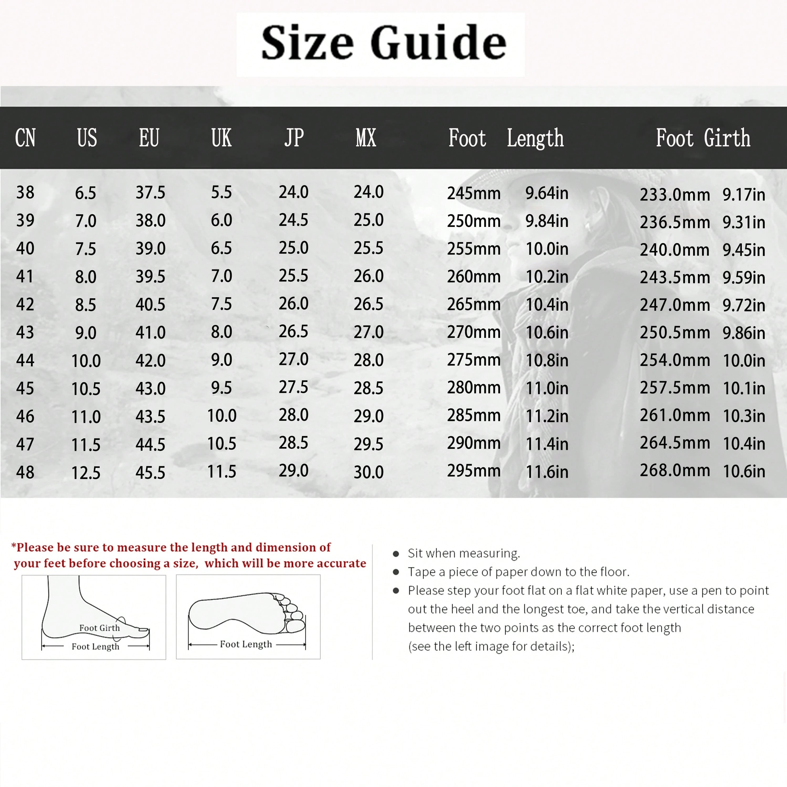 Men's Shoes Size Guide