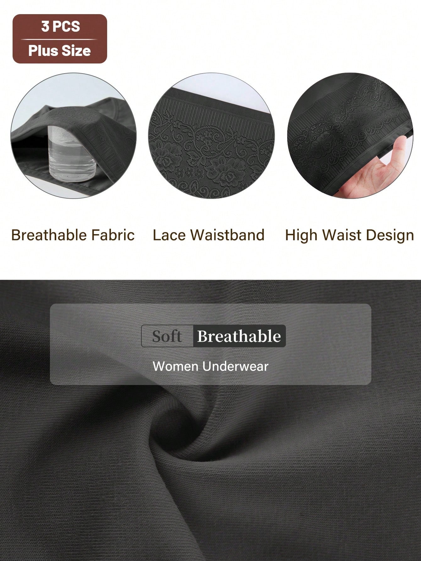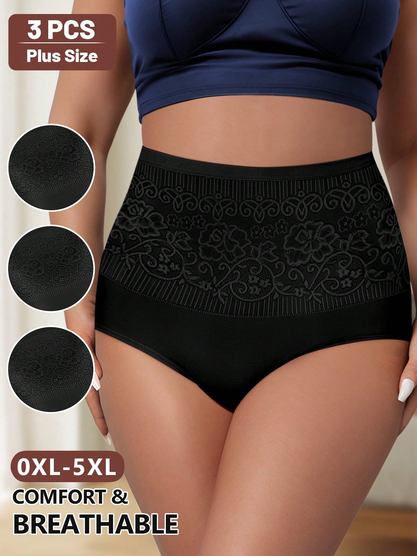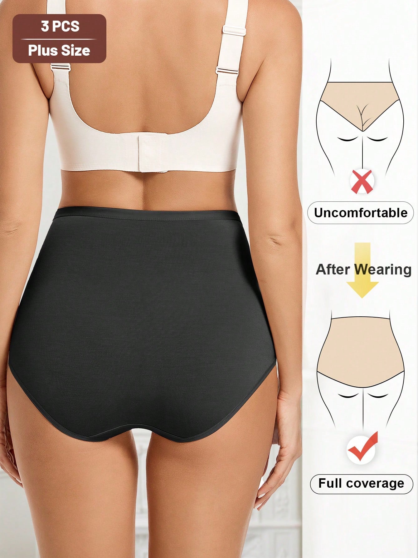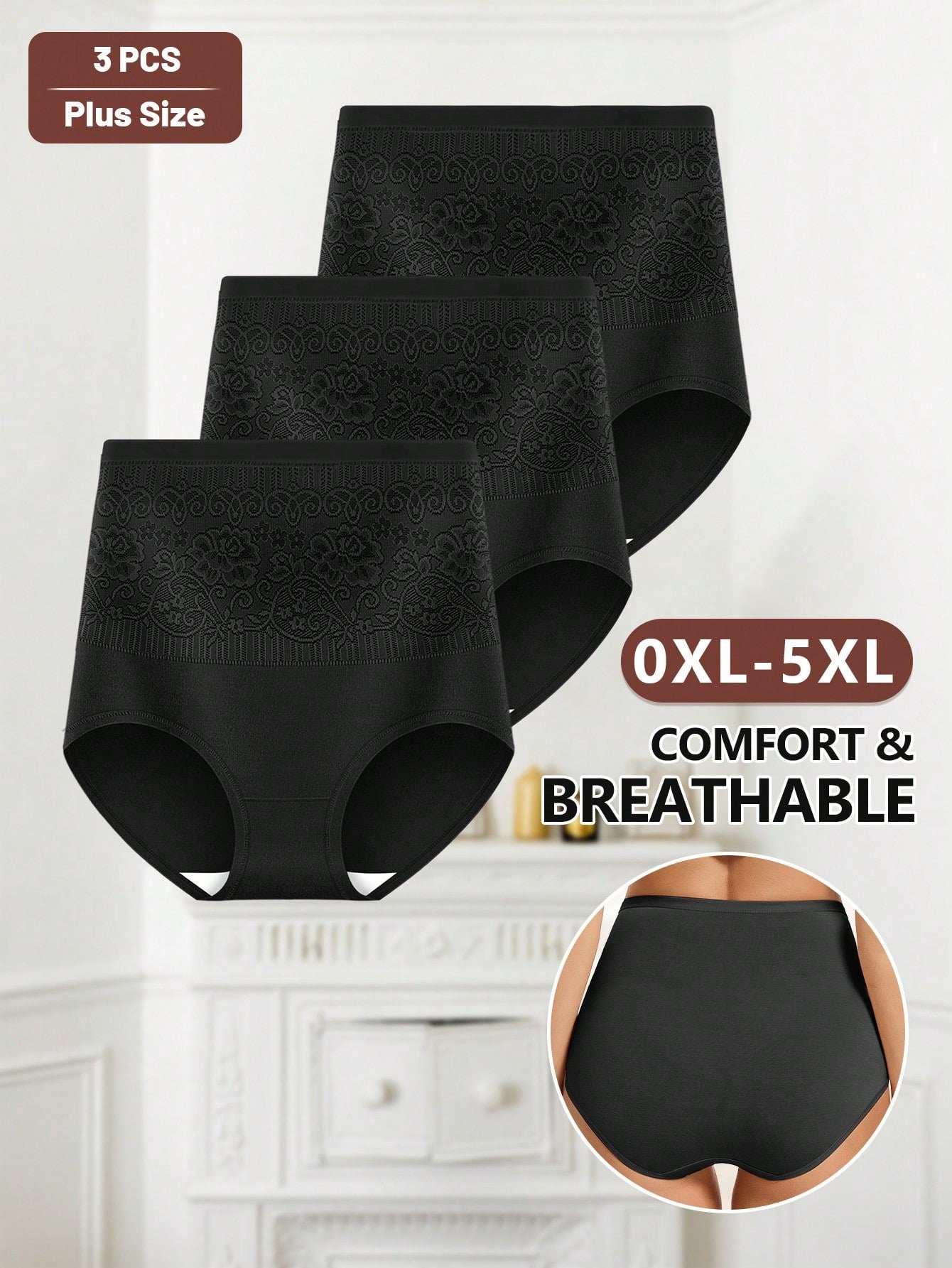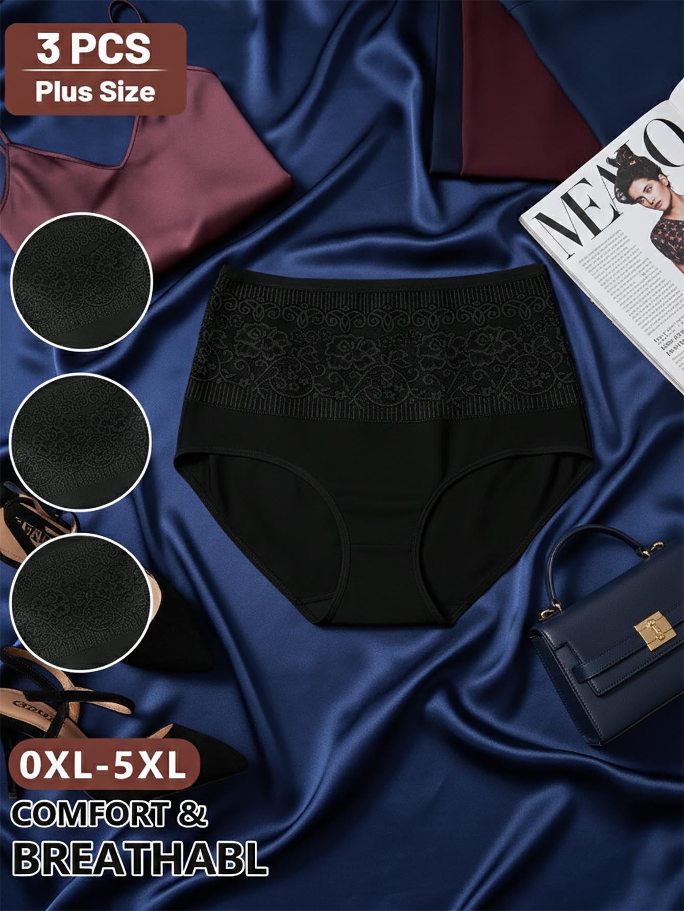 ميوتان، عبوة من 3 قطع، سراويل داخلية نسائية مثلثة الشكل بخصر عالٍ، مقاسات كبيرة