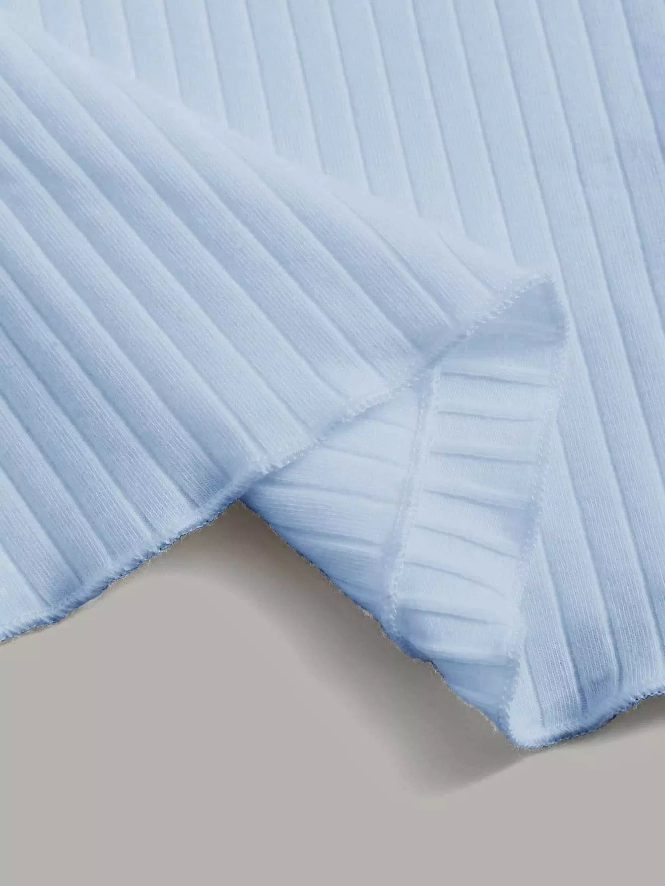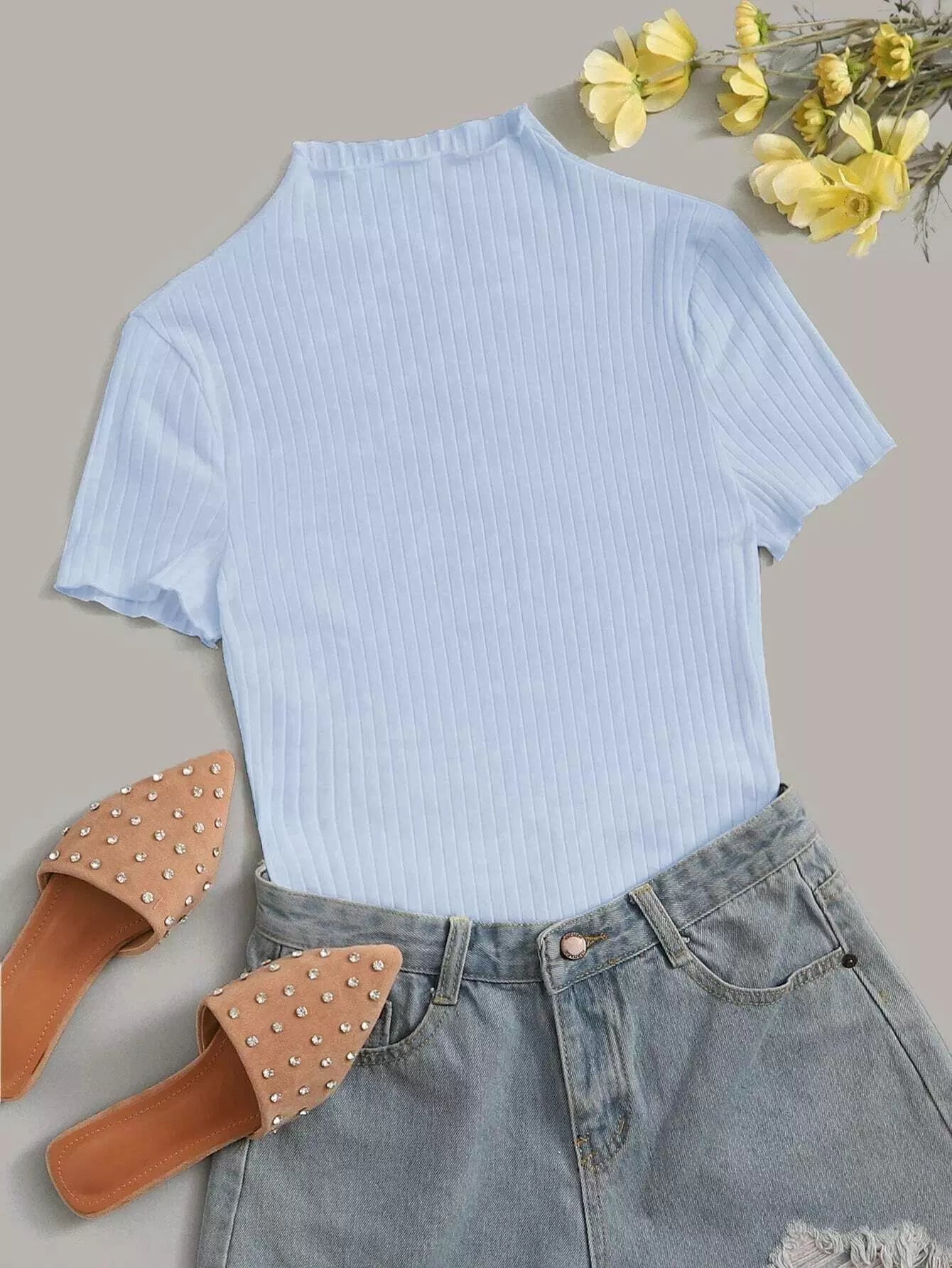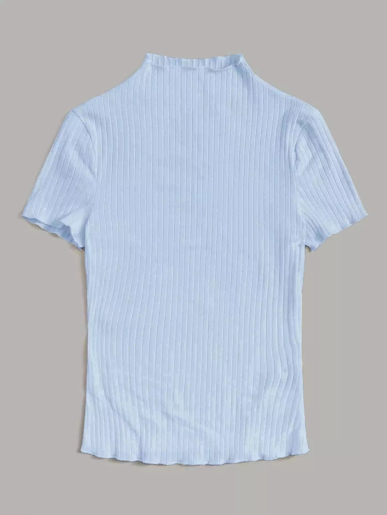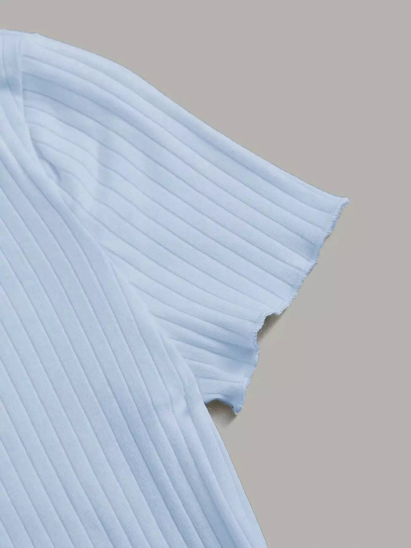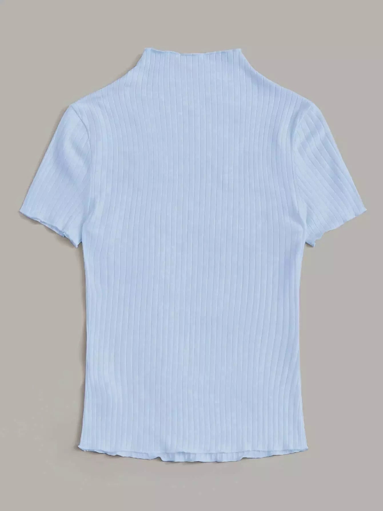 تي شيرت بياقة ضلع محبوكة برقبة ضيقة
